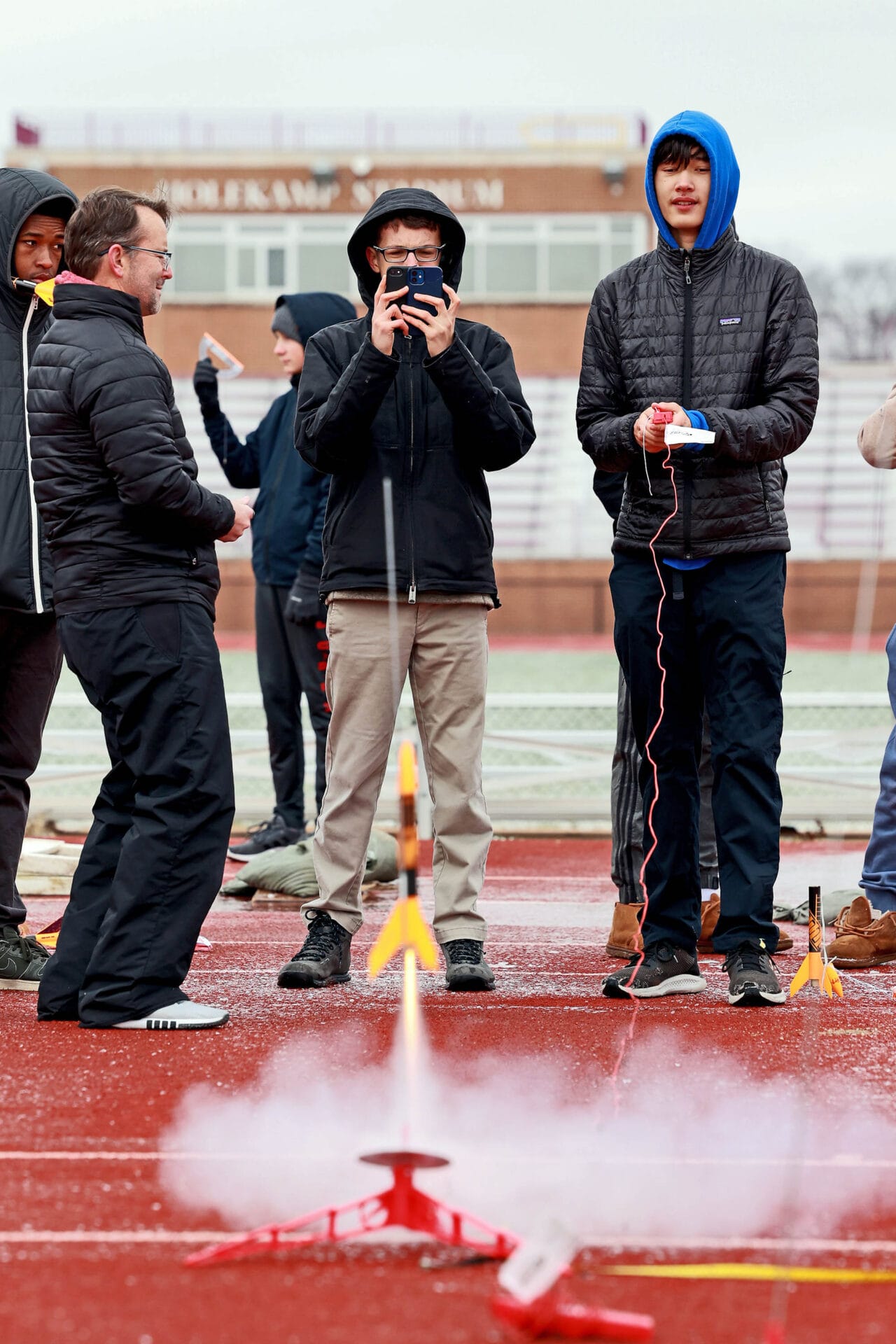 A giant leap forward (or upward!) in flight happened when the class graduated to rocketry. They conducted flight tests by building Estes rockets and powering them with both alka-seltzer and traditional store-bought engines. The students used right-angle trigonometry to calculate how high their rockets flew, incorporating math into their fun.