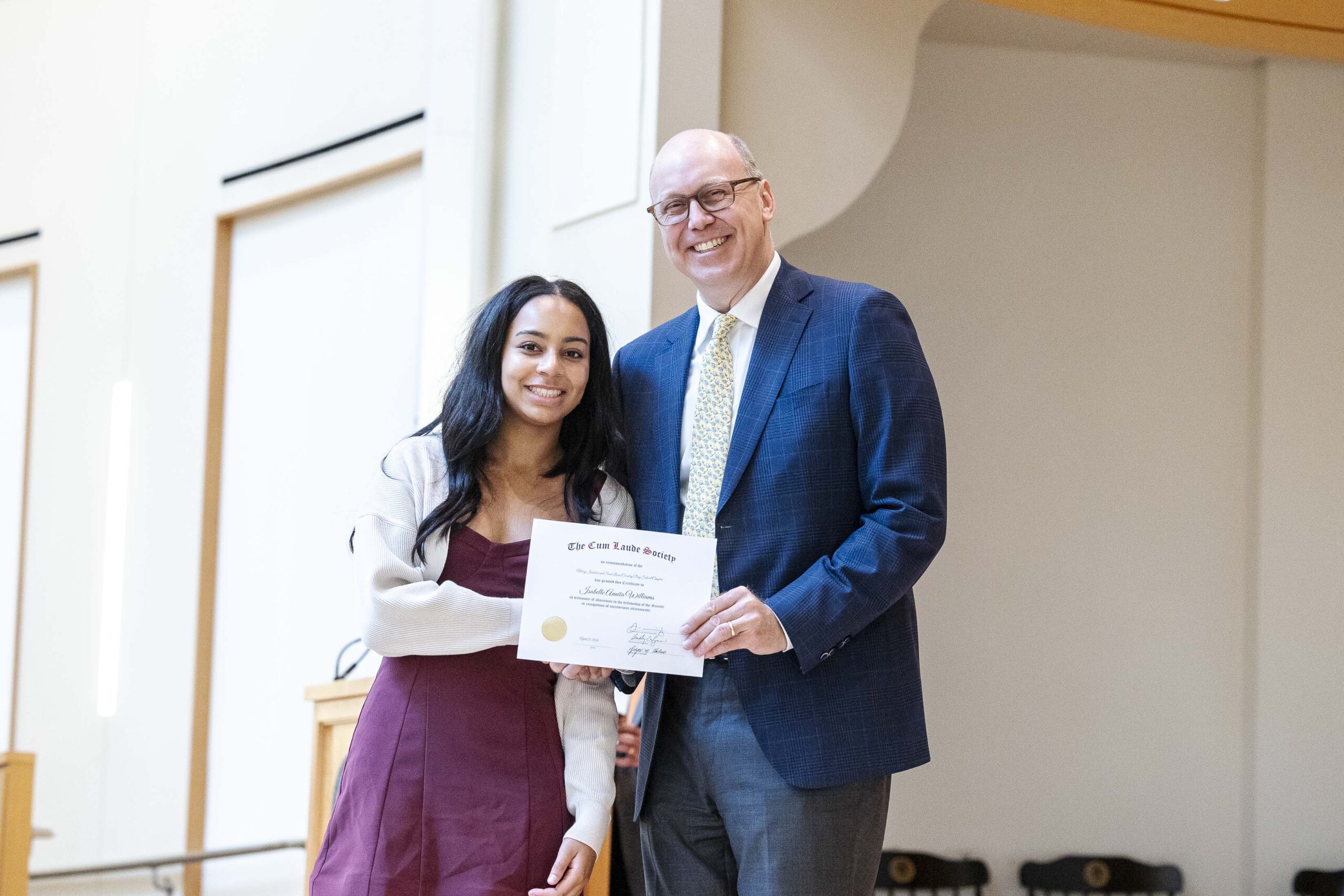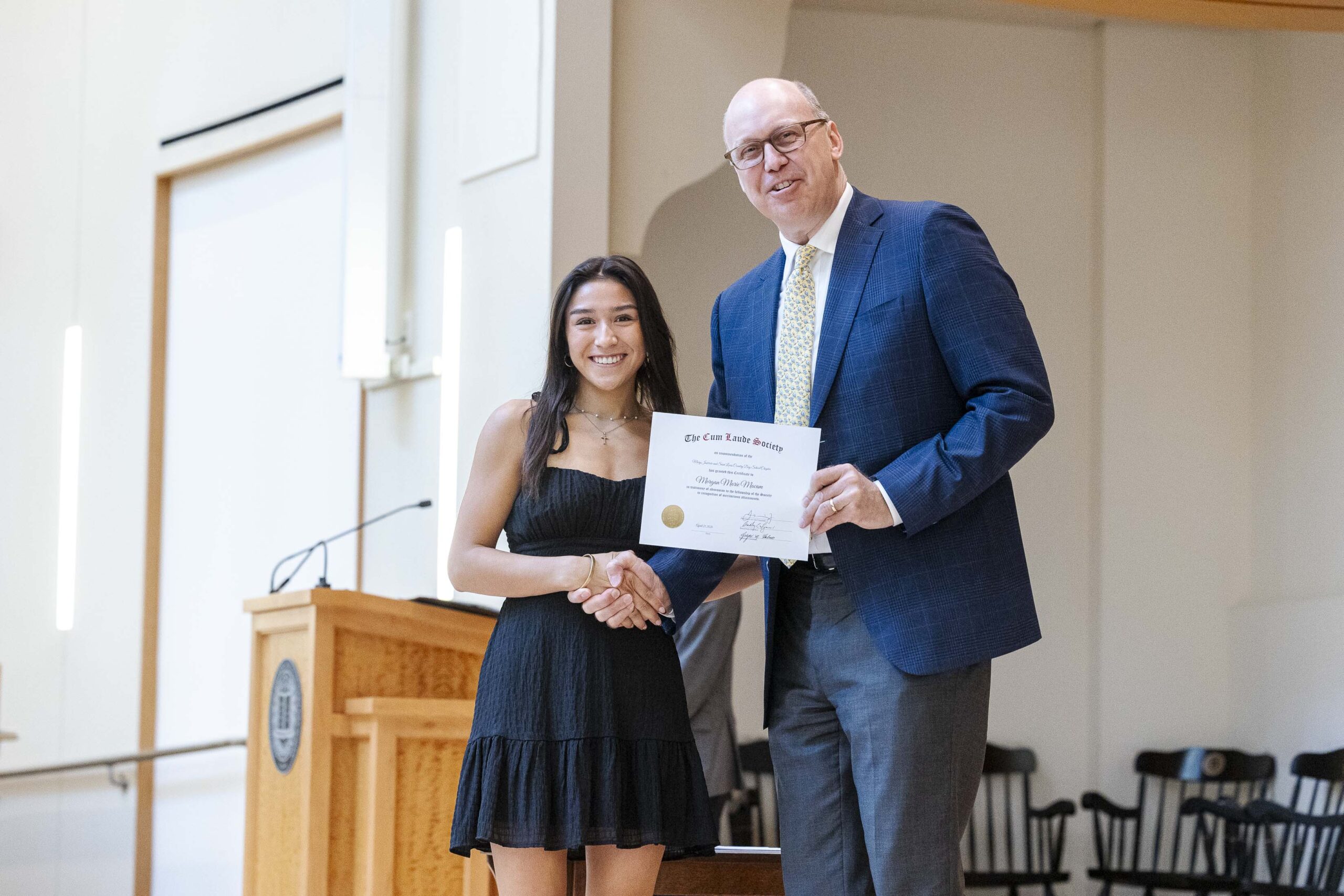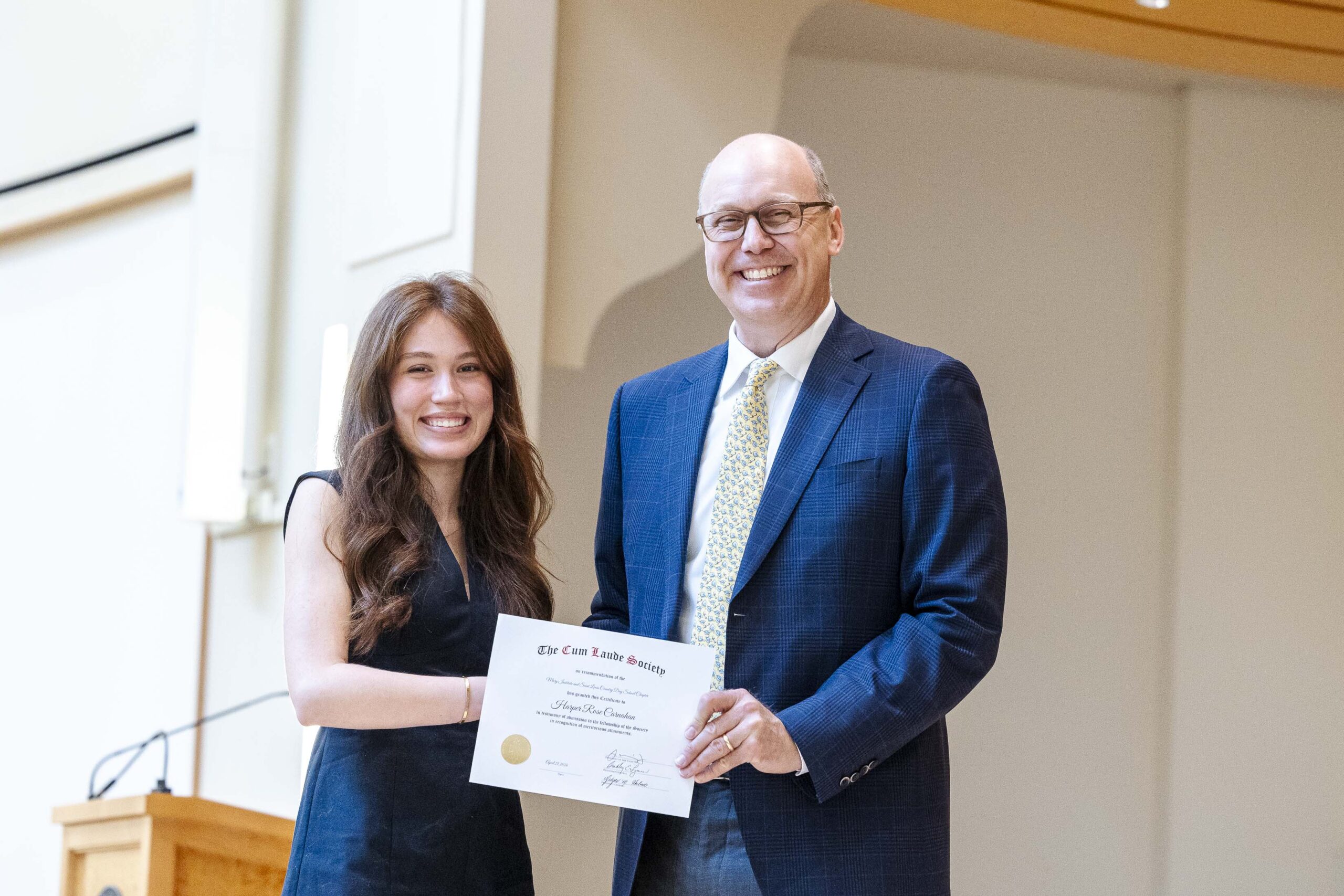 Joining a legacy that spans 120 years, 34 members of the Class of 2026 were formally inducted into the MICDS Chapter of the Cum Laude Society this week.