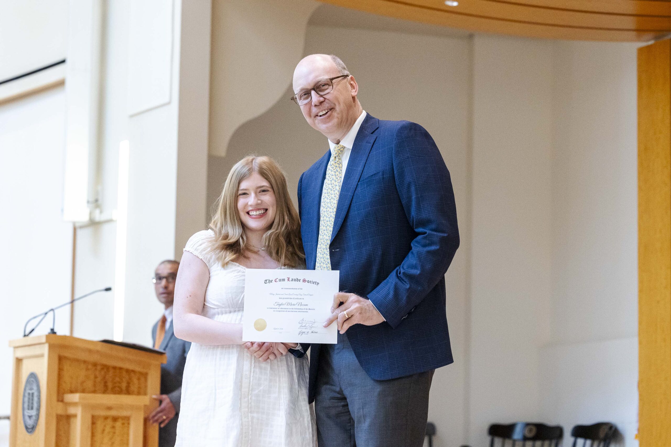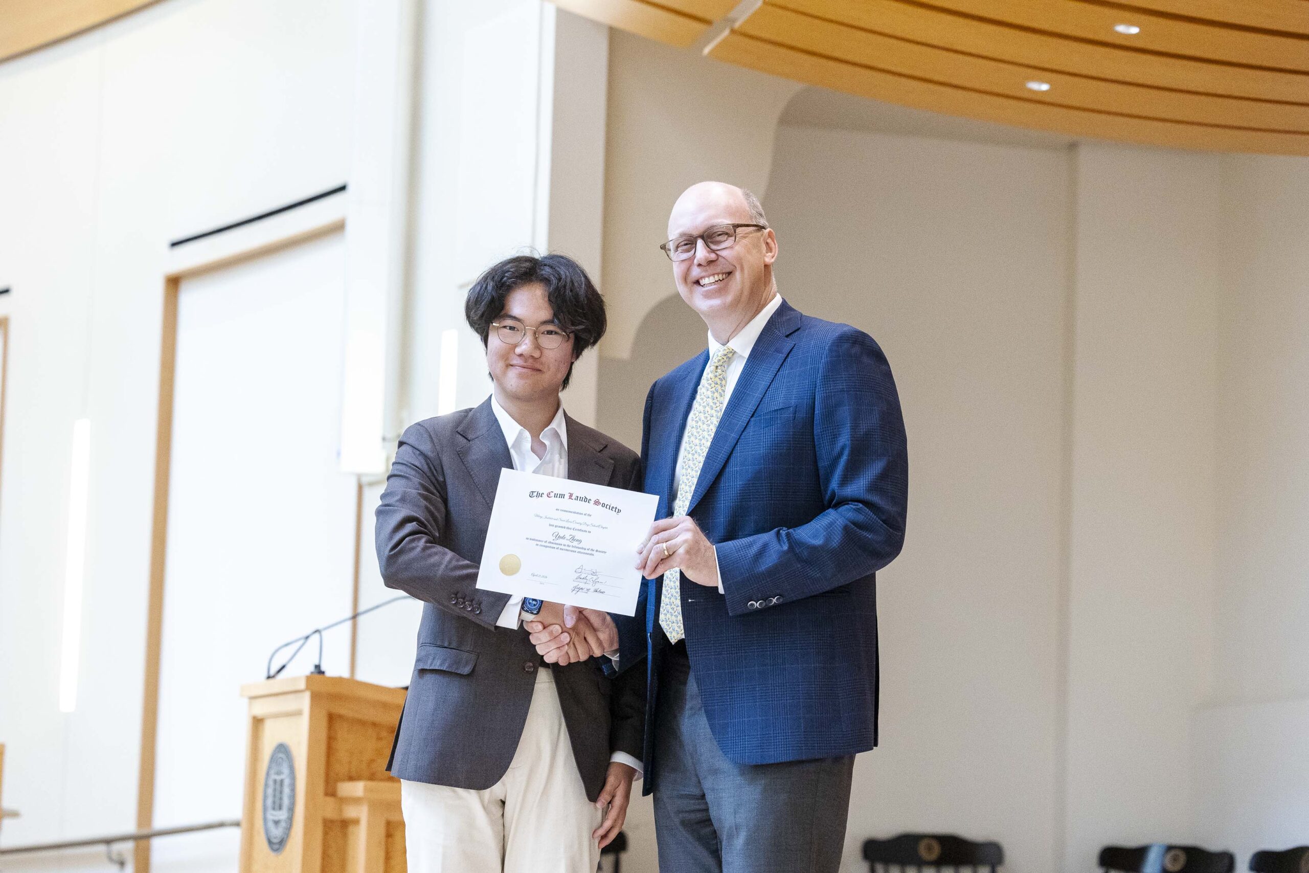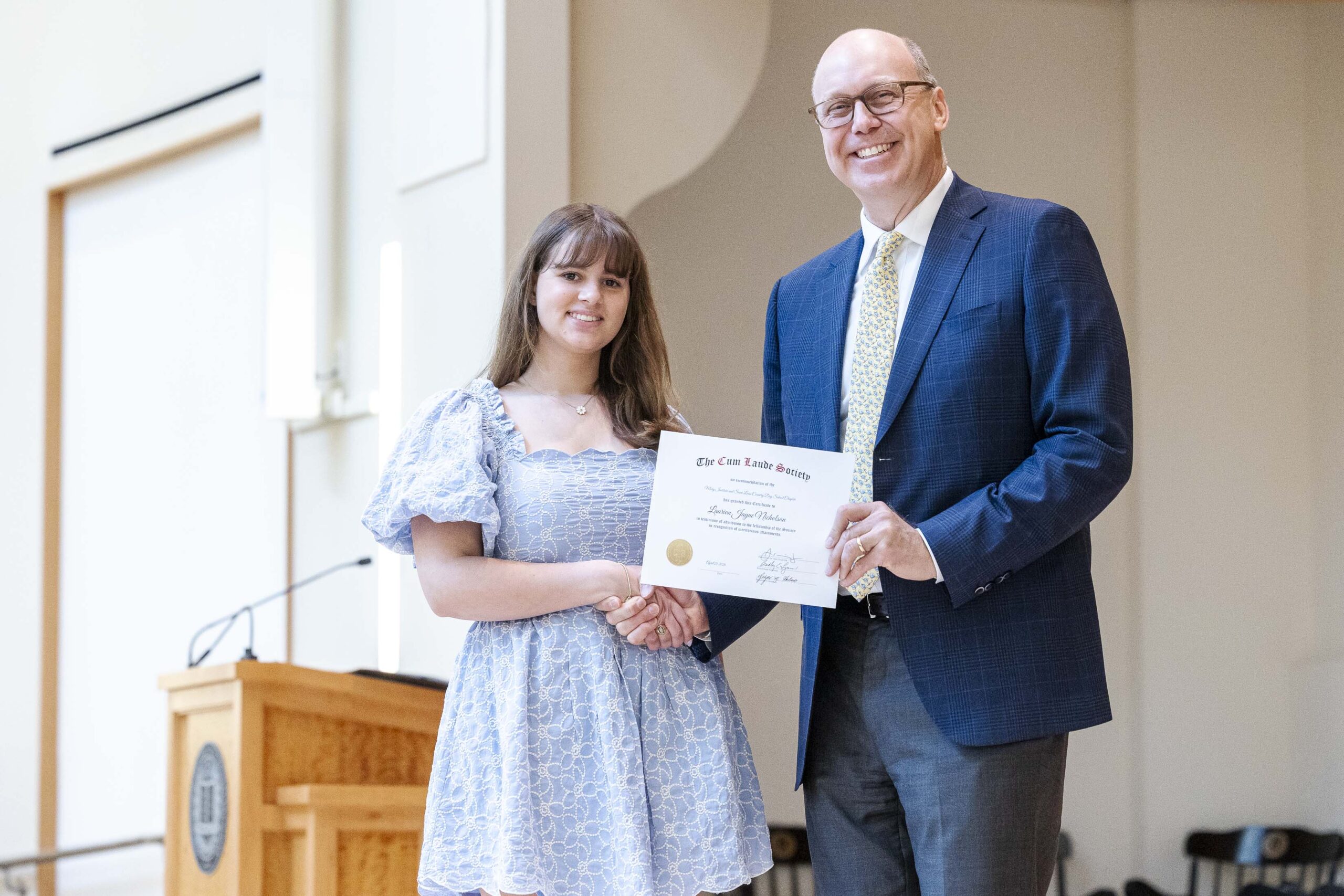 Joining a legacy that spans 120 years, 34 members of the Class of 2026 were formally inducted into the MICDS Chapter of the Cum Laude Society this week.