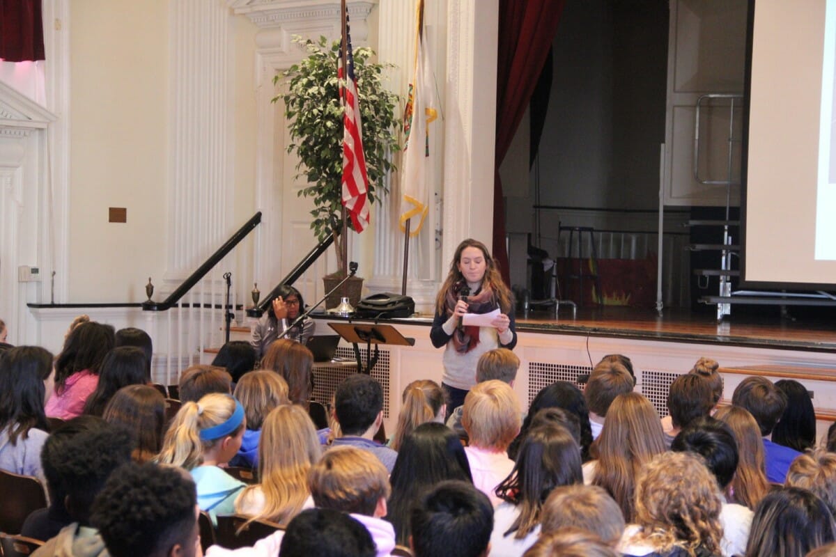Jen Schuckman, Head of Middle School, kicked off the day with some inspirational remarks. “I urge you to dig deep today – think about your actions and words (or lack of) and how that might be impacting relationships around you … And then think about every single person in this room and how you can be a difference maker. Think about how your best self might lift someone’s spirits and validate their belonging in our community.”