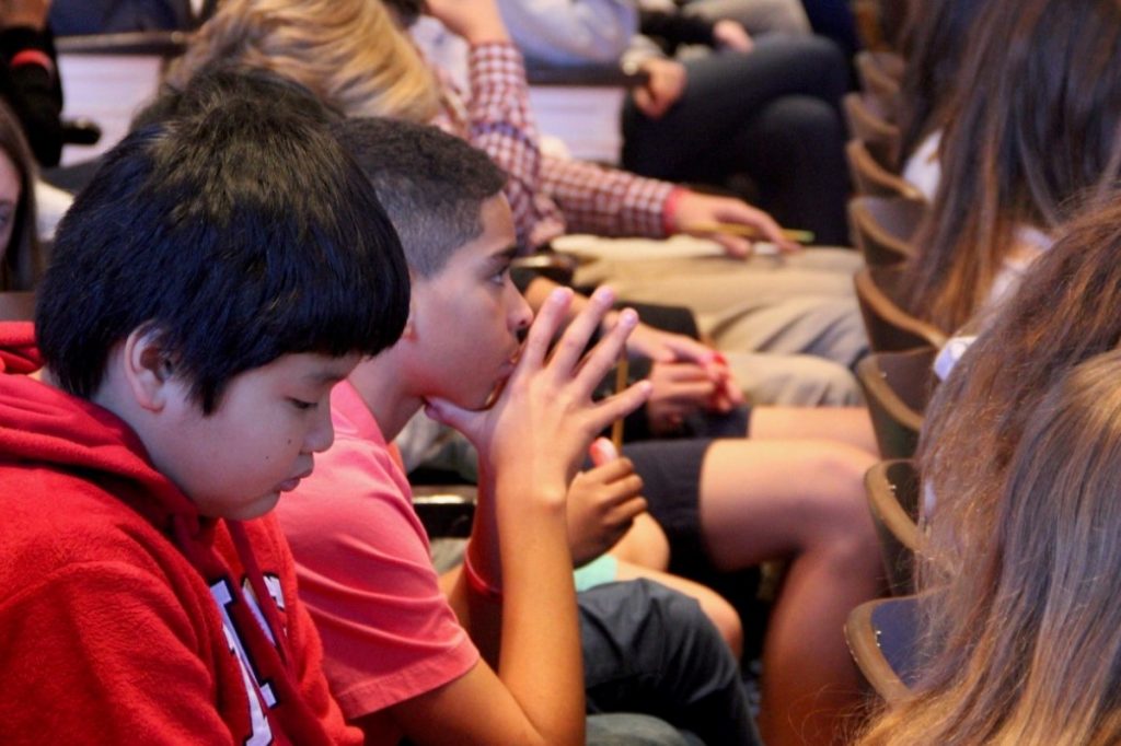Several teachers shared their own personal stories on being an upstander. The students then broke into small group discussions and activities to further explore what it means to be an upstander and how to identify and respond to microaggressions. There were also large group activities and games to learn more about each other and build community and unity. For example, Ramversity, the MICDS Playback Theater Group, acted out scenes common to middle school experiences during an interactive theatrical workshop. The day ended with an open mic session where students could share their thoughts and stories with their peers.
