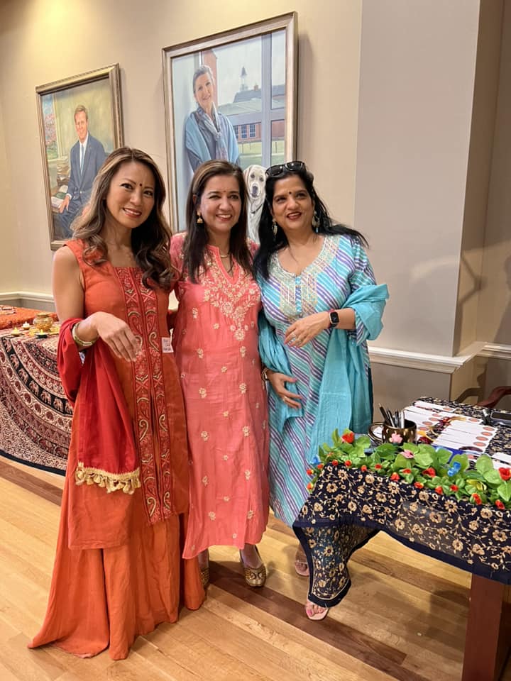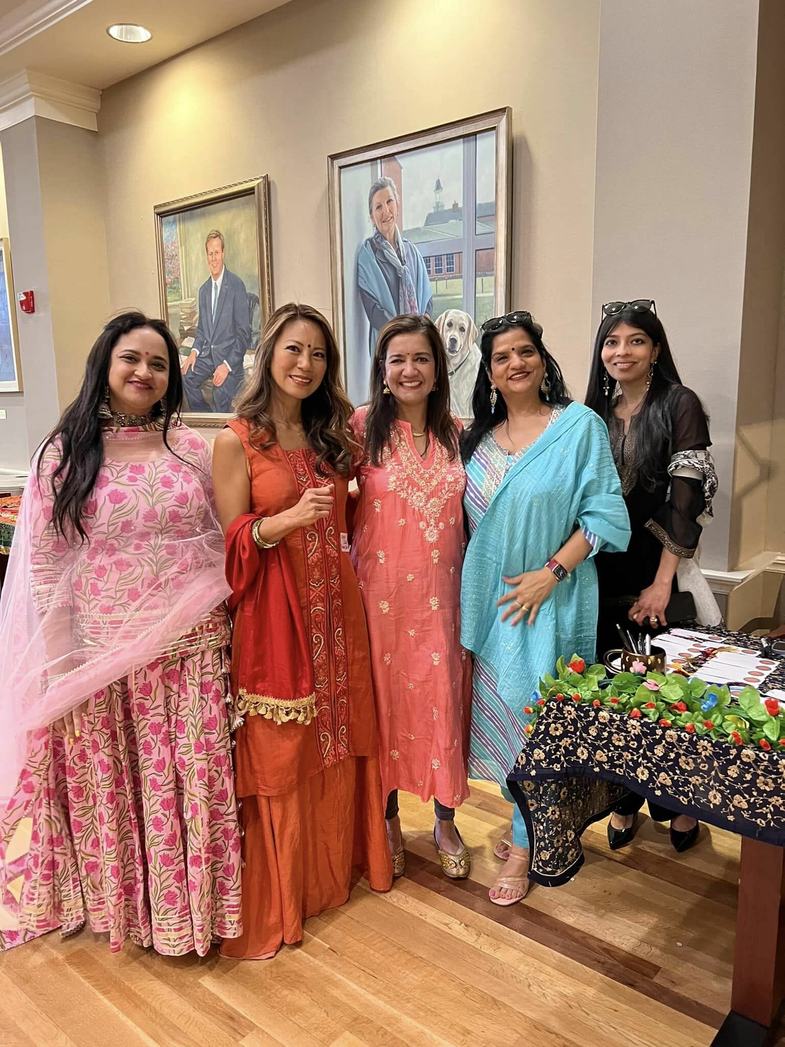 The Olson Hall Presentation Room was transformed into a “passage to India” with colorful saris, sparkly Rajasthani parasols, and, of course, twinkling lights to mark the Festival of Lights. Parents enjoyed a presentation by 2022 Diwali Chair Purvi Maniar P’27, Passport Series Co-Chairs Ayumi Cullen P’25 and Sona Kamat P’18, ’24, ’25, and Diwali program, food, and decorations chairs Sarina Handa P’23 ’26, Hiroo Motwani P’21 ’23, and Shalini Malhotra P’25 ’28. They then mingled and explored the flavors of India through food, snacks, henna tattoos, and MICDS bookmarks handwritten with their names in Hindi.
