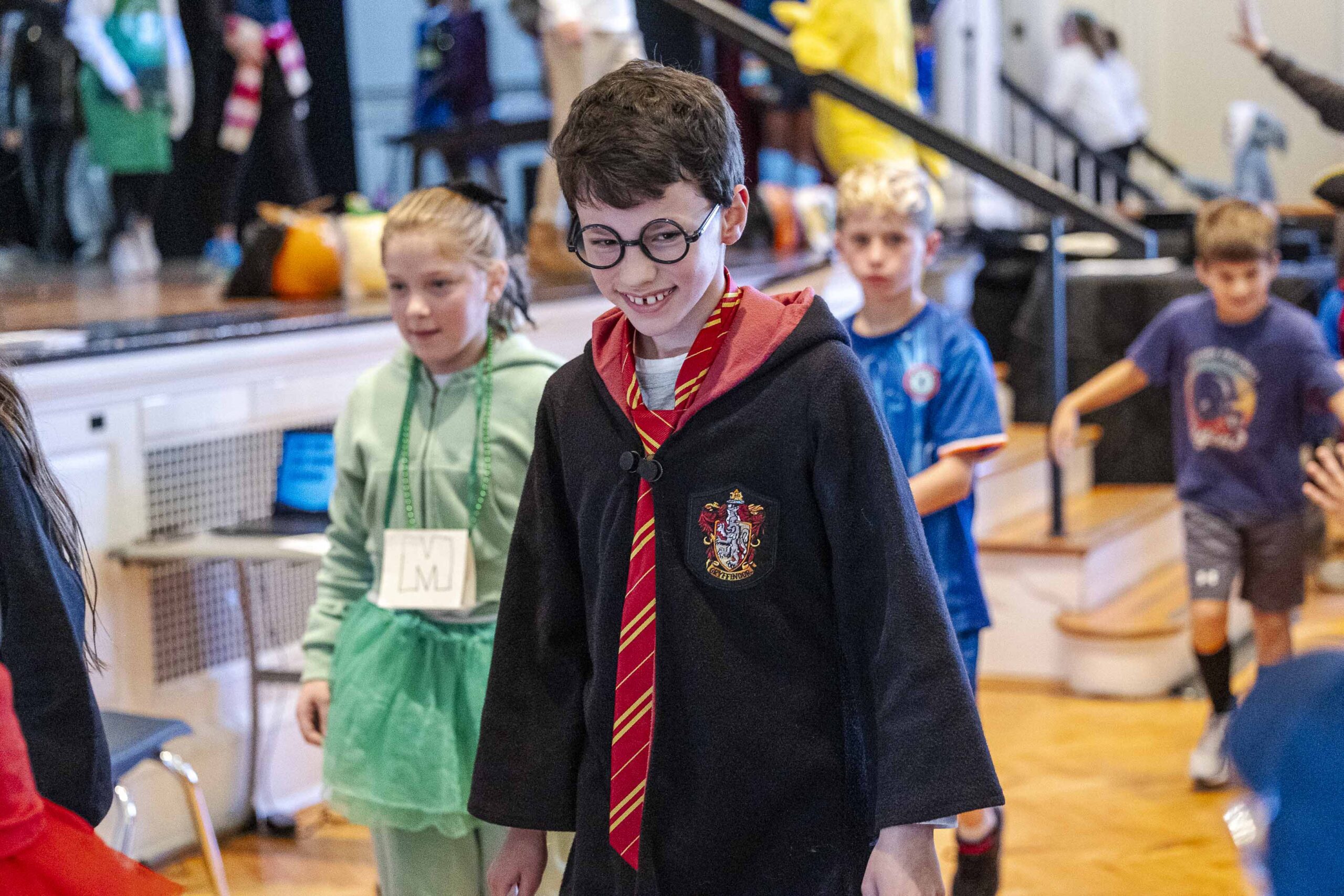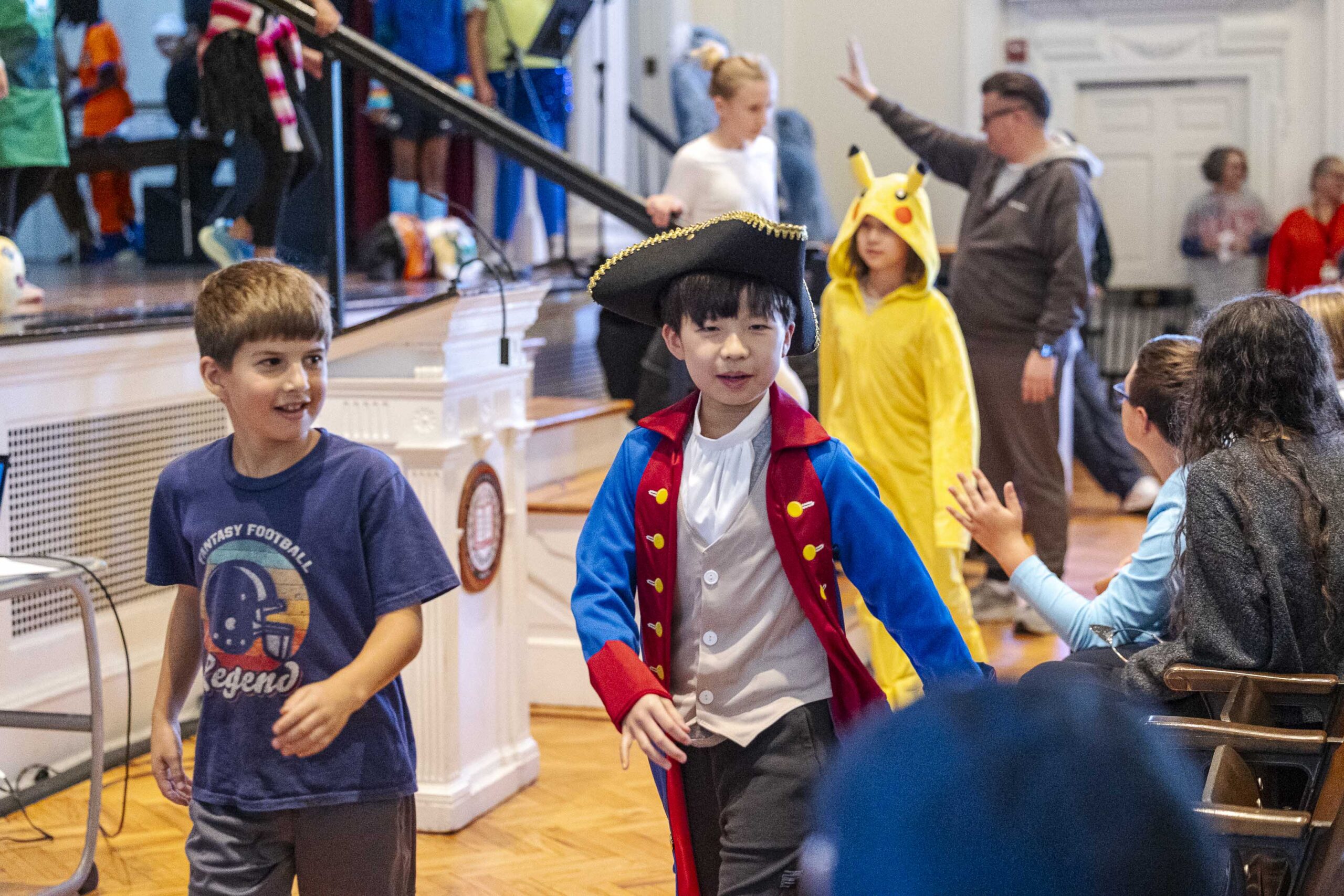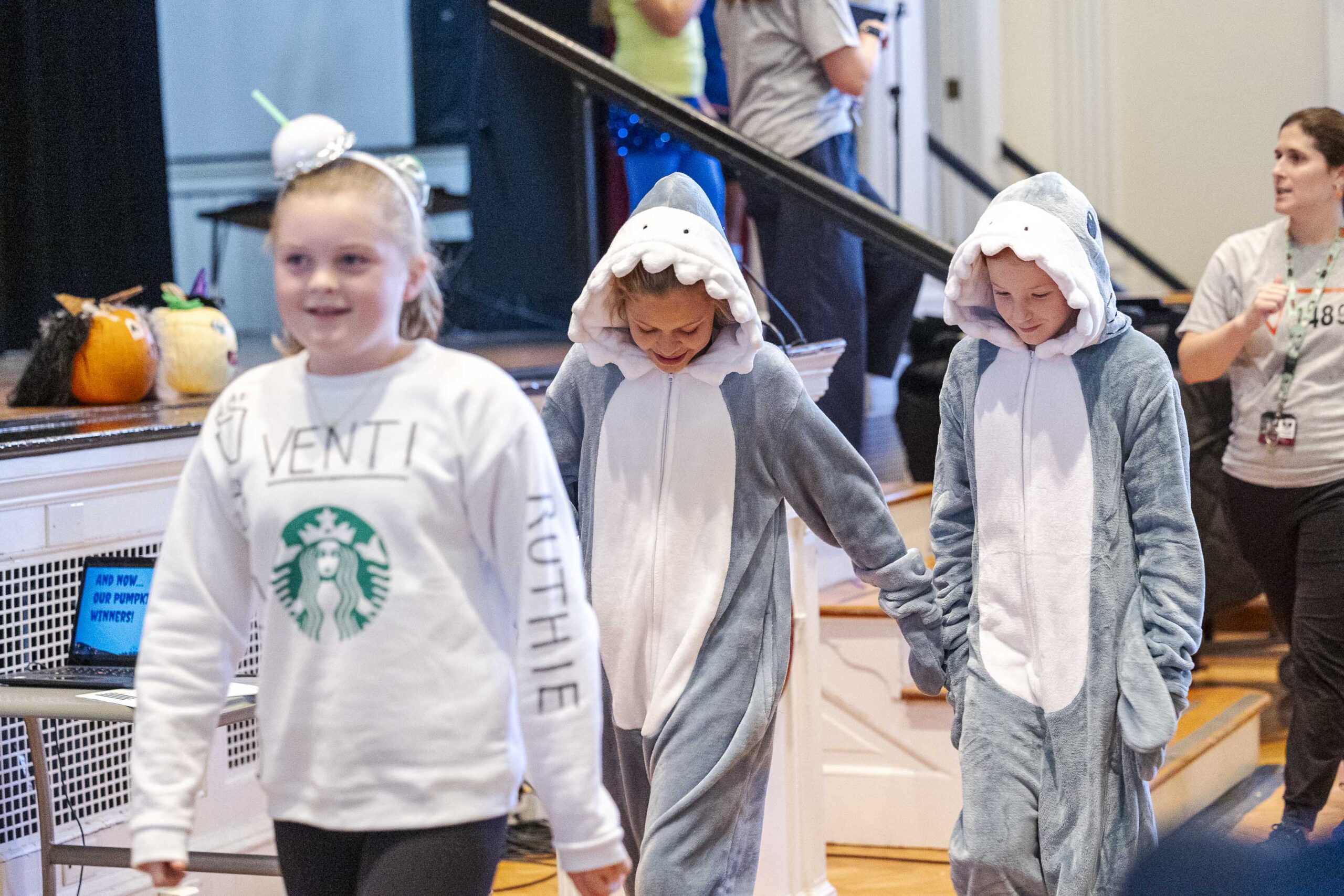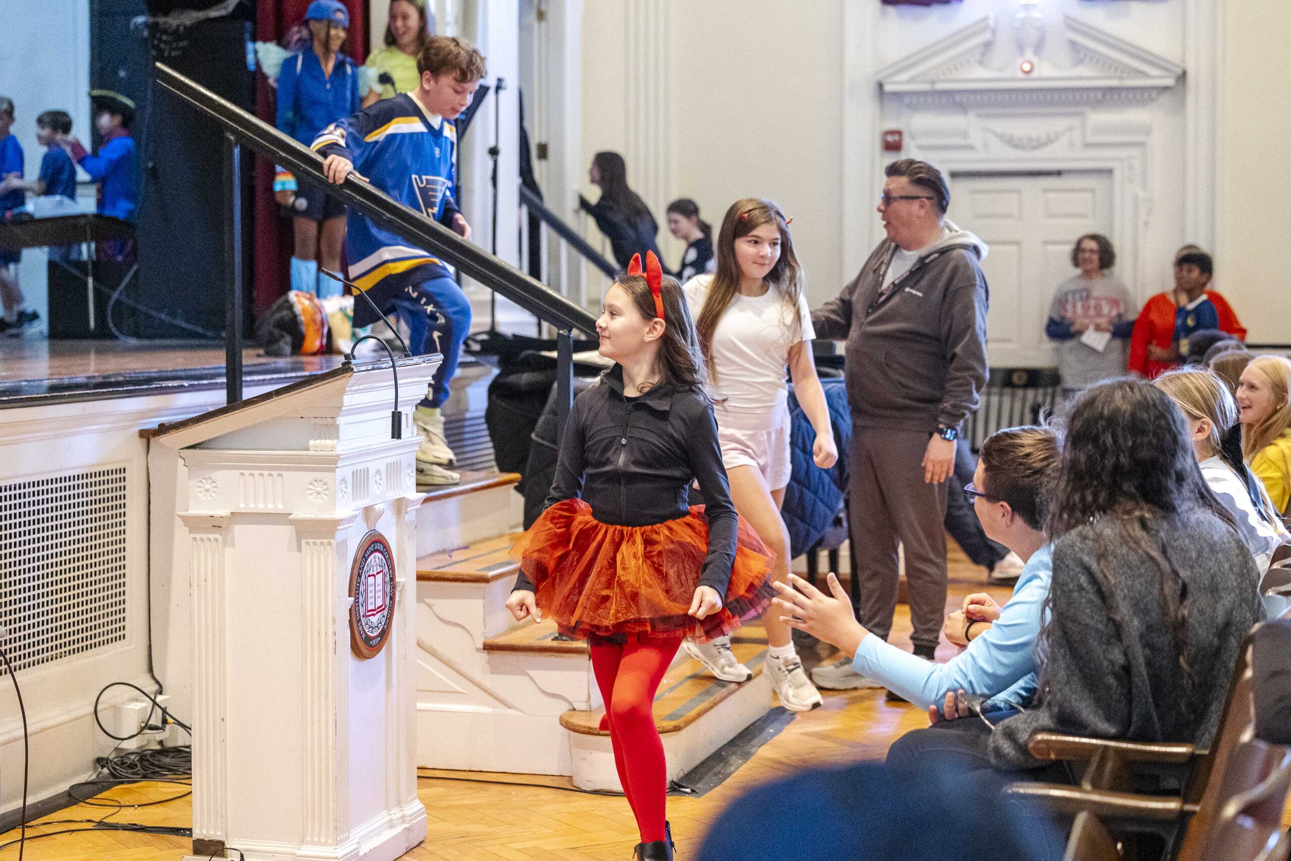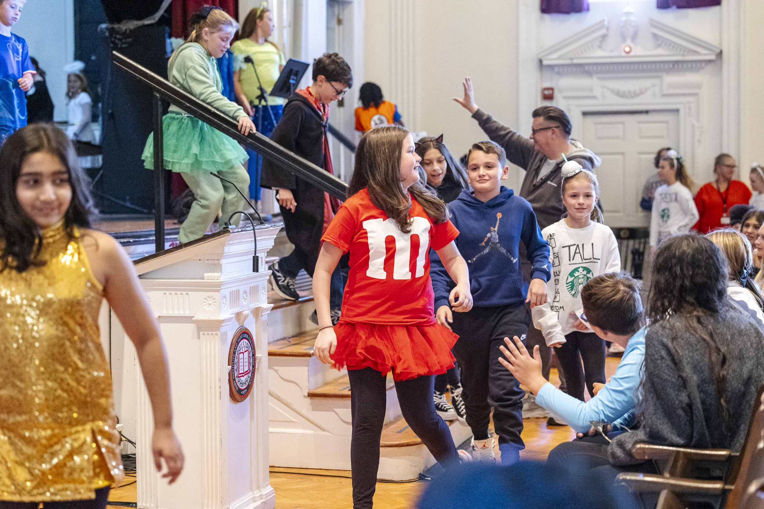 A special dismissal ensured that fifth grade was released first to parade across the stage in their Halloween costumes on their way out to their afternoon party in the dining hall.