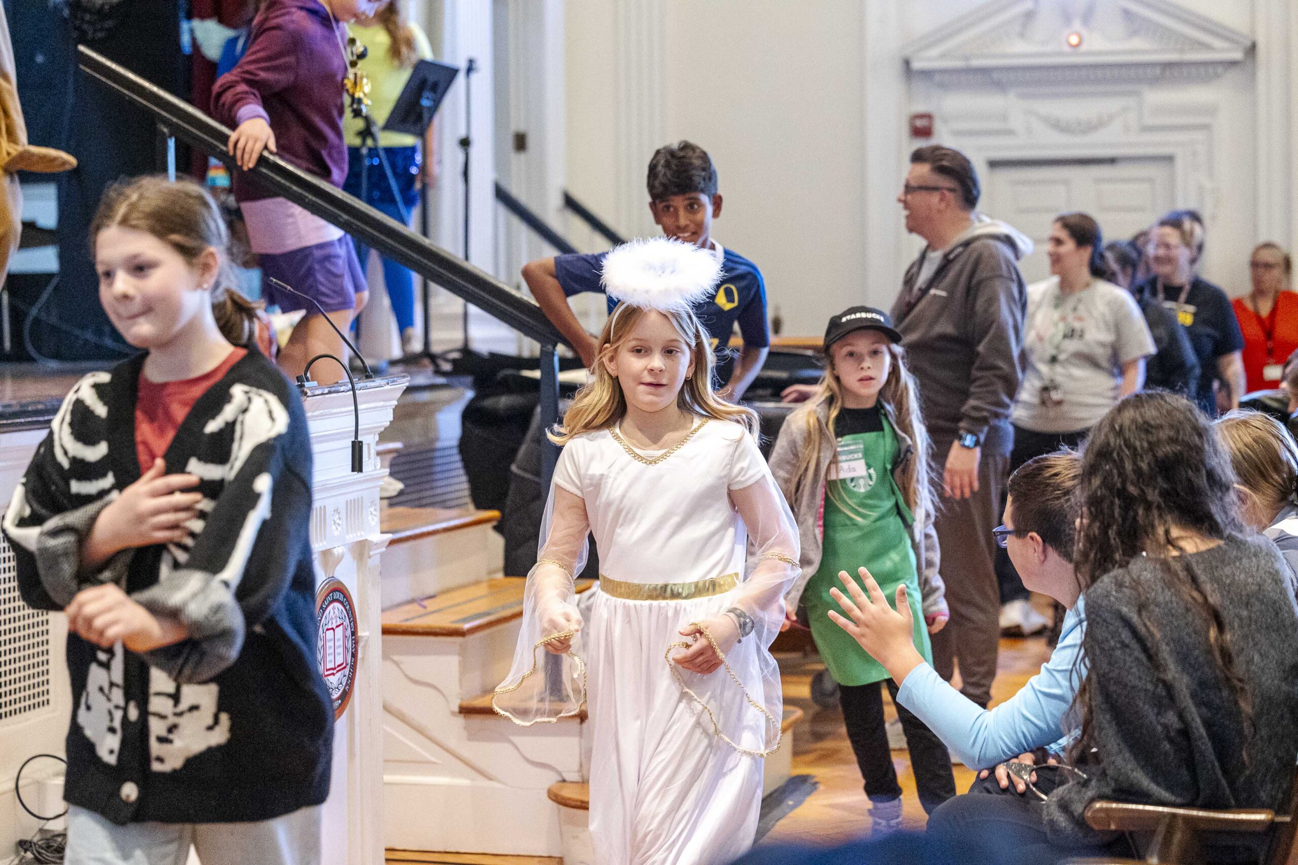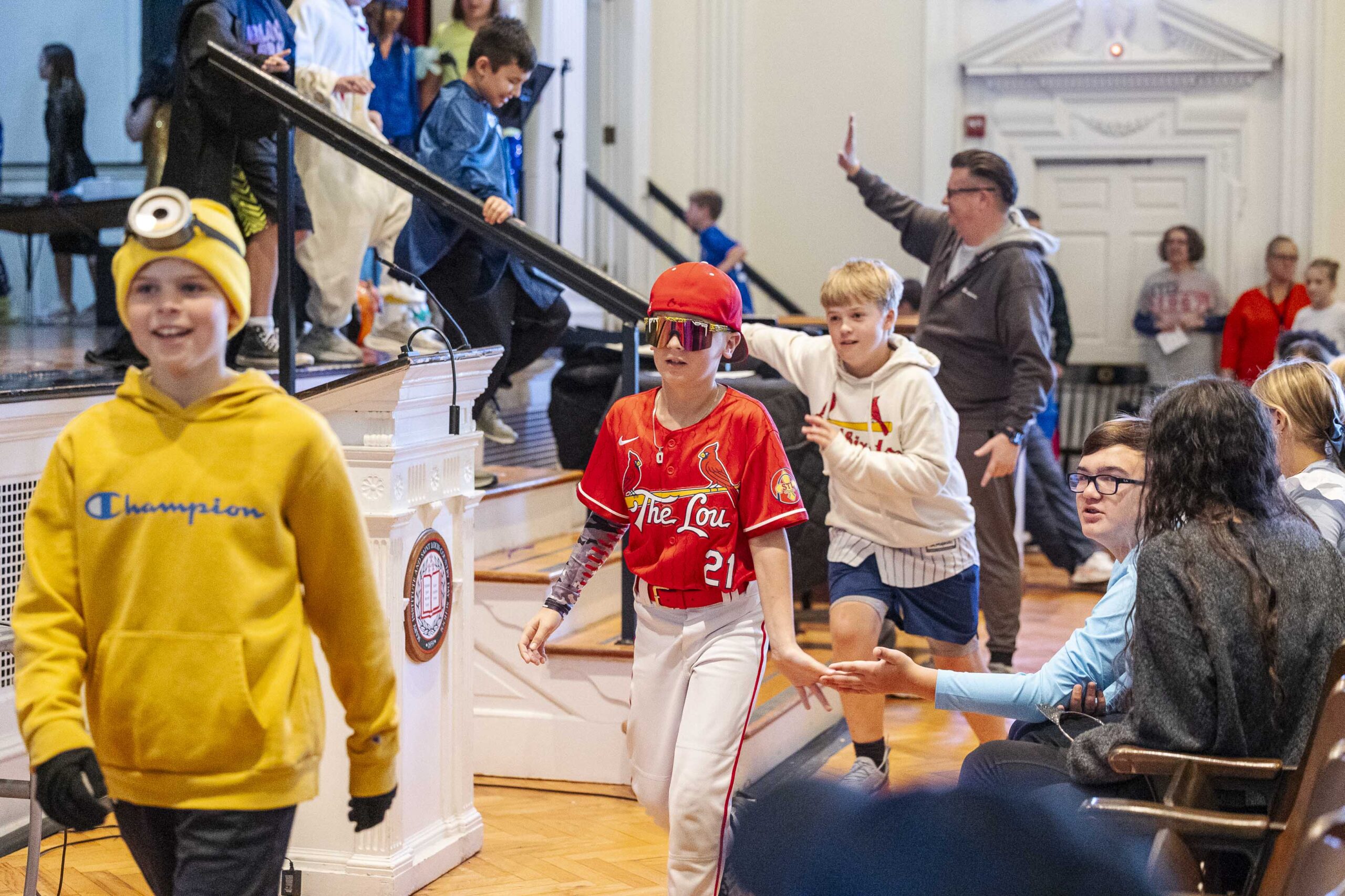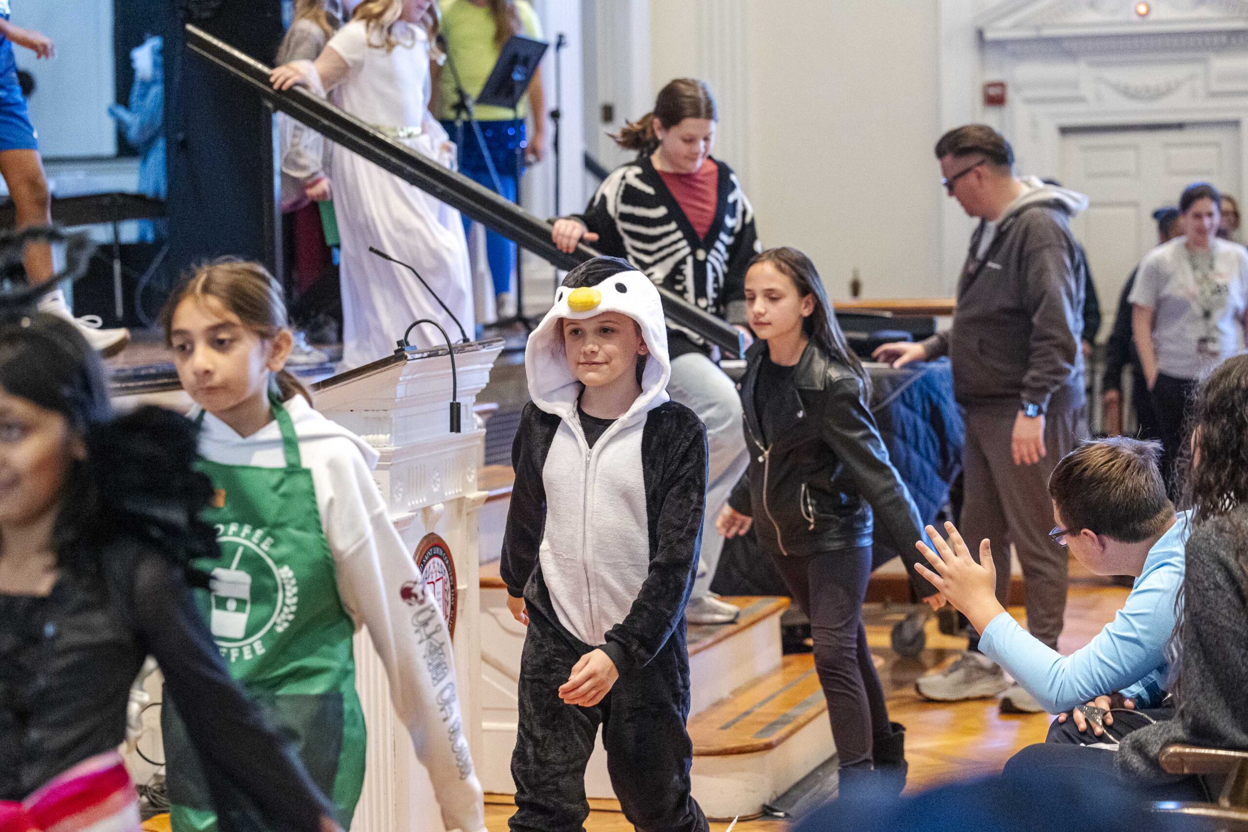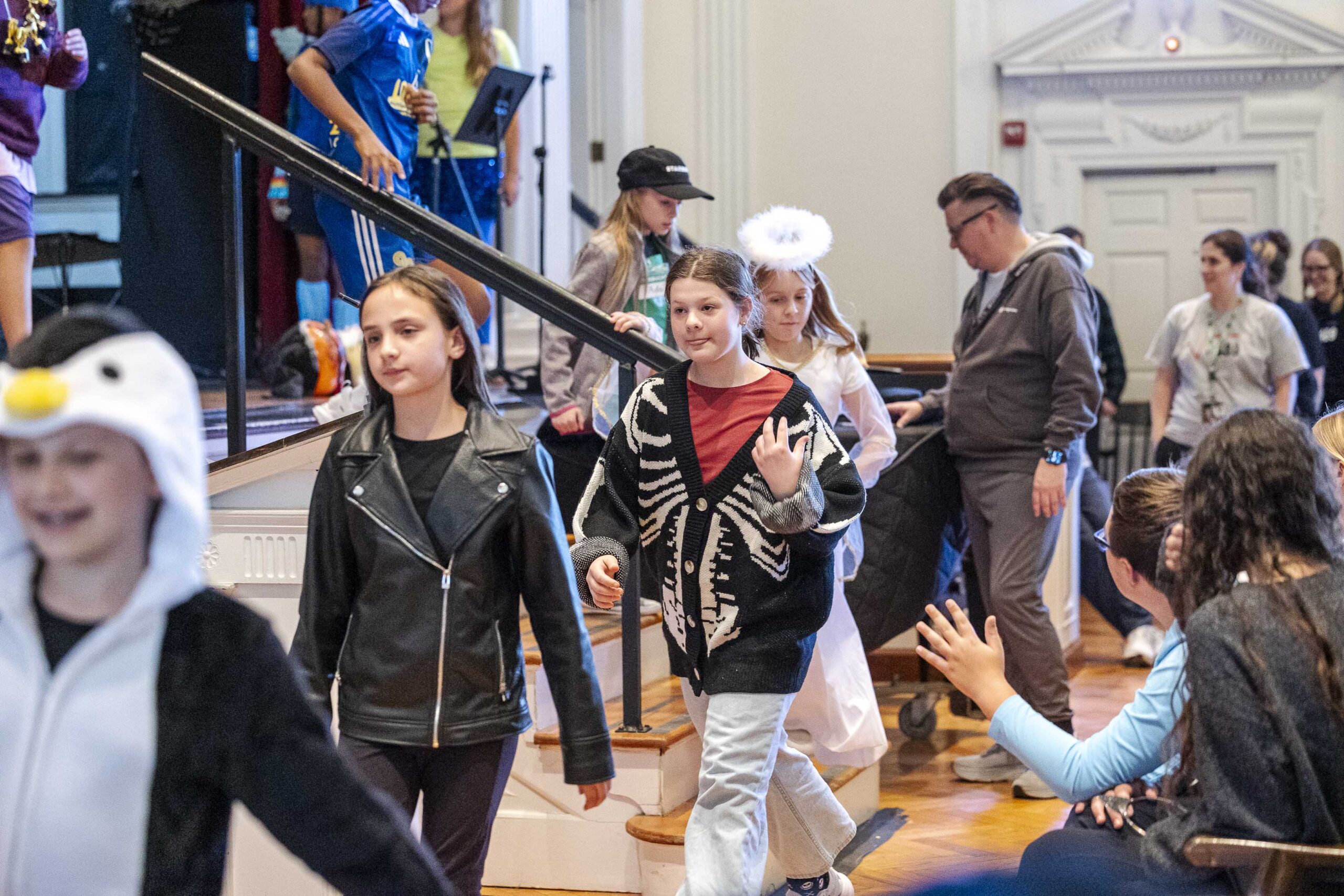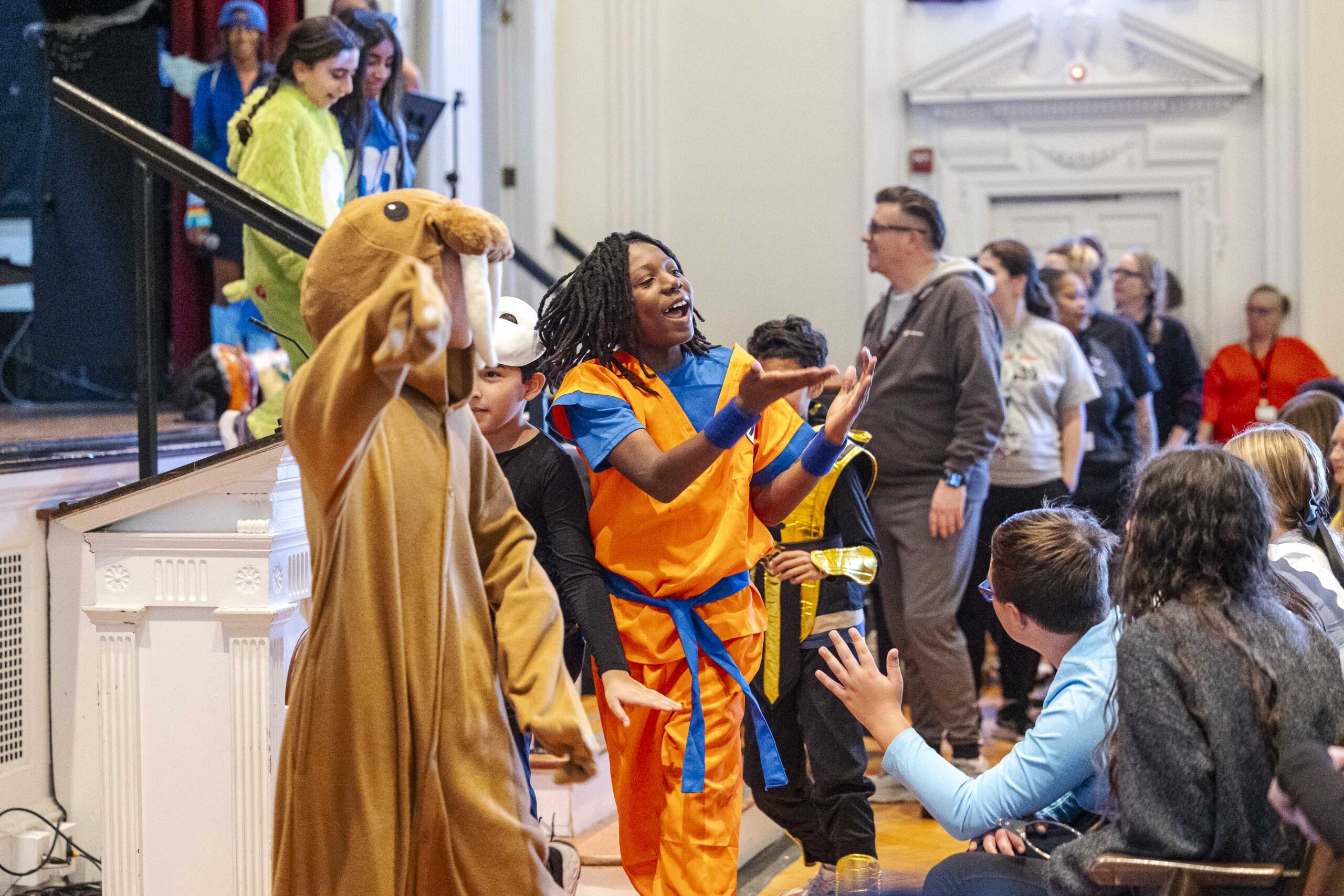 A special dismissal ensured that fifth grade was released first to parade across the stage in their Halloween costumes on their way out to their afternoon party in the dining hall.