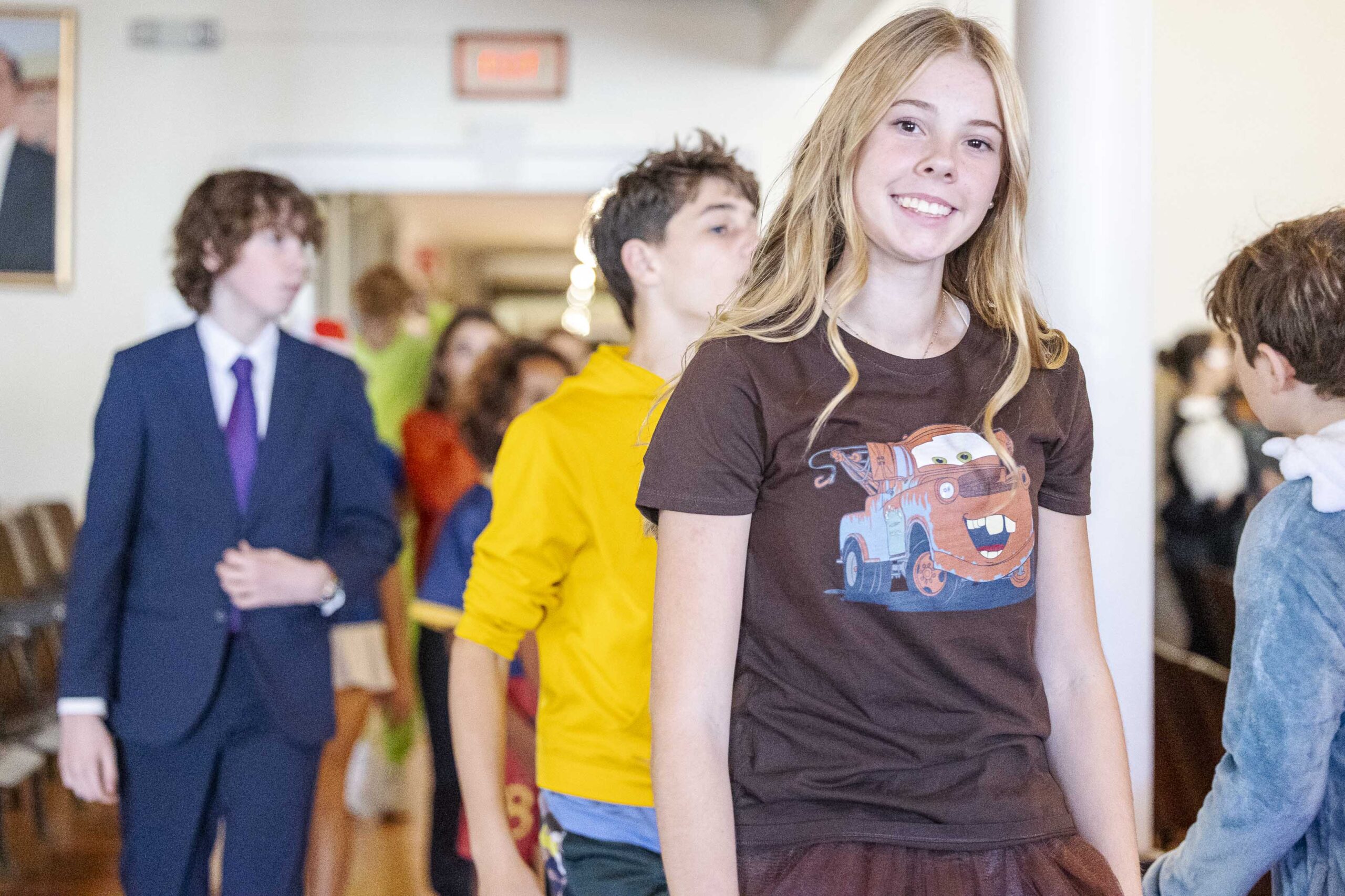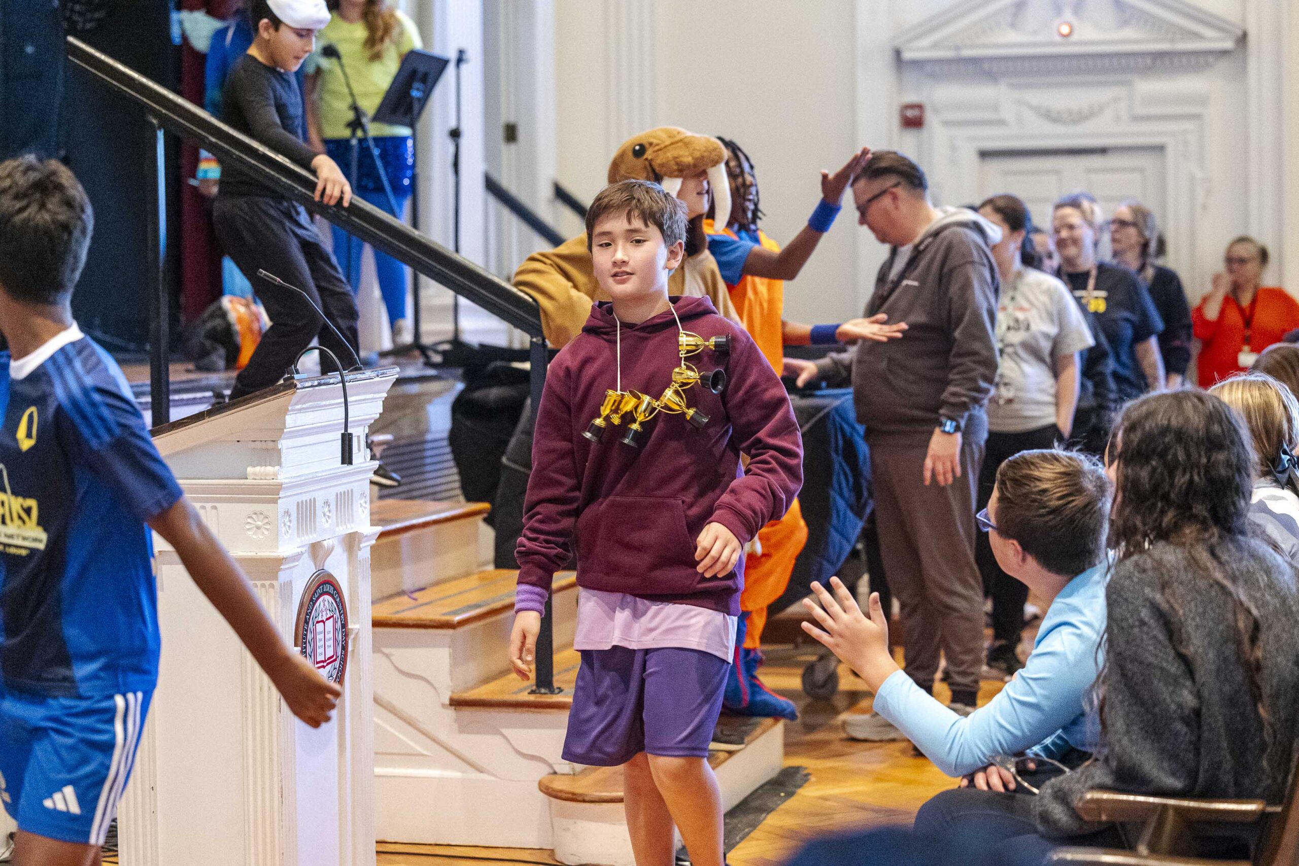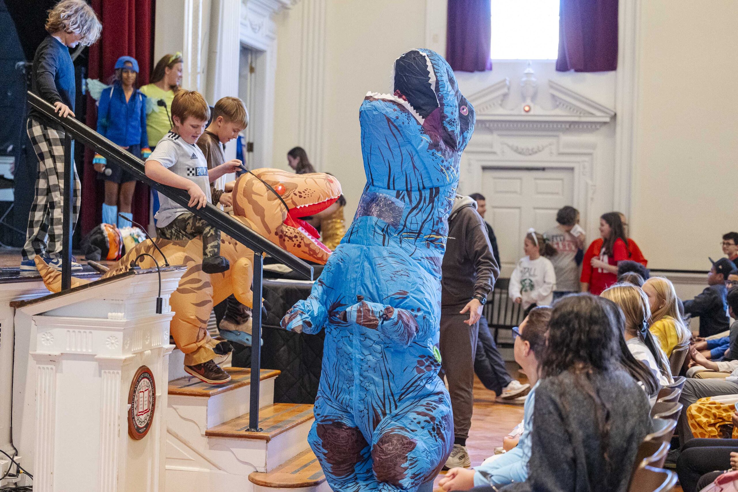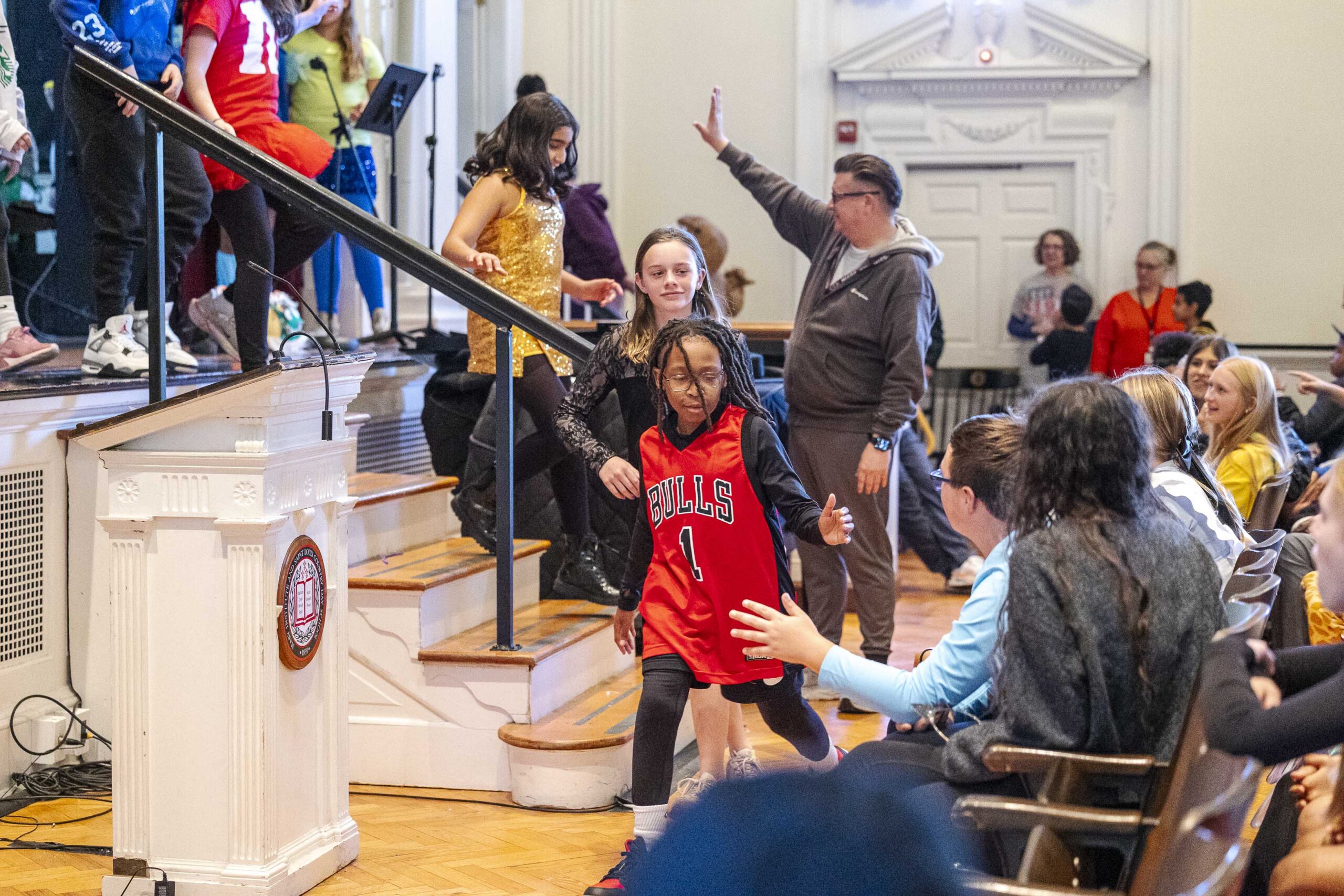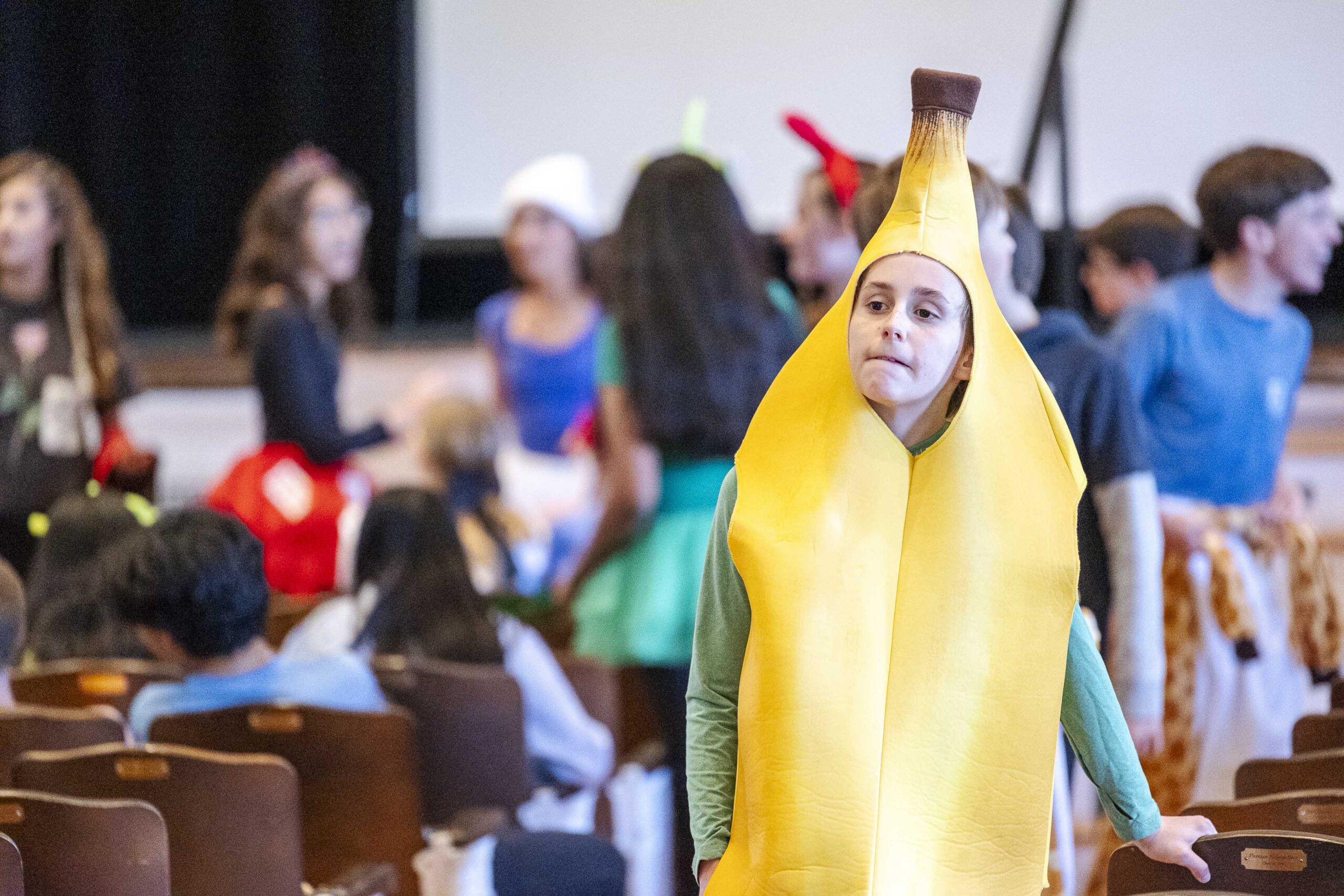 A special dismissal ensured that fifth grade was released first to parade across the stage in their Halloween costumes on their way out to their afternoon party in the dining hall.