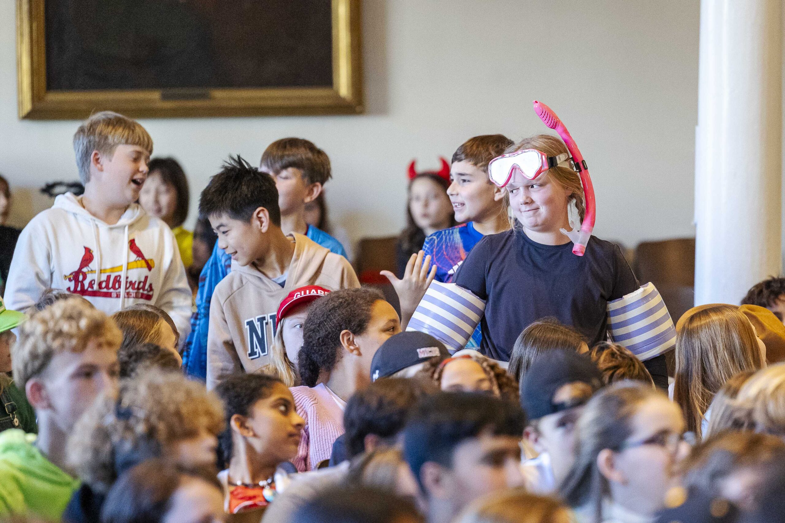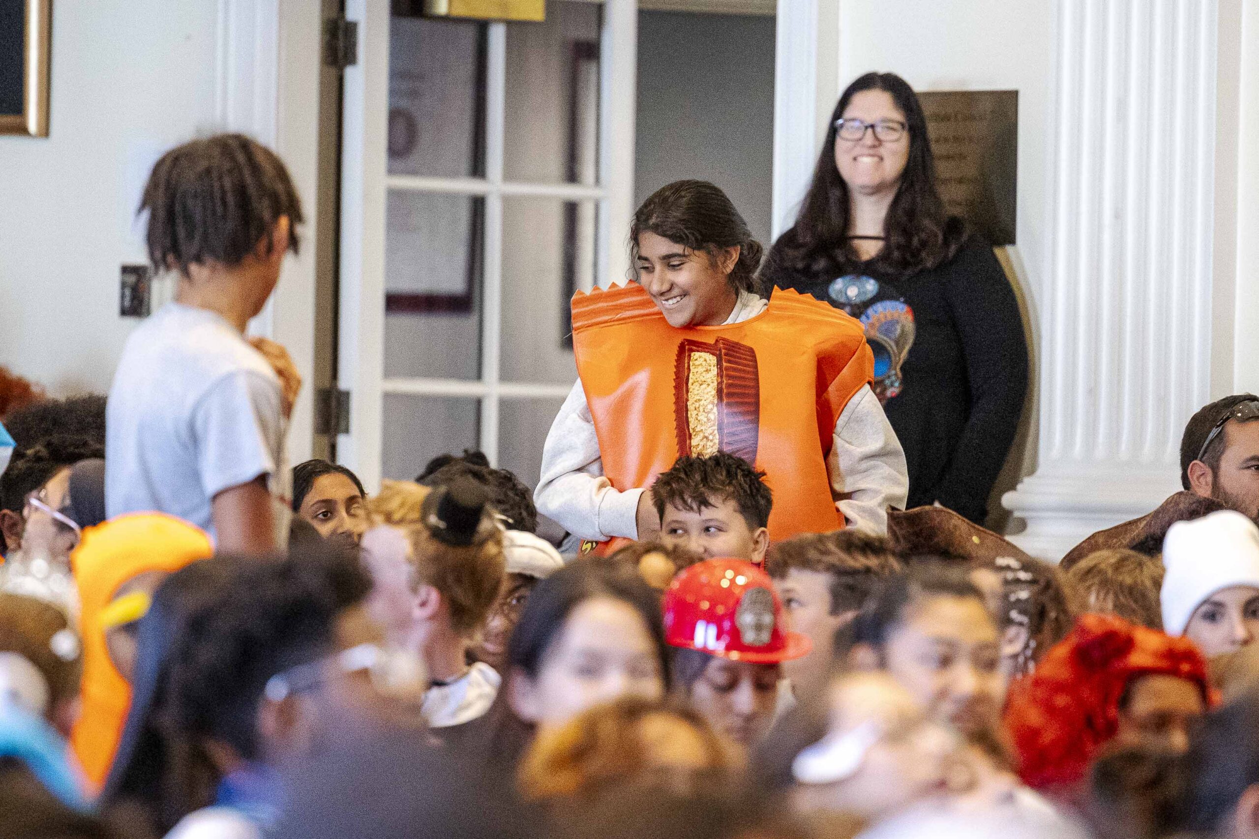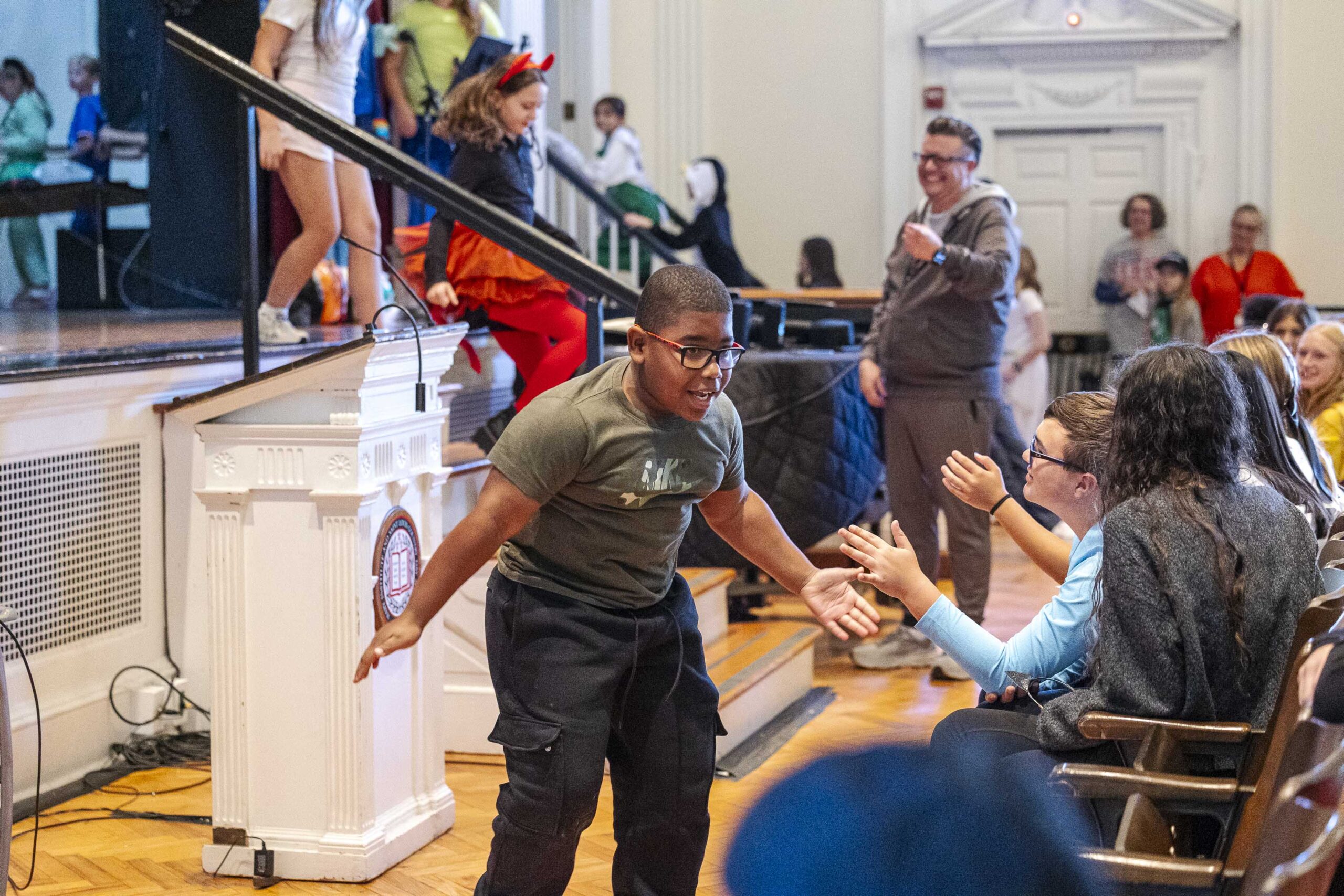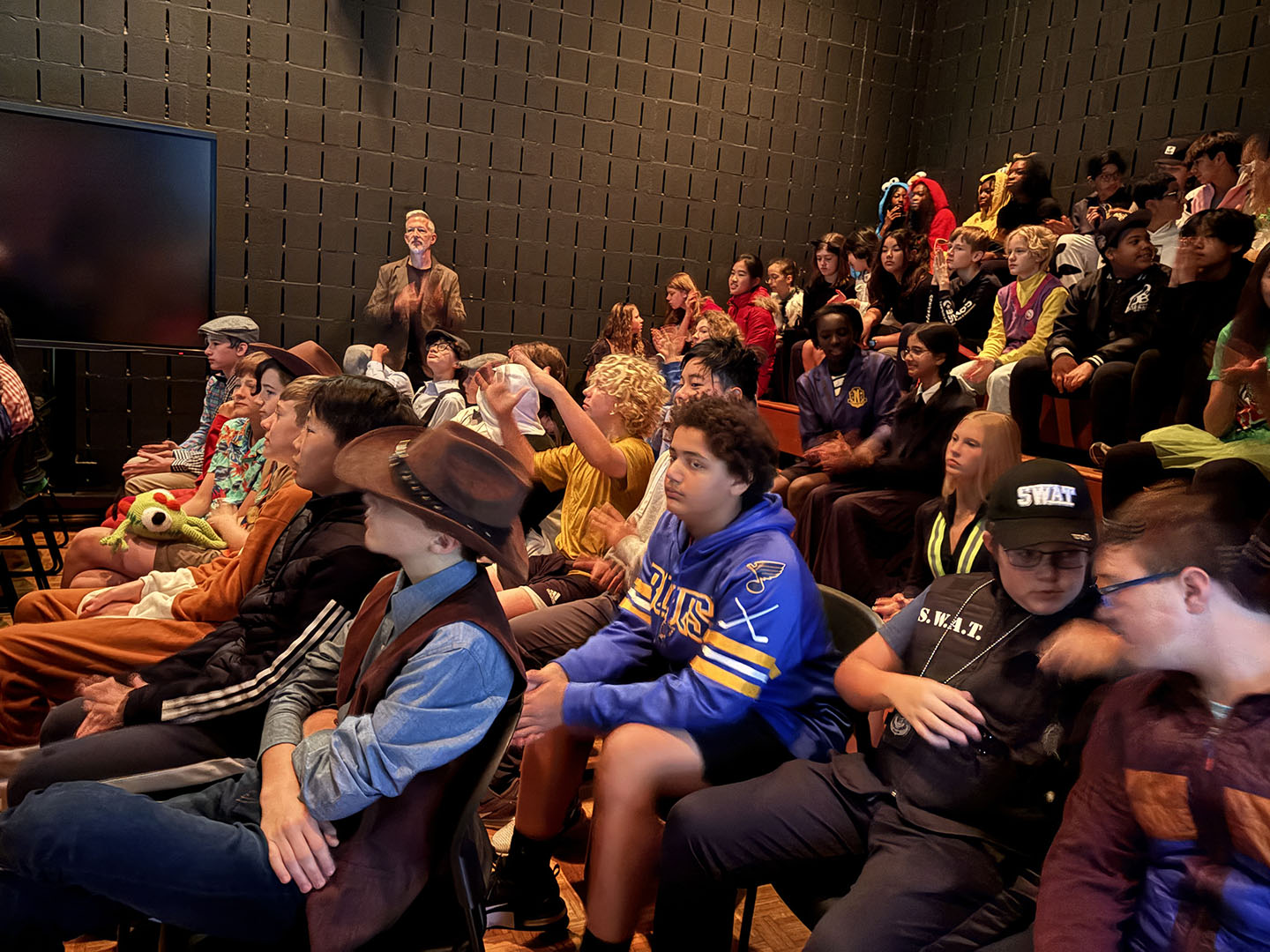 Crowd participation abounded with some creative (and physical) Halloween fun. The students played “Please stand up if…” and jumped to their feet when each description was appropriate: