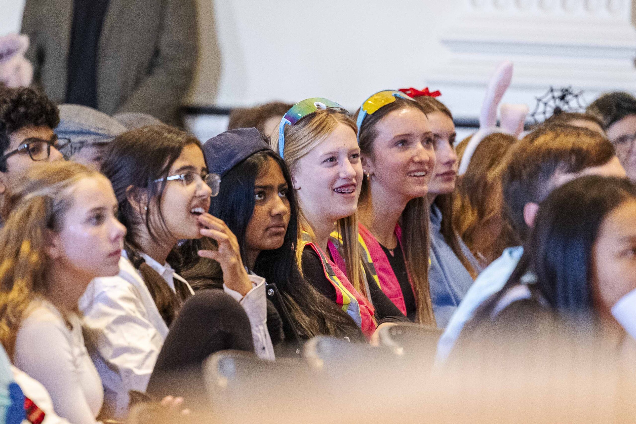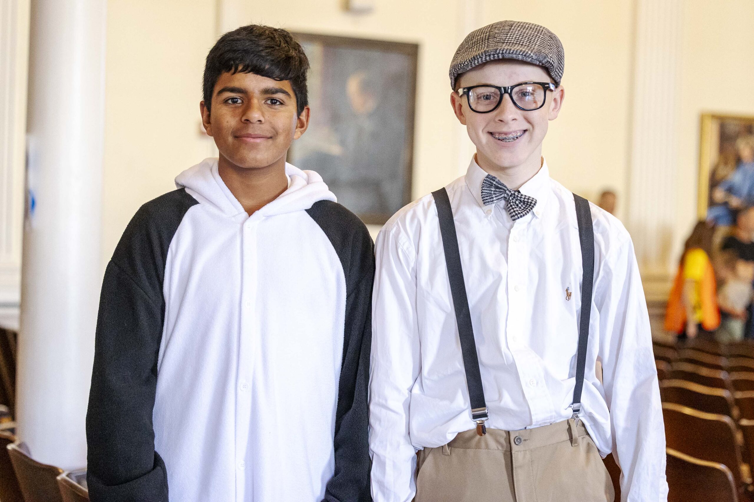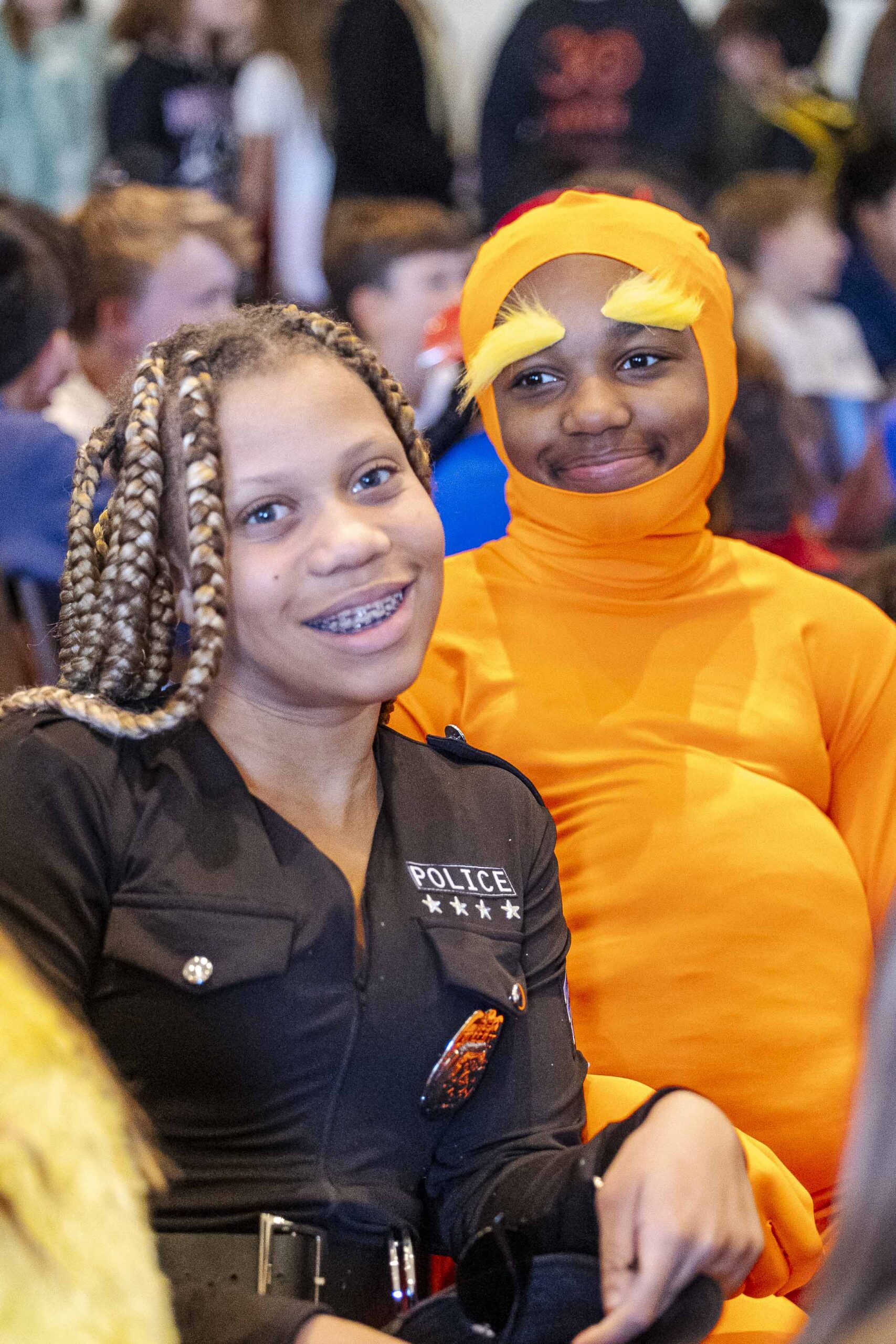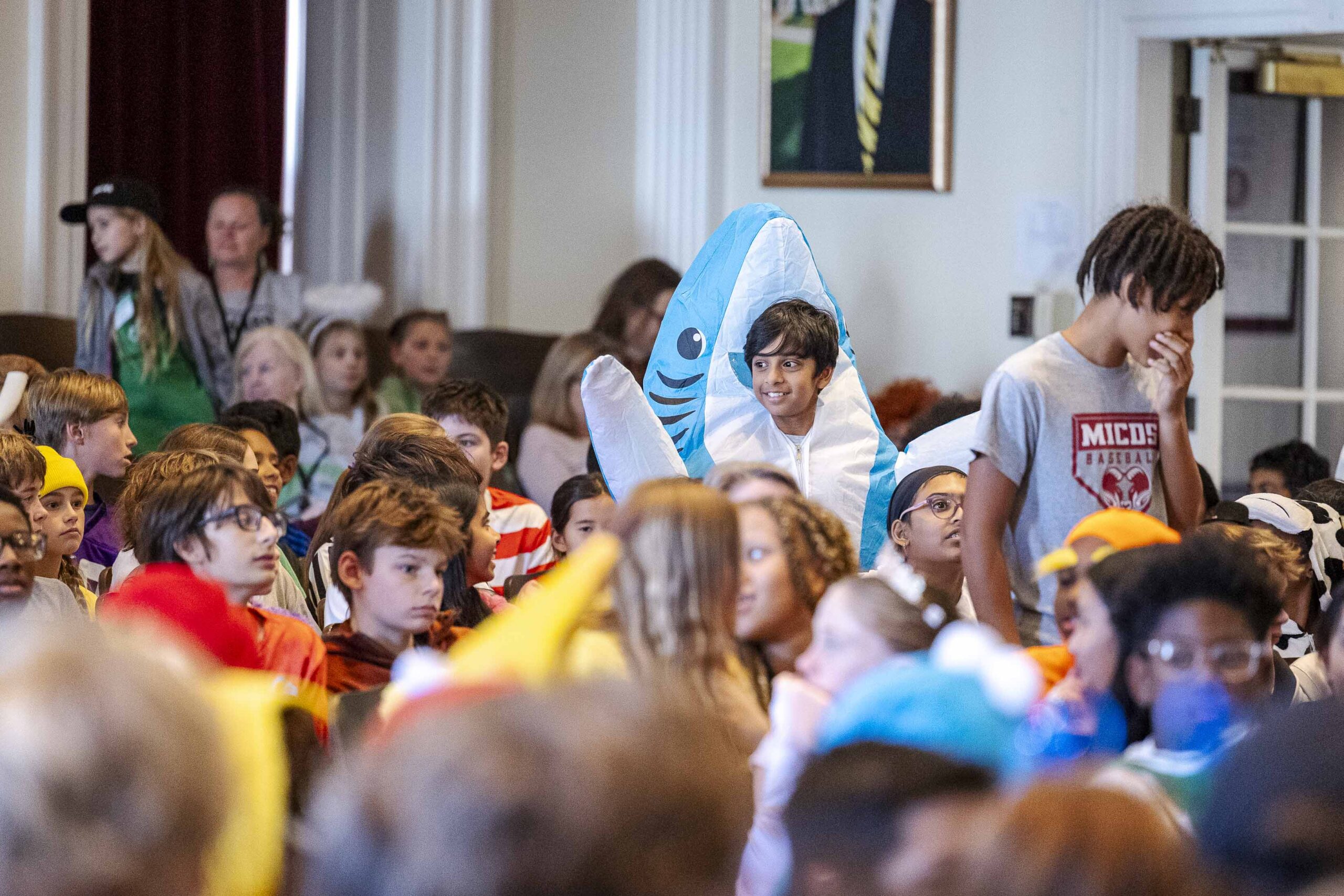 Crowd participation abounded with some creative (and physical) Halloween fun. The students played “Please stand up if…” and jumped to their feet when each description was appropriate:
