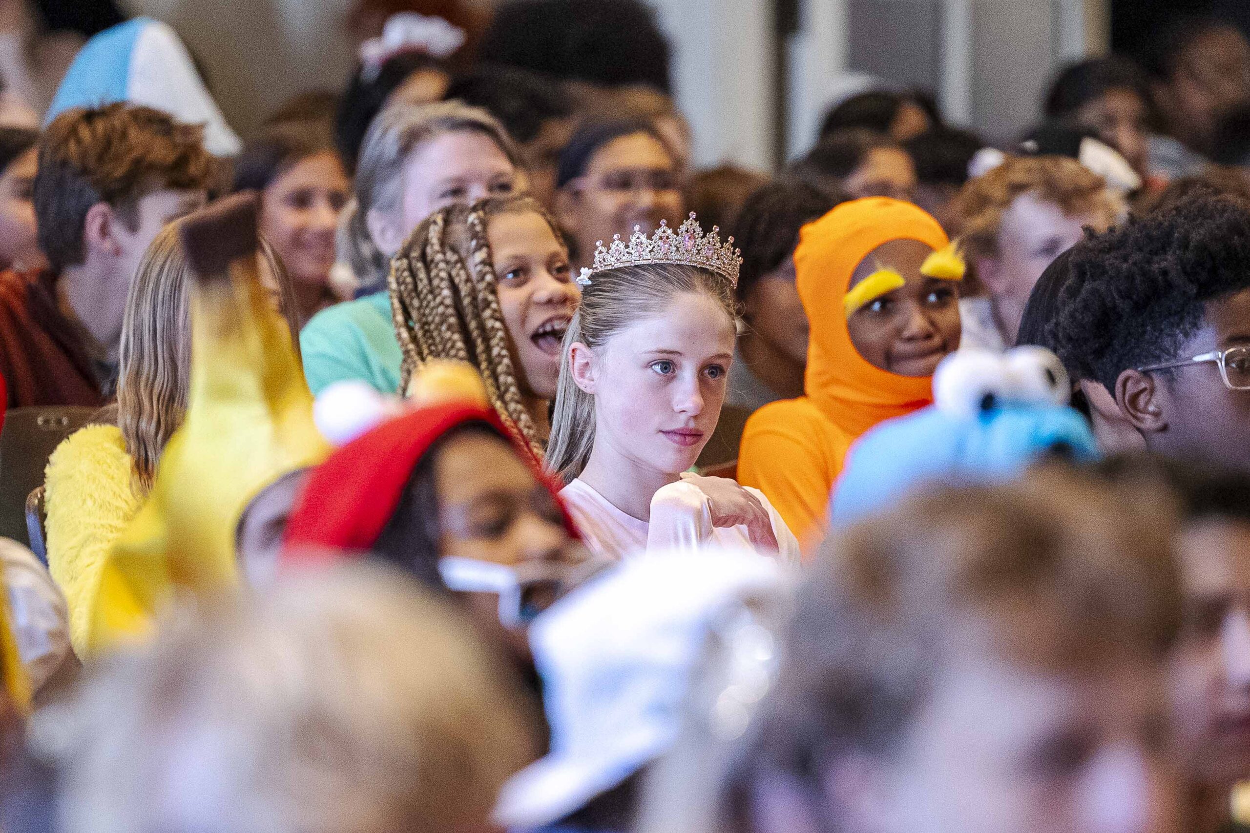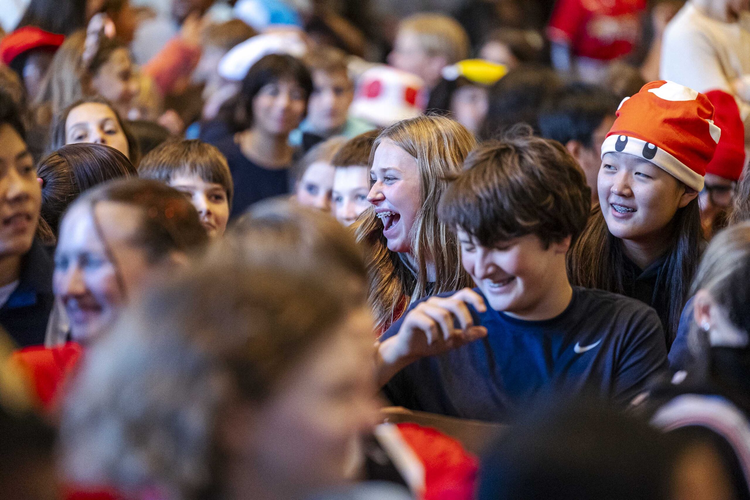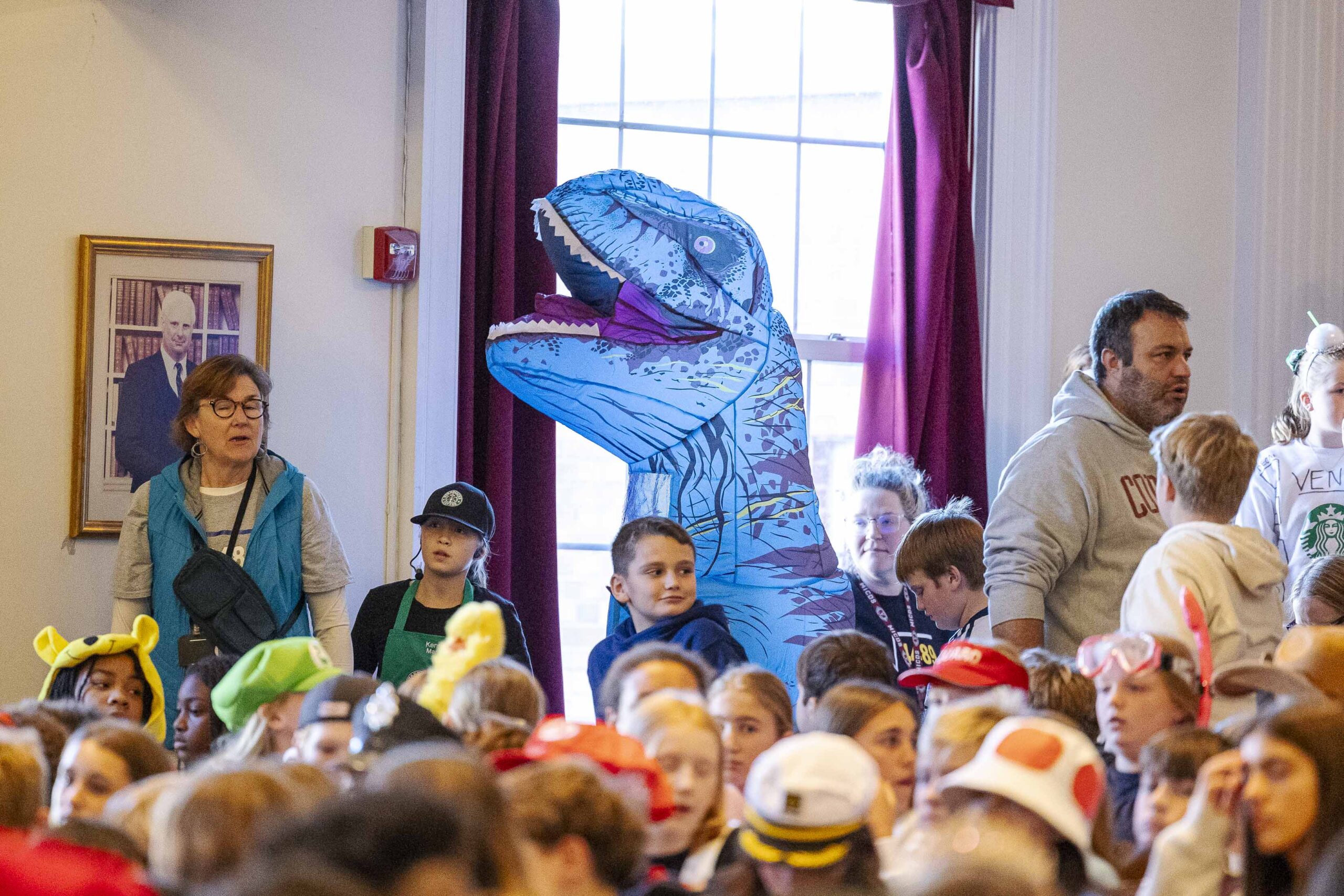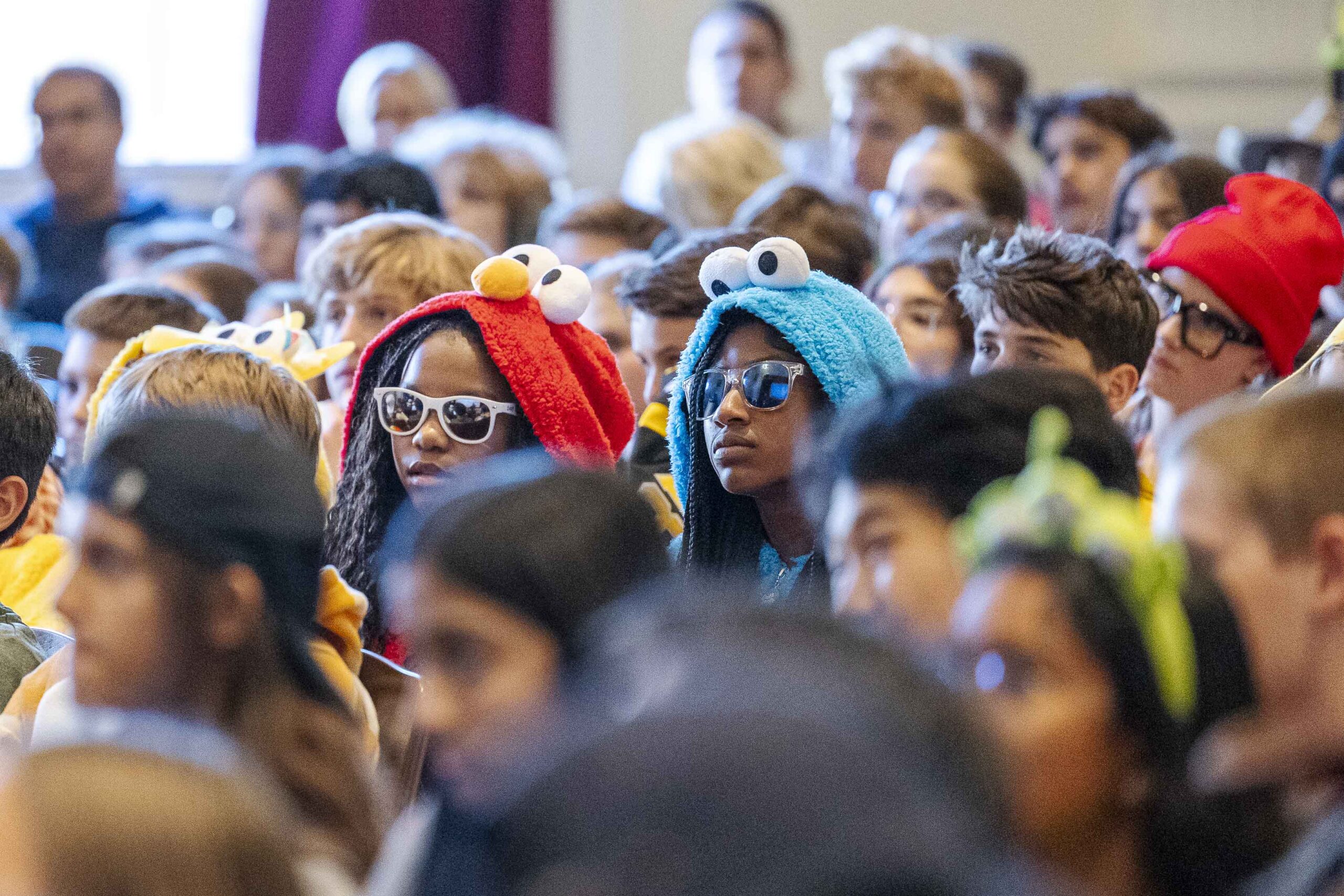 Crowd participation abounded with some creative (and physical) Halloween fun. The students played “Please stand up if…” and jumped to their feet when each description was appropriate: