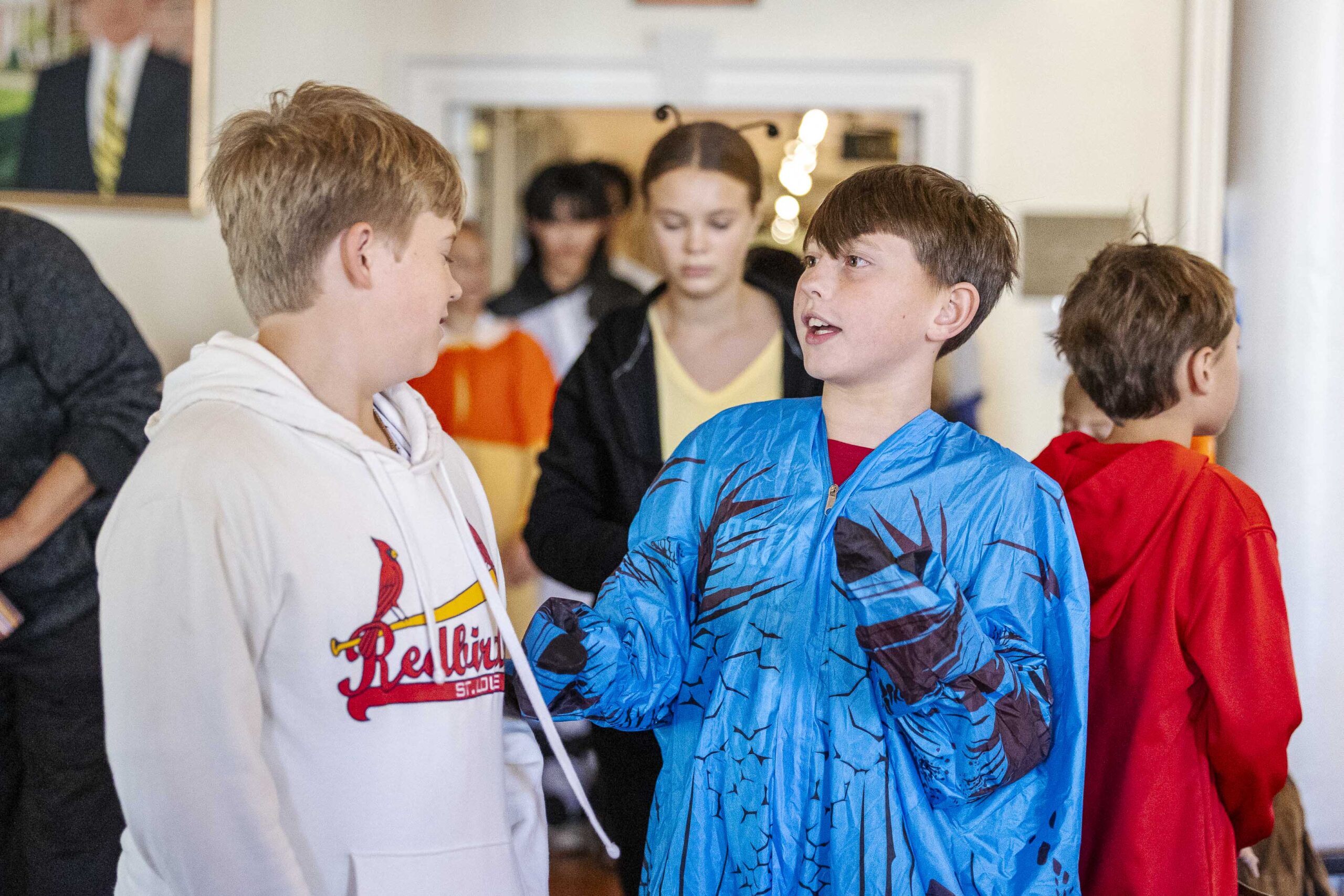 Middle Schoolers enjoyed Halloween last week with a literary bent, swapping spooky stories and having a ton of fun. Middle School Librarian Bethany Kavanaugh, who described herself as “your resident swamp witch librarian,” coordinated two activities for our students before everyone gathered for an afternoon assembly.