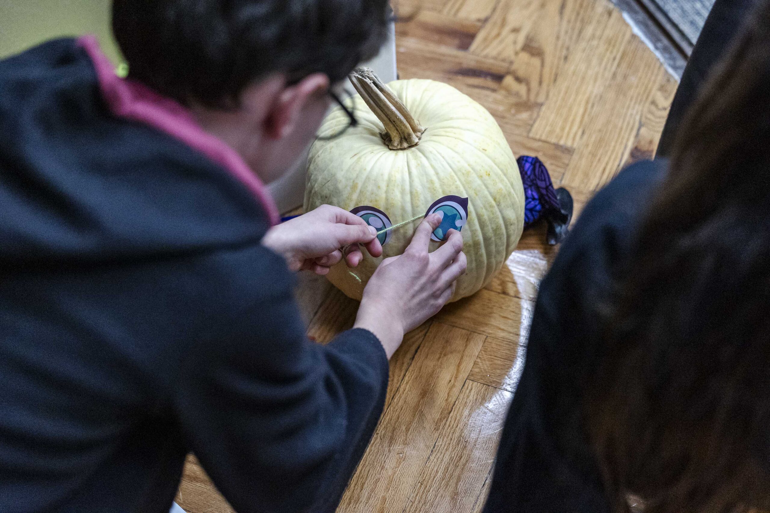Finally, the decorated pumpkins were ready, and the winner was announced: Team Seventh Grade, consisting of Henry Sharp ’31 and Jasmine Bell ’31, took the win with a monster-themed gourd.