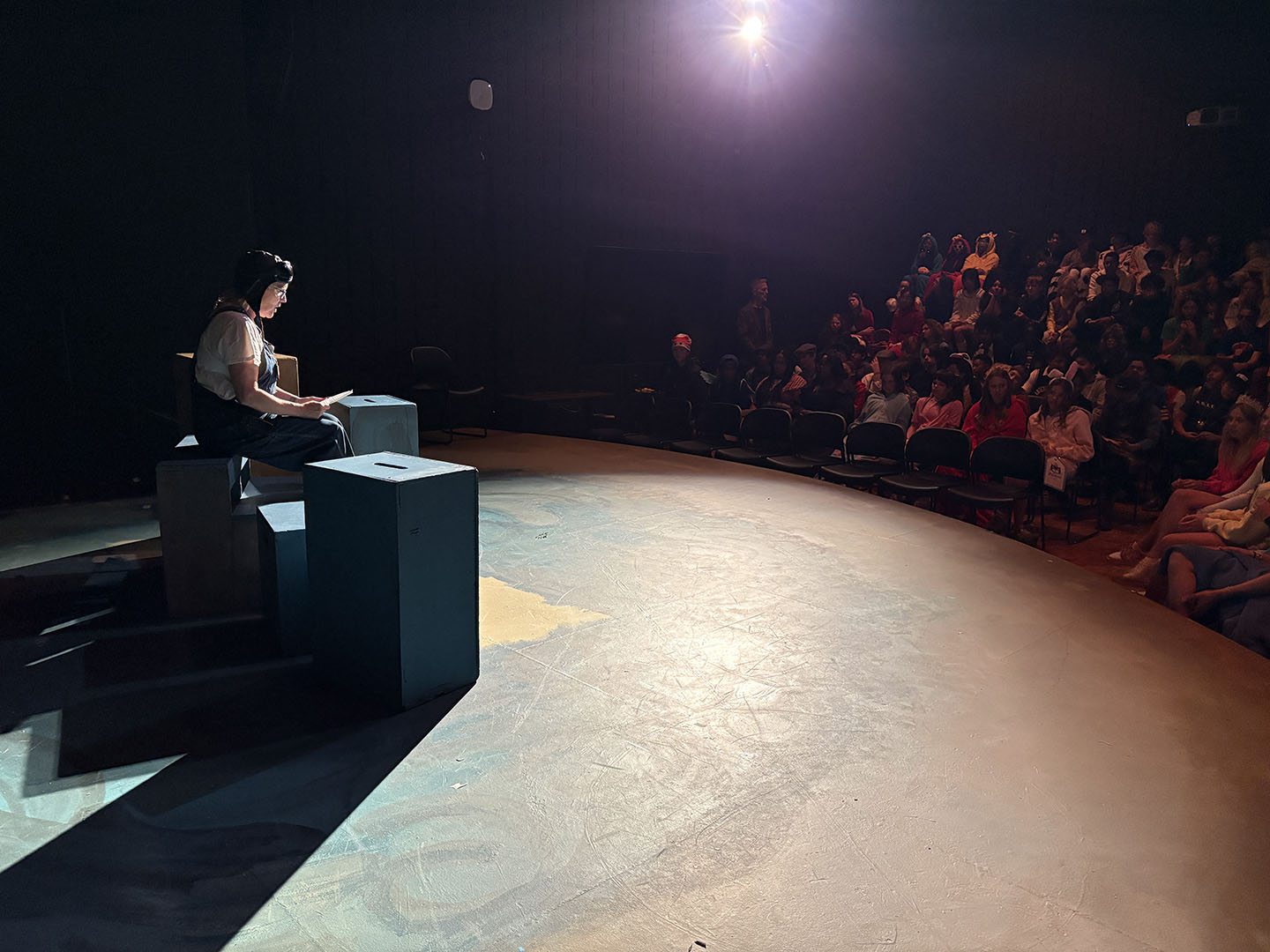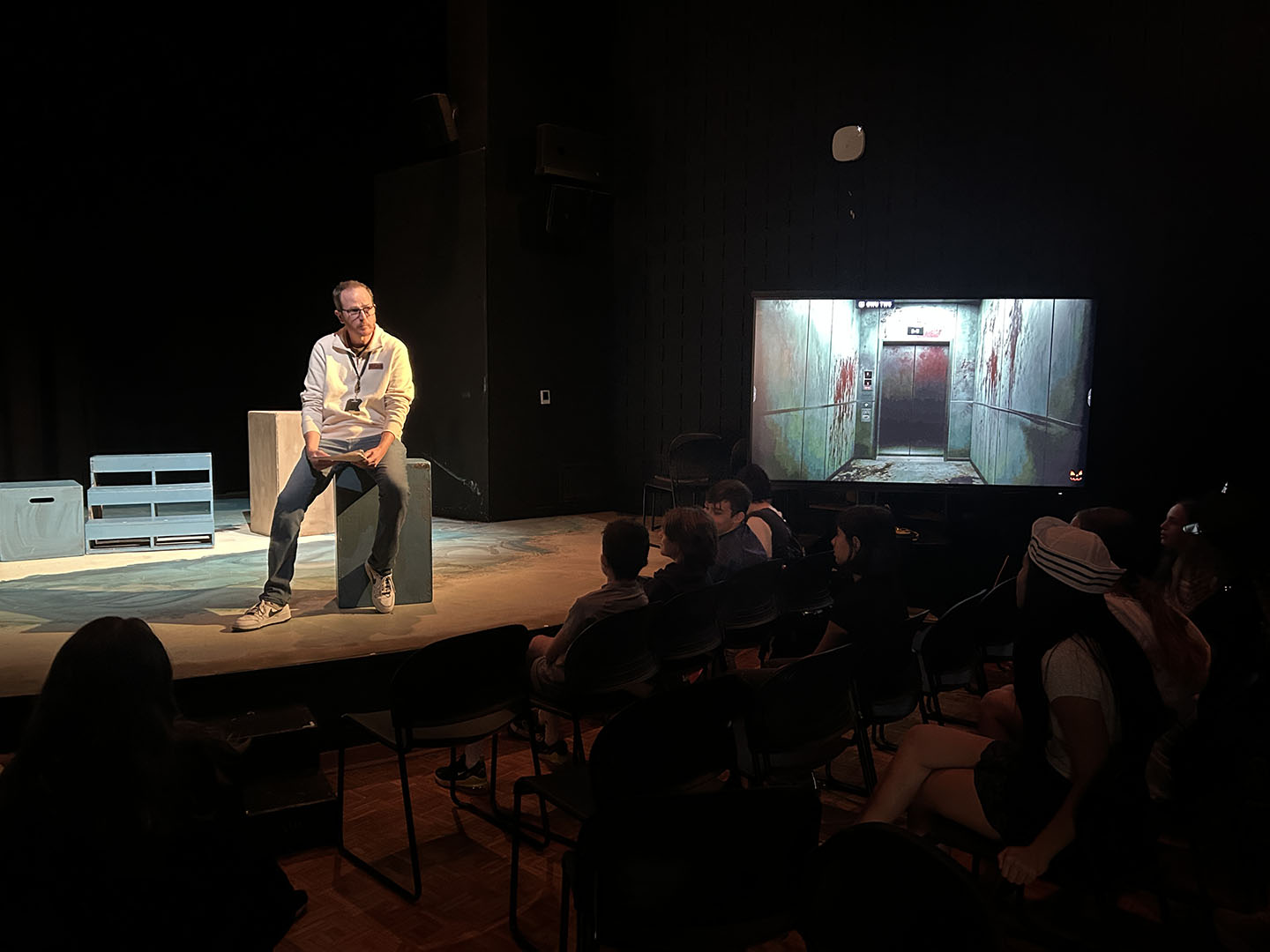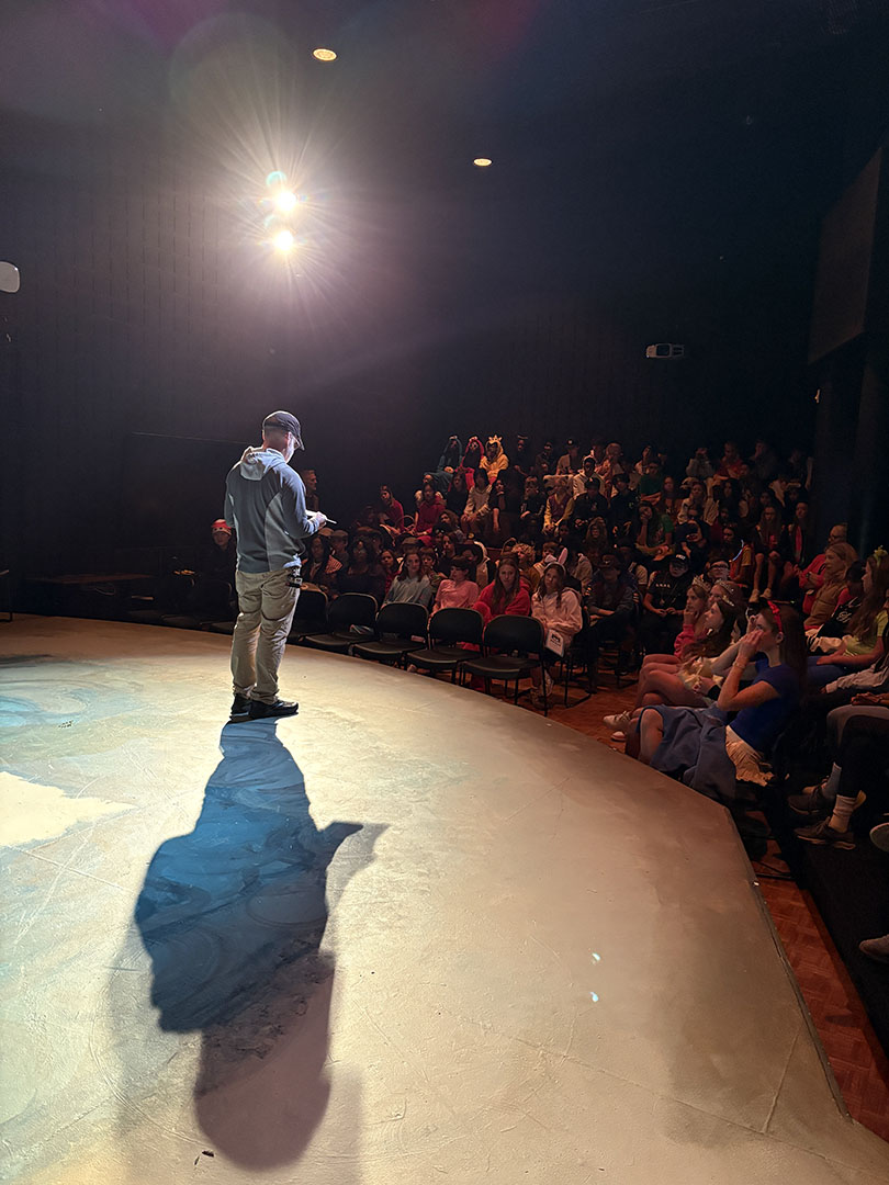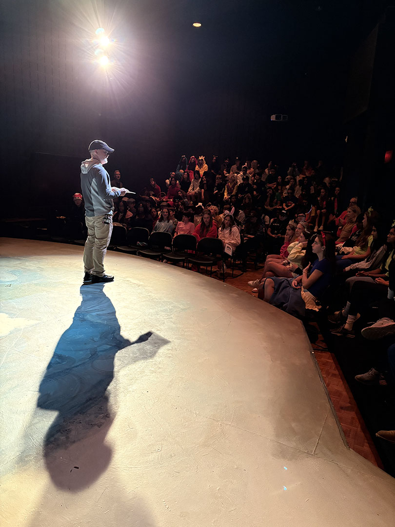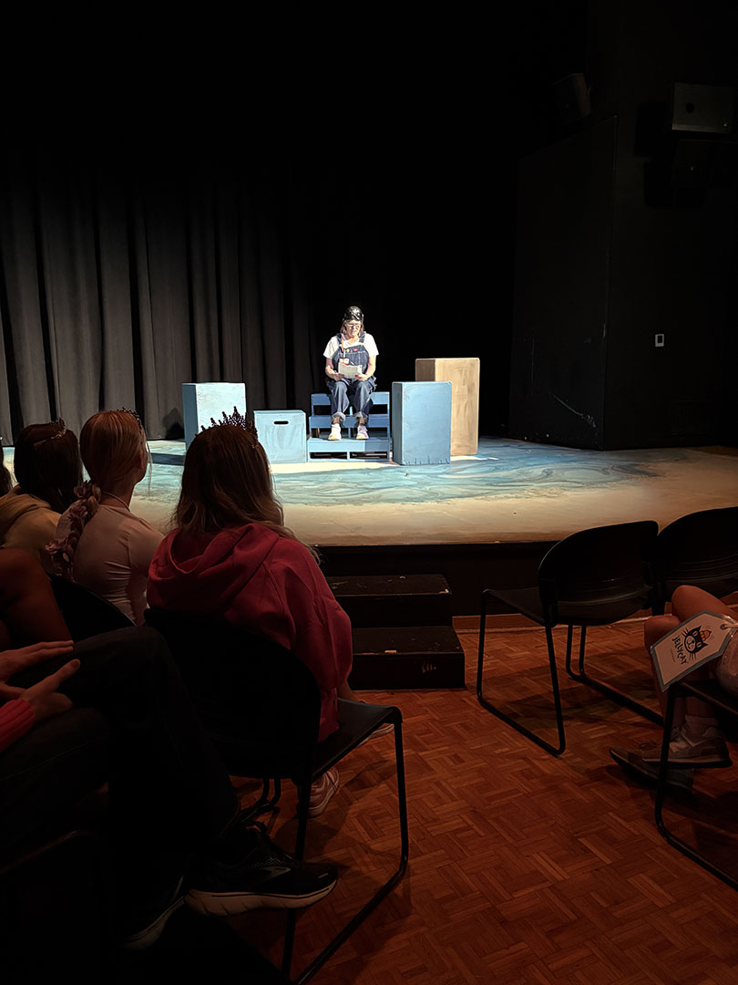 Kavanaugh then turned to her colleagues to make Friday, October 31, a haunted holiday. She invited teachers to read Spooky Stories. Classes took turns gathering in the Freeman Arts Building’s blackbox theatre, where students listened as their ghoulish educators delighted in sharing tales of horror.