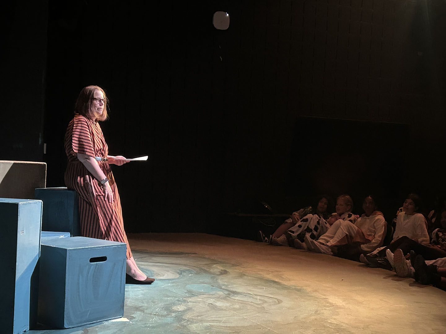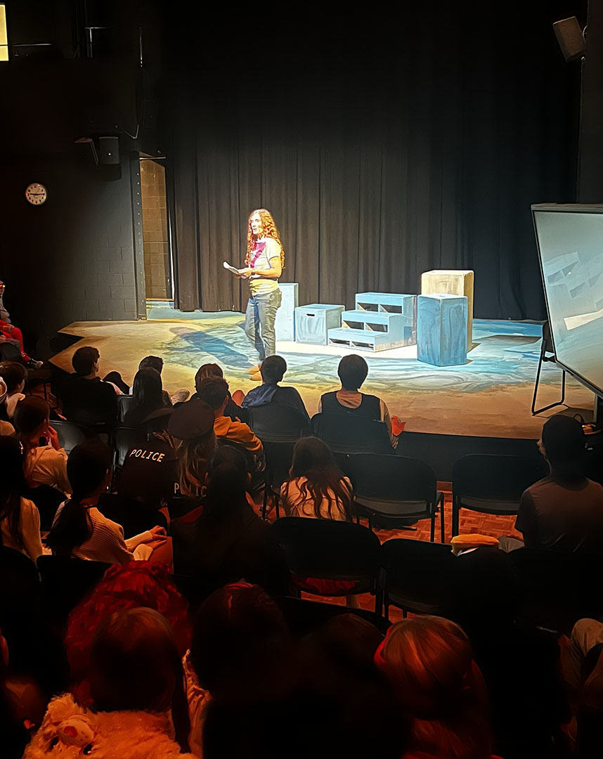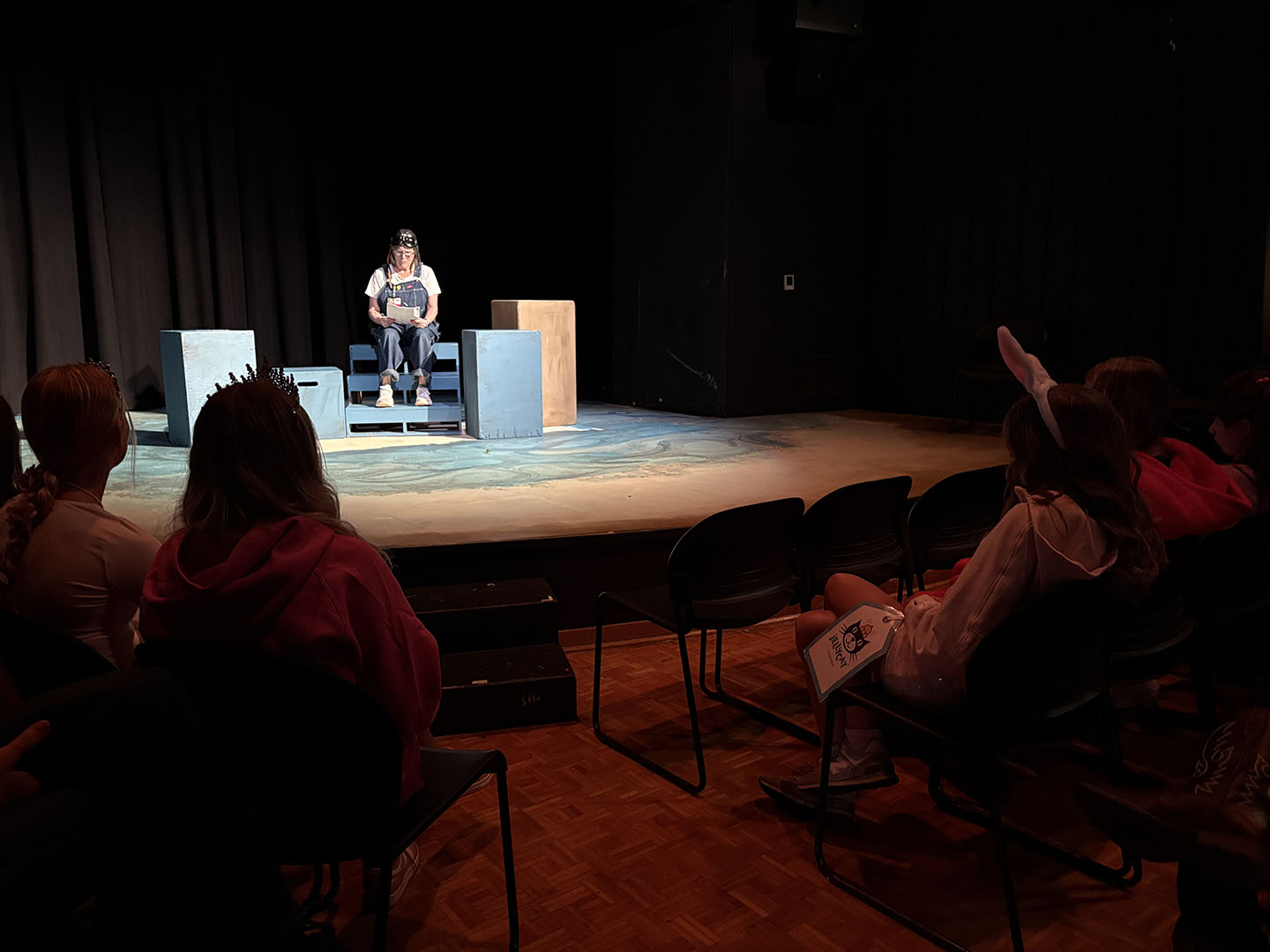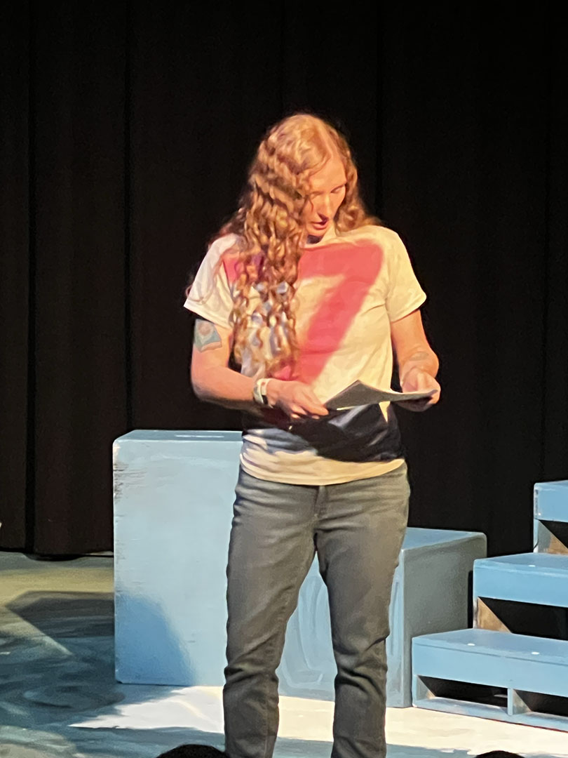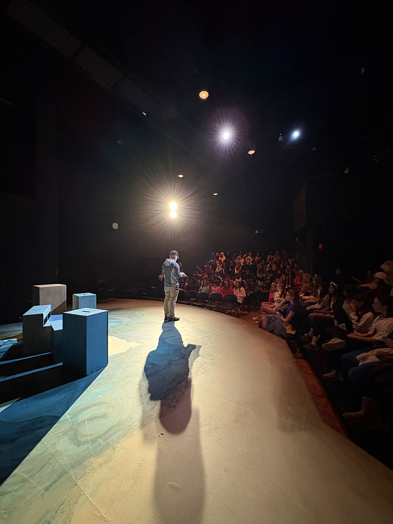 Kavanaugh then turned to her colleagues to make Friday, October 31, a haunted holiday. She invited teachers to read Spooky Stories. Classes took turns gathering in the Freeman Arts Building’s blackbox theatre, where students listened as their ghoulish educators delighted in sharing tales of horror.