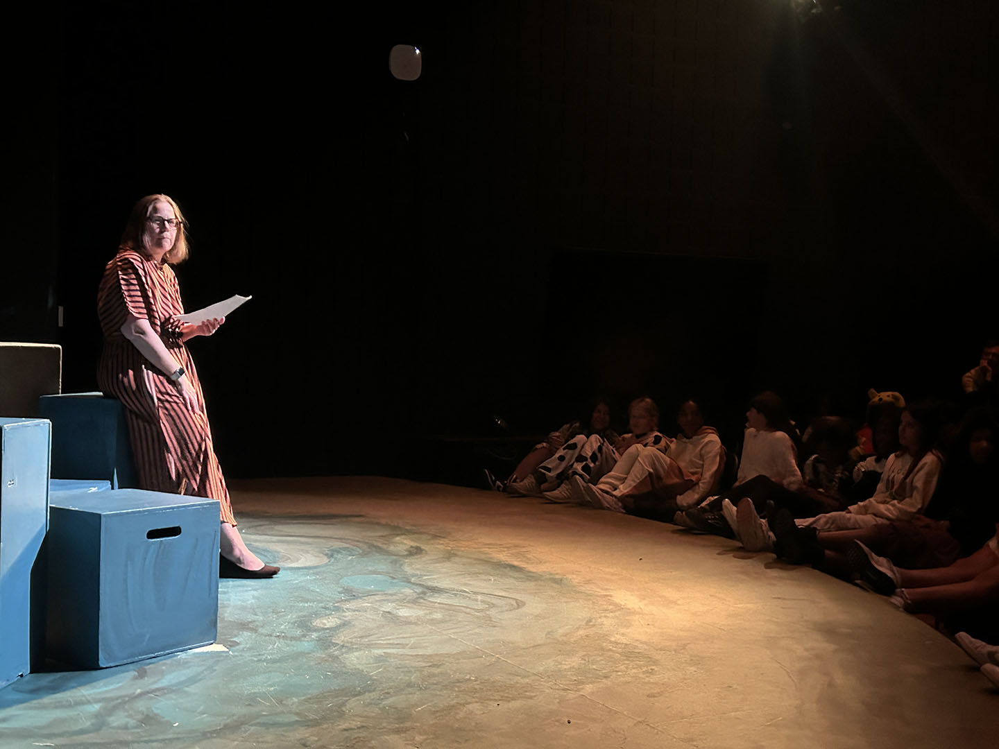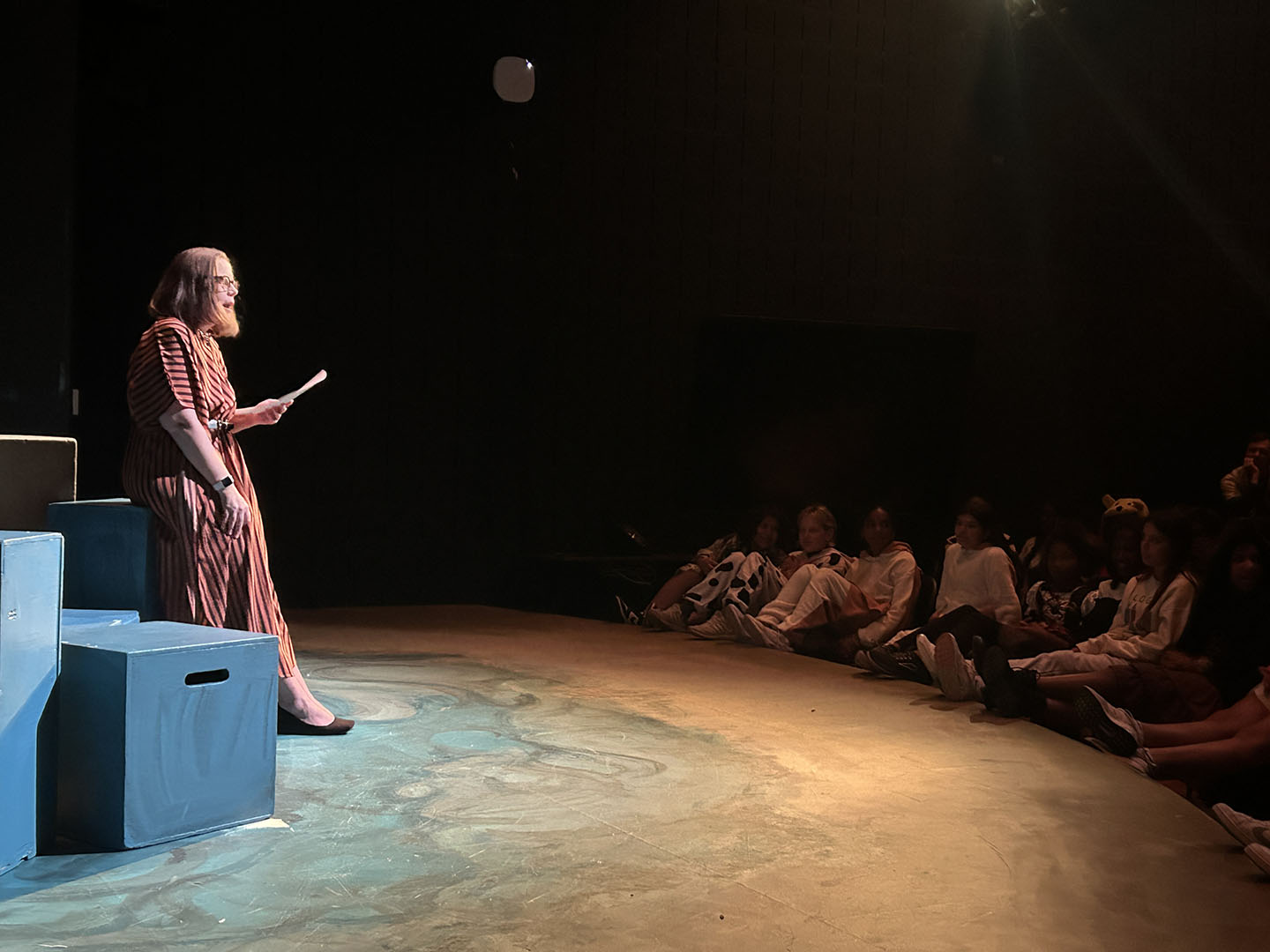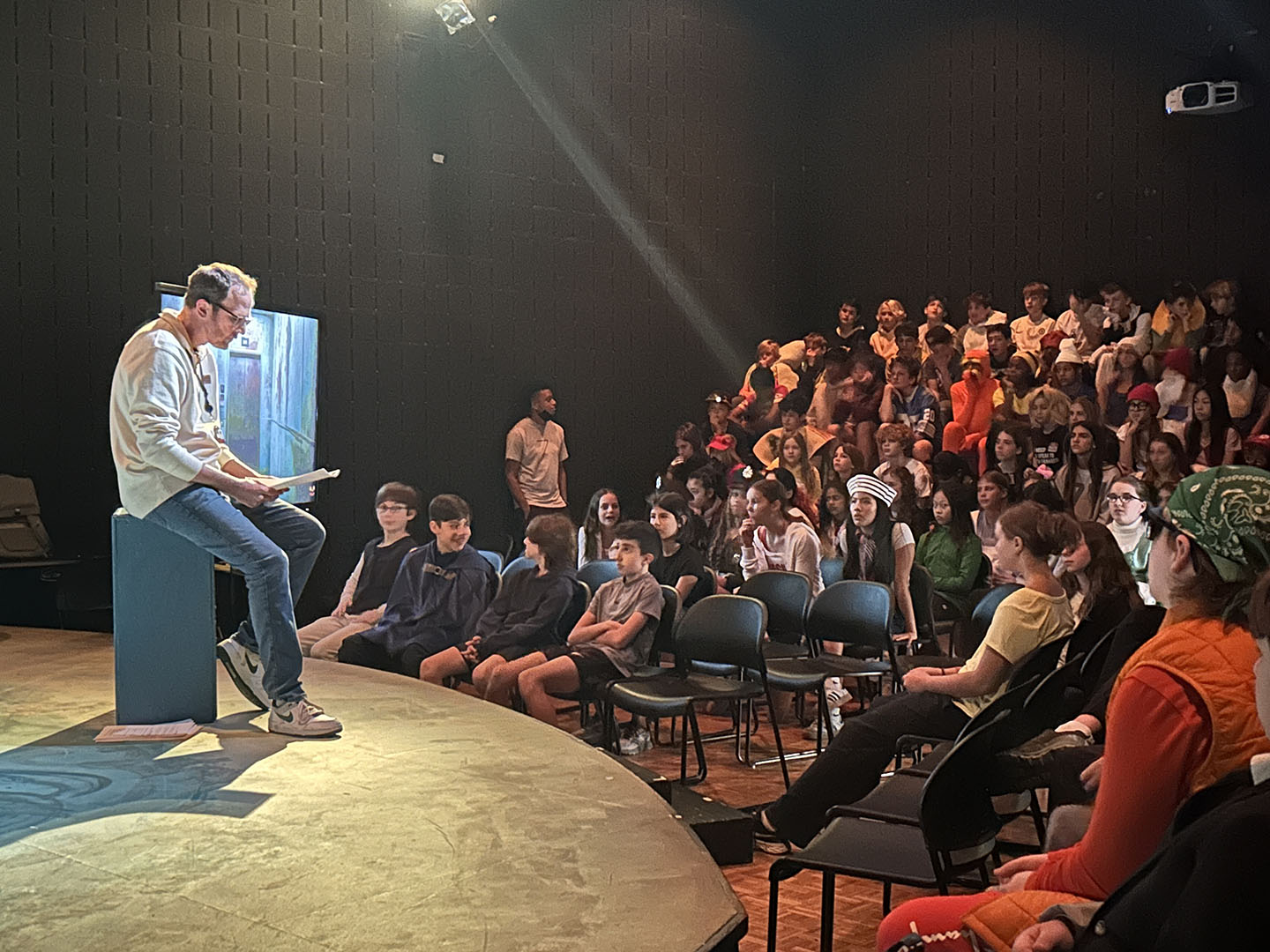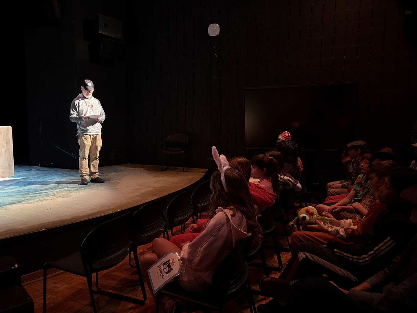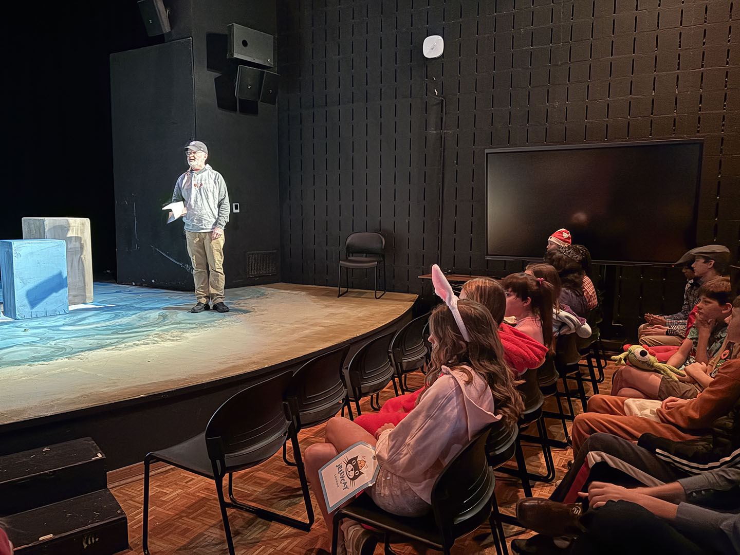 Kavanaugh then turned to her colleagues to make Friday, October 31, a haunted holiday. She invited teachers to read Spooky Stories. Classes took turns gathering in the Freeman Arts Building’s blackbox theatre, where students listened as their ghoulish educators delighted in sharing tales of horror.