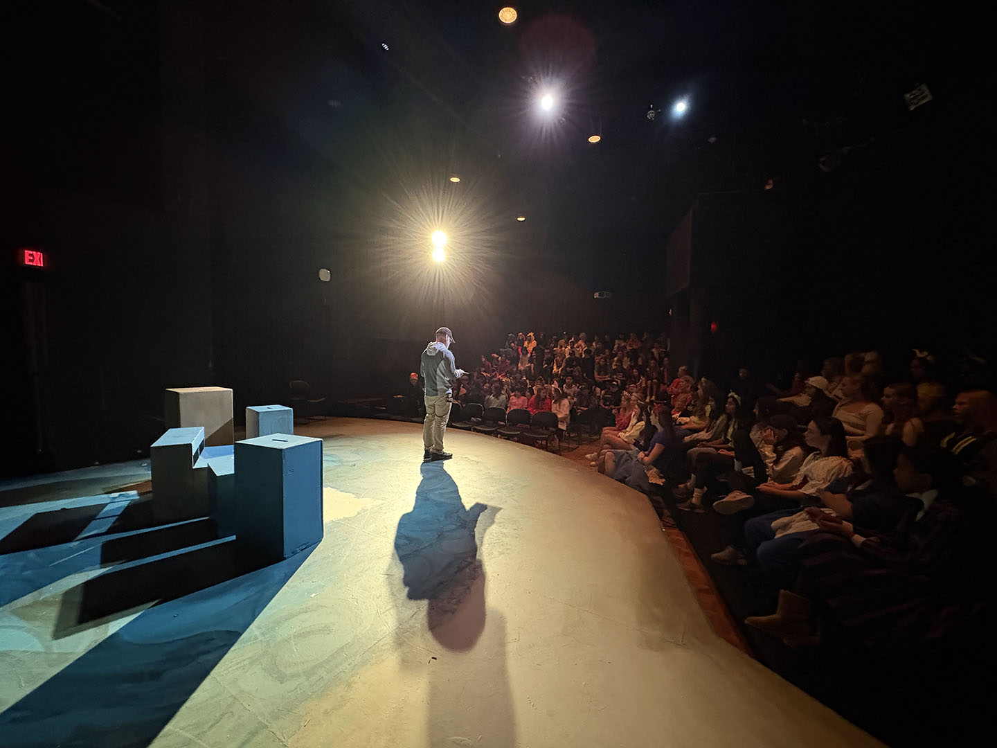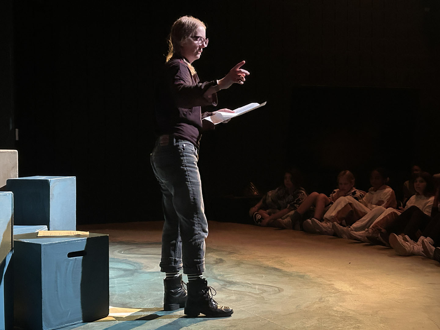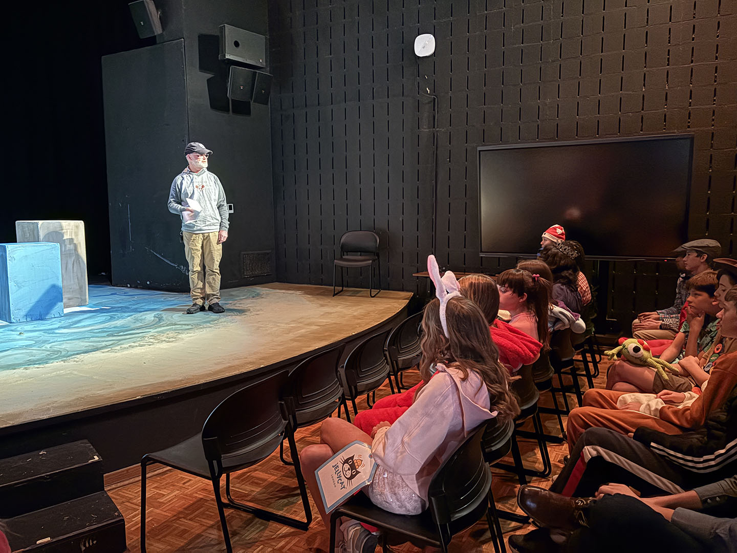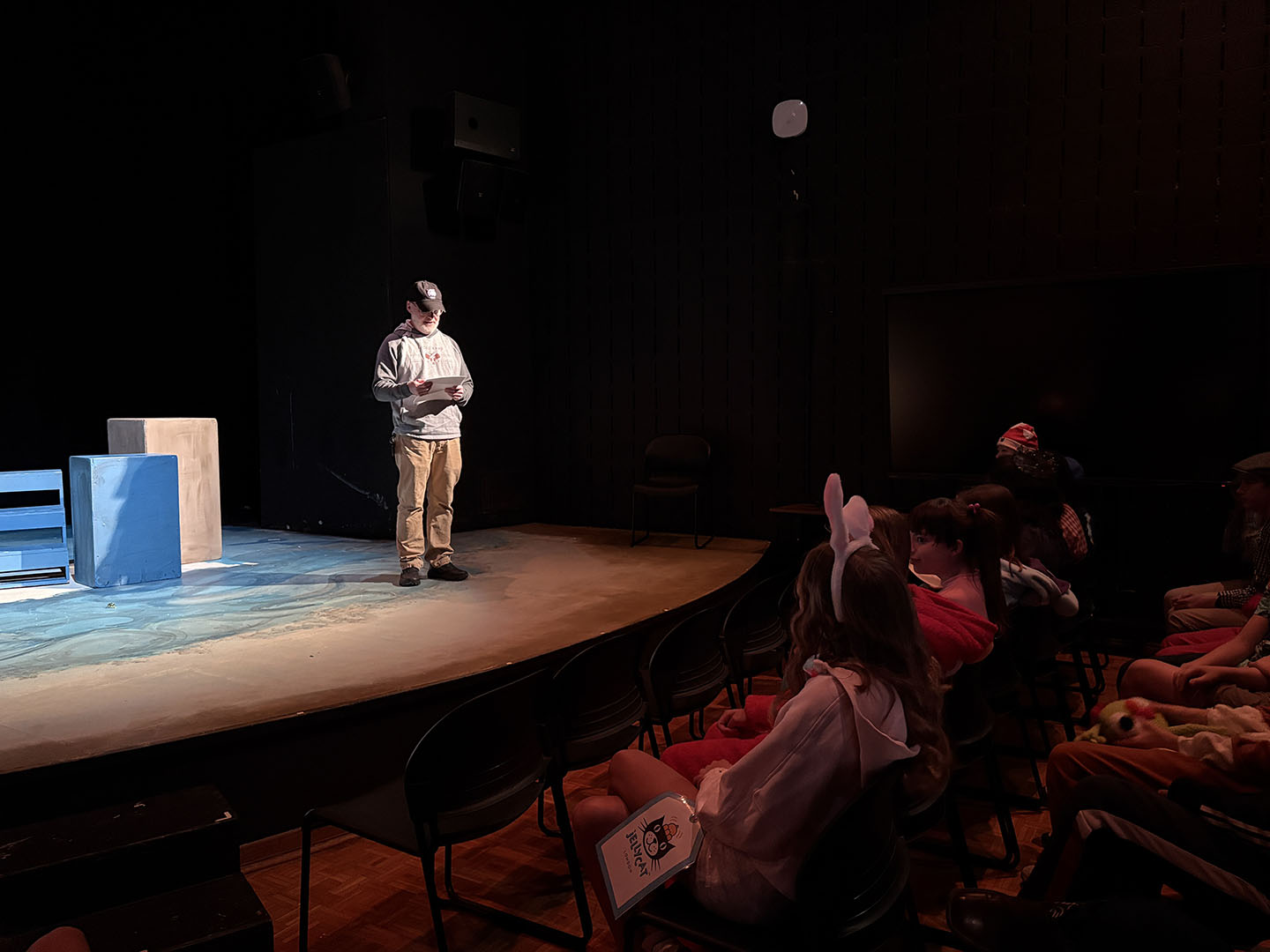 Kavanaugh then turned to her colleagues to make Friday, October 31, a haunted holiday. She invited teachers to read Spooky Stories. Classes took turns gathering in the Freeman Arts Building’s blackbox theatre, where students listened as their ghoulish educators delighted in sharing tales of horror.