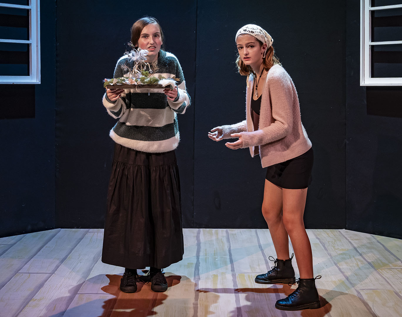 This past weekend, the US Theatre Arts Program transformed the Vincent Price Black Box Theatre into a gallery of eccentric characters, sharp humor, and unexpected depth with Tina Howe’s satirical play, MUSEUM. Directed by Upper School Arts Teacher Patrick Huber, the production offered audiences a clever, fast-paced exploration of how we engage with art—and each other.