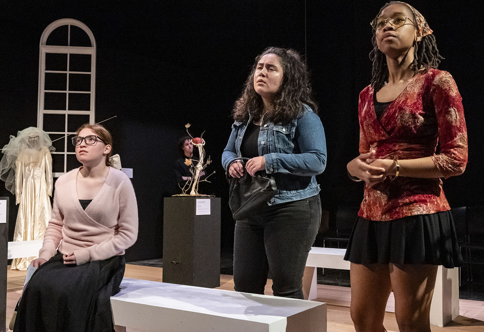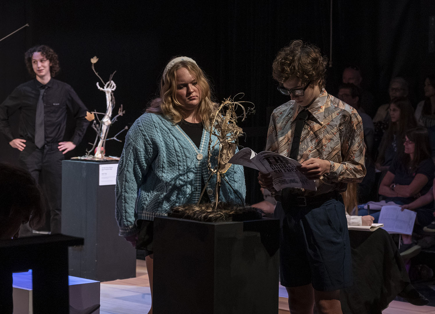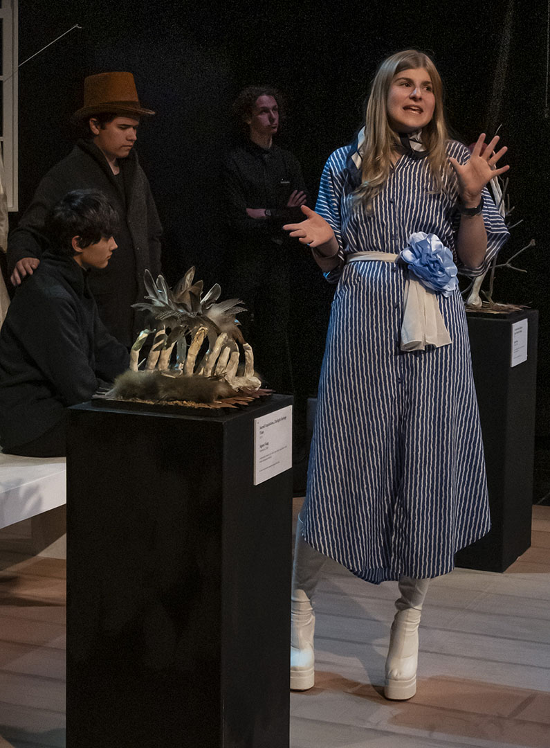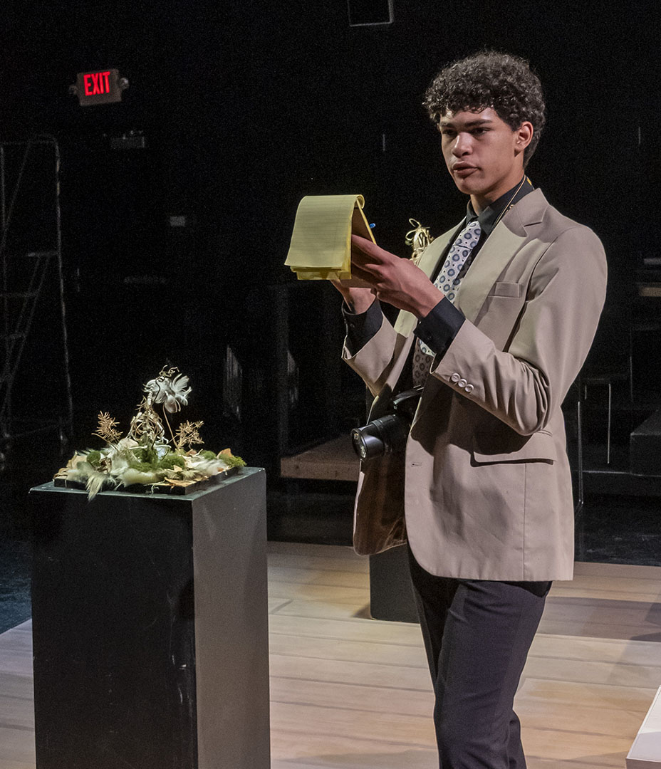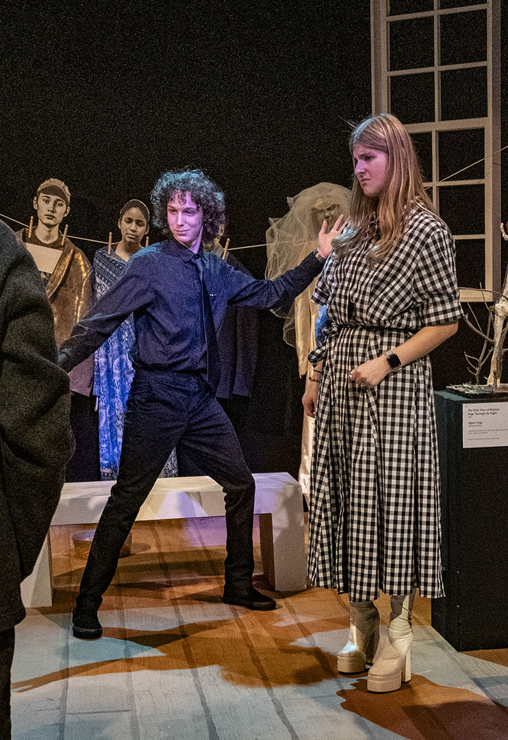 The decision to stage MUSEUM was deliberate—and a little bit daring. The play’s structure offers a unique opportunity for large ensemble work, giving many students a chance to shine. It is an absurd, quick-change format that also challenges actors to switch gears rapidly, flexing a wide range of performance muscles.