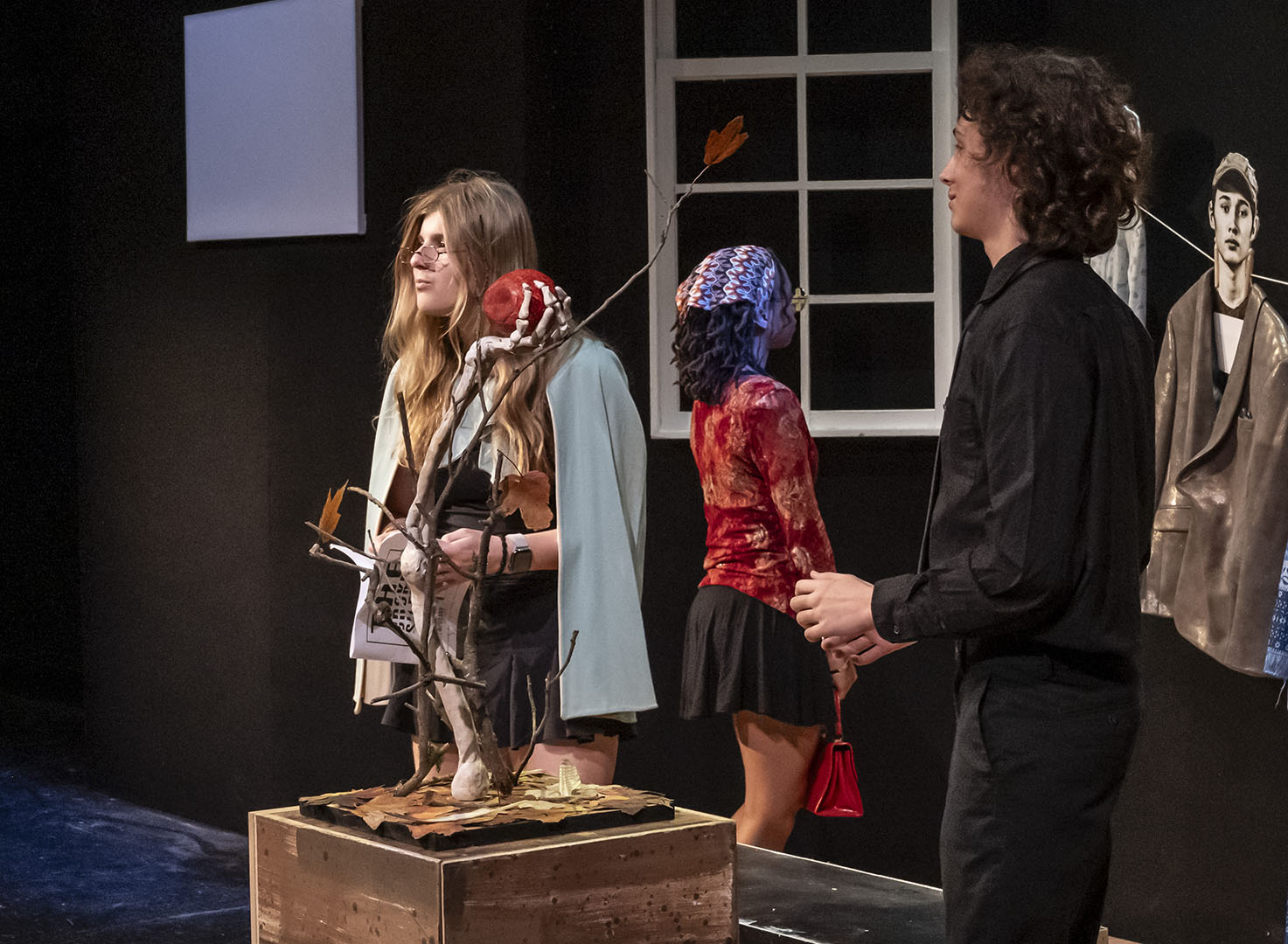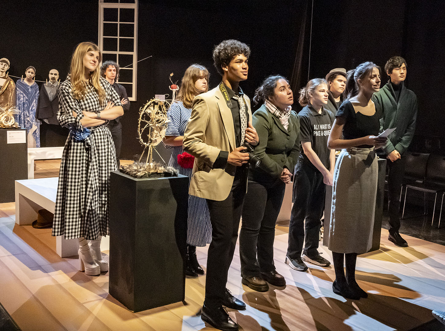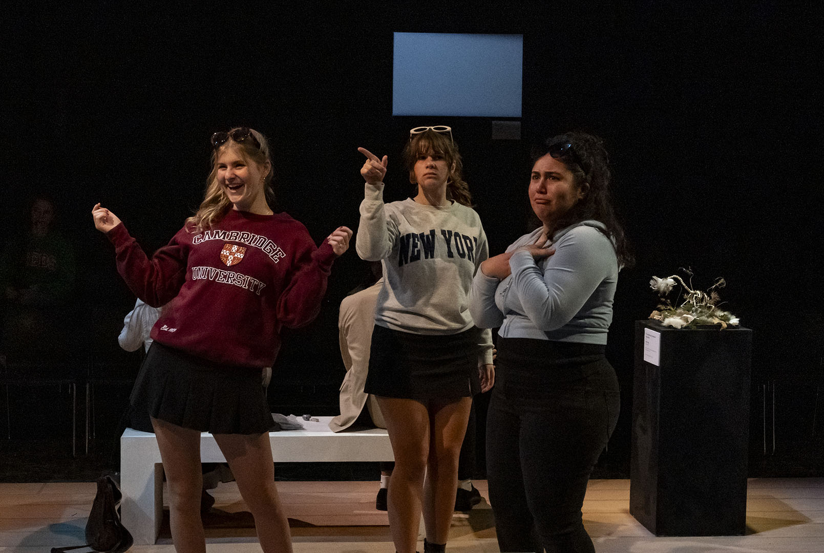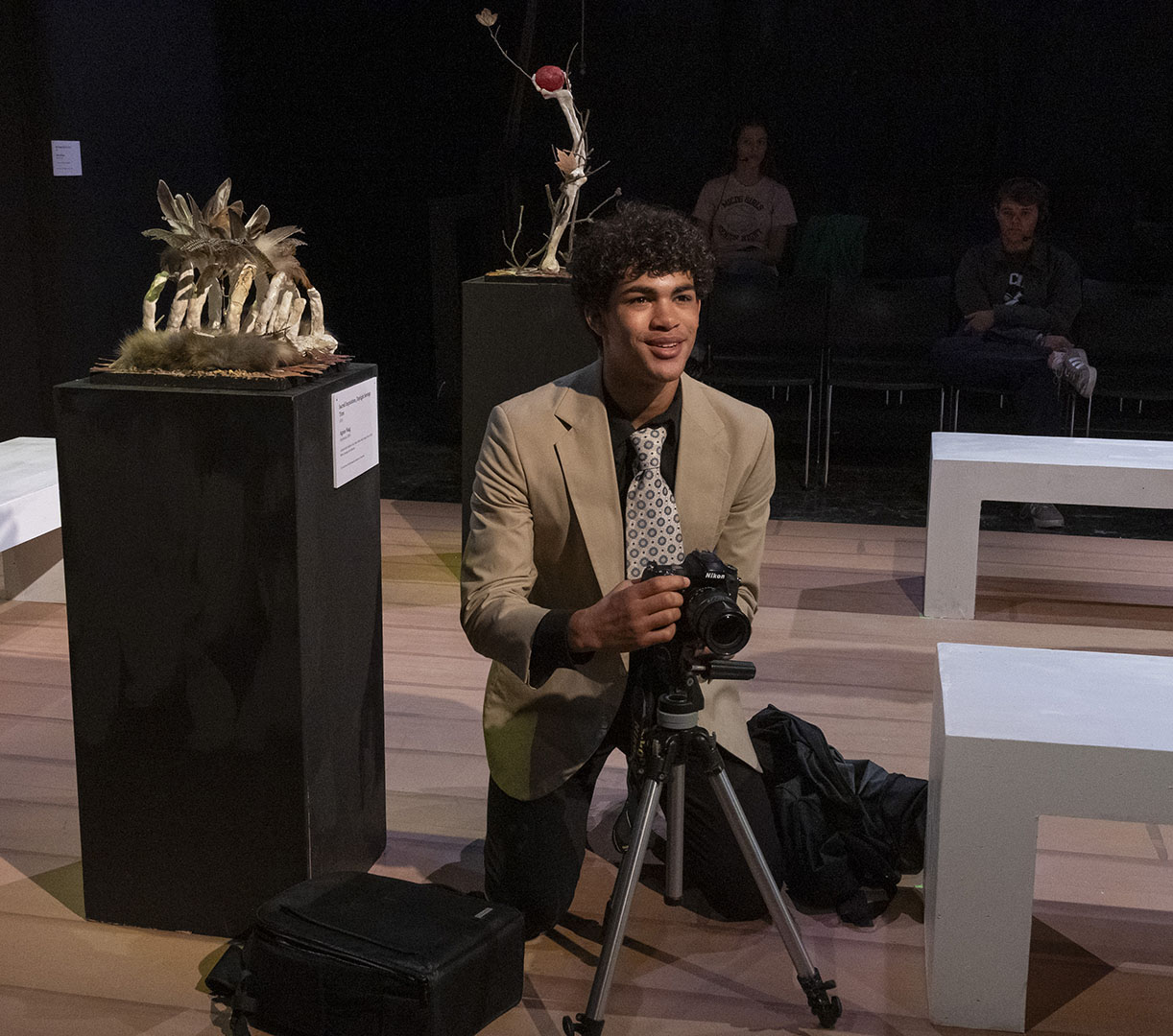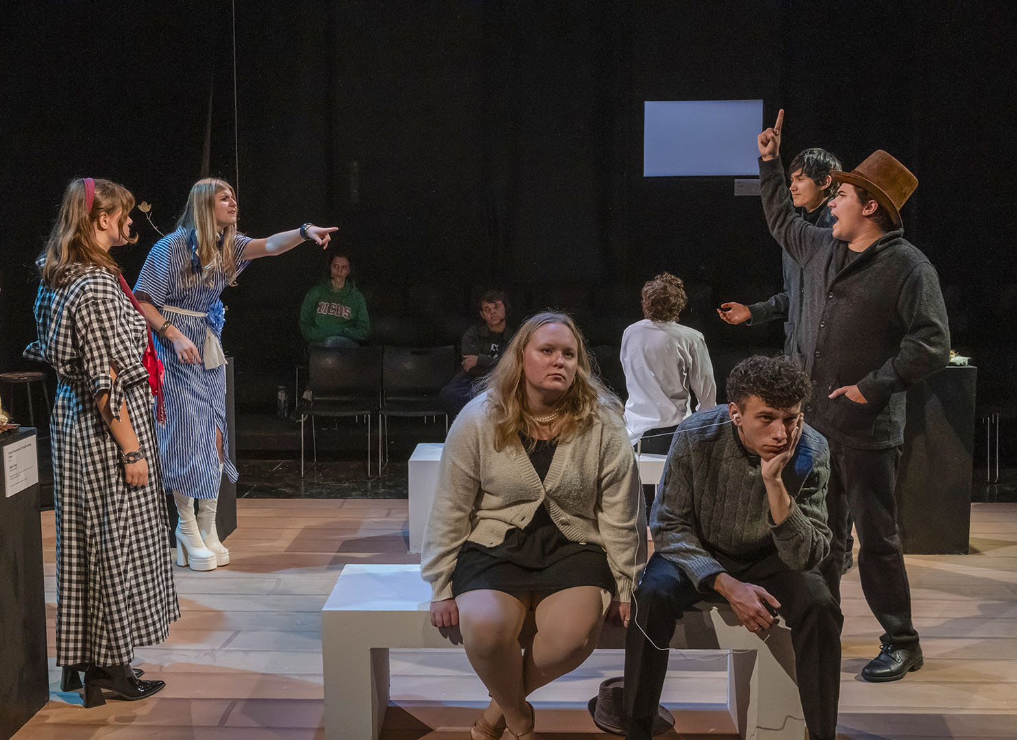The decision to stage MUSEUM was deliberate—and a little bit daring. The play’s structure offers a unique opportunity for large ensemble work, giving many students a chance to shine. It is an absurd, quick-change format that also challenges actors to switch gears rapidly, flexing a wide range of performance muscles.