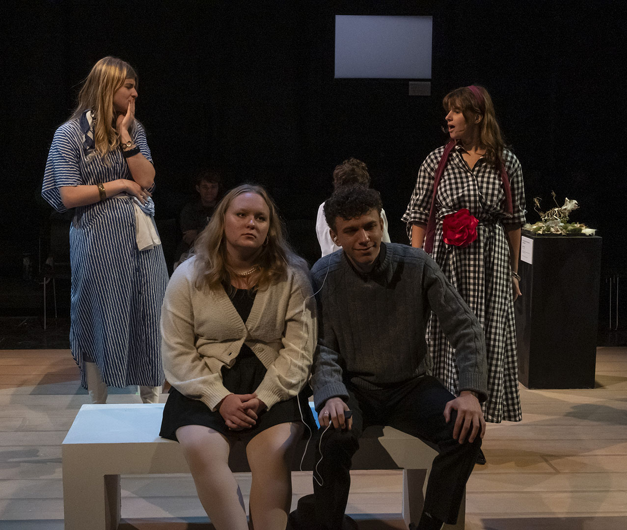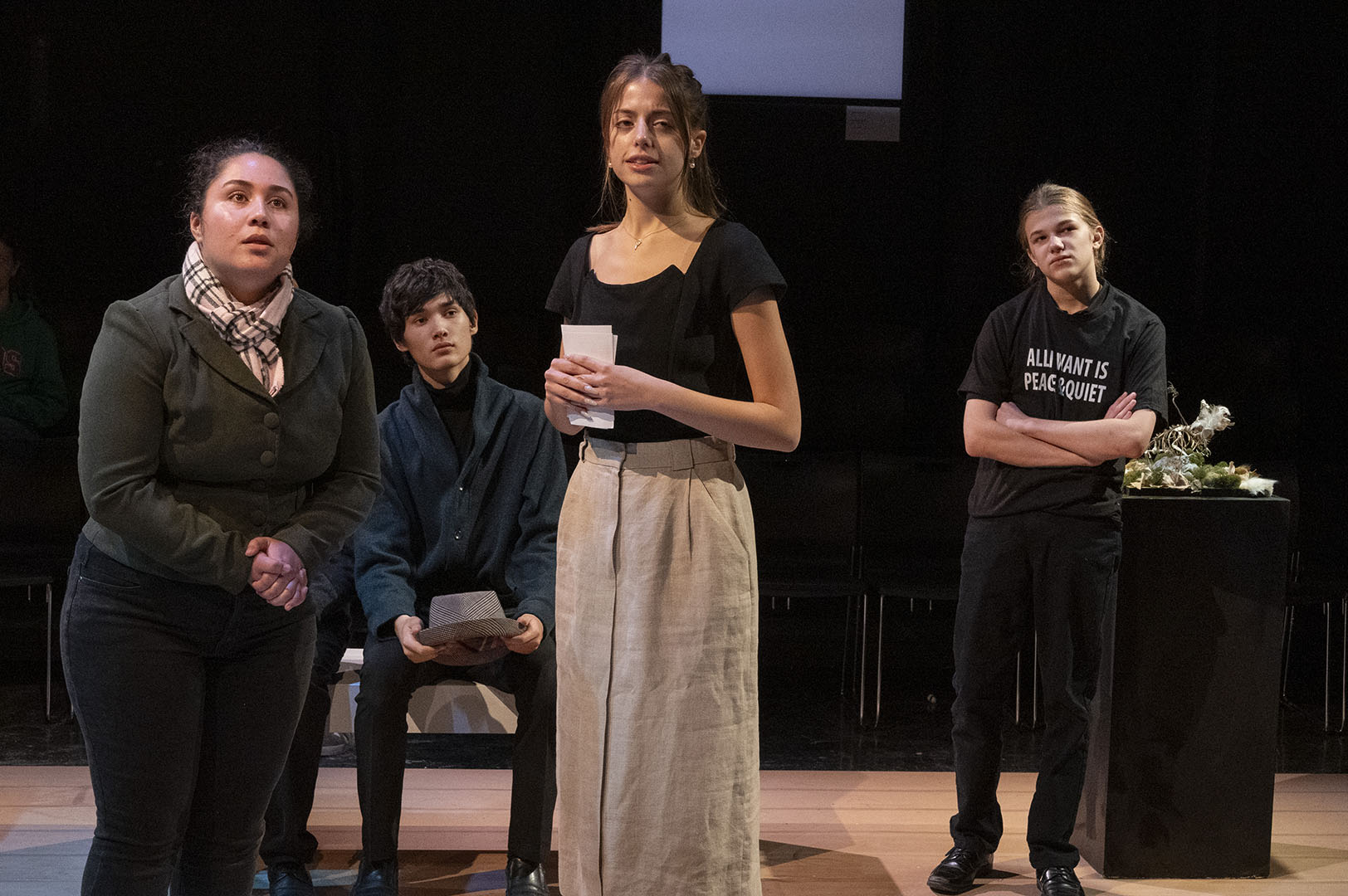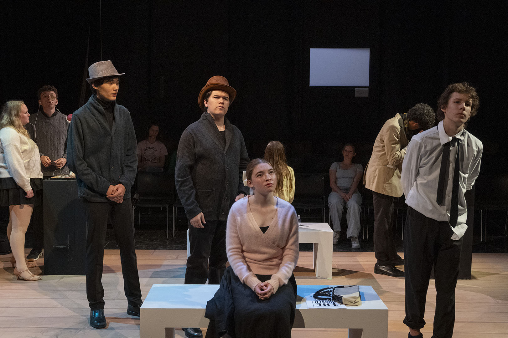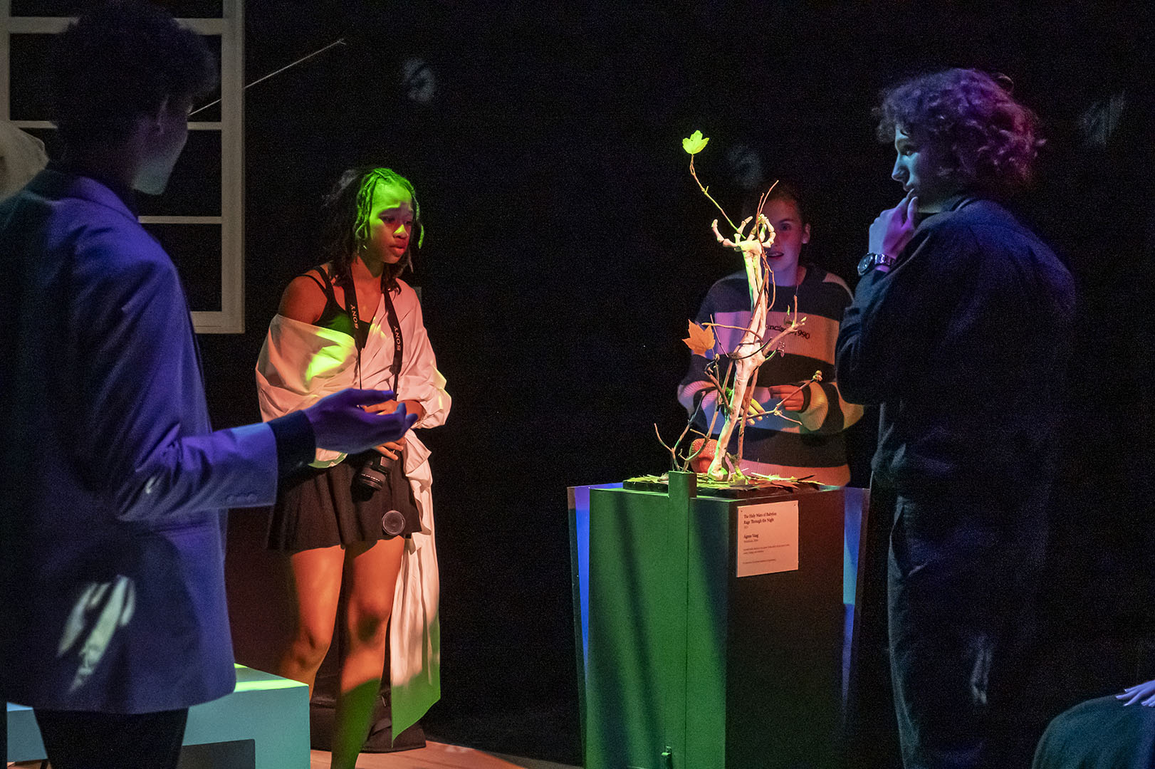 The decision to stage MUSEUM was deliberate—and a little bit daring. The play’s structure offers a unique opportunity for large ensemble work, giving many students a chance to shine. It is an absurd, quick-change format that also challenges actors to switch gears rapidly, flexing a wide range of performance muscles.