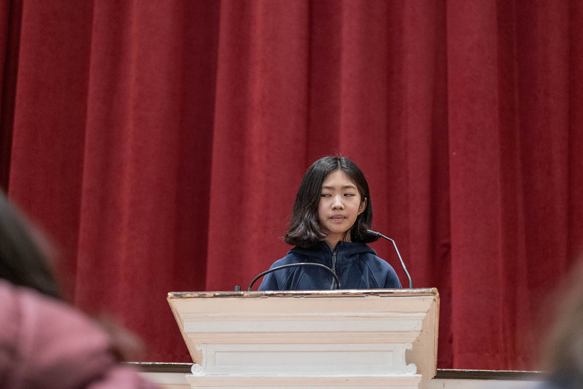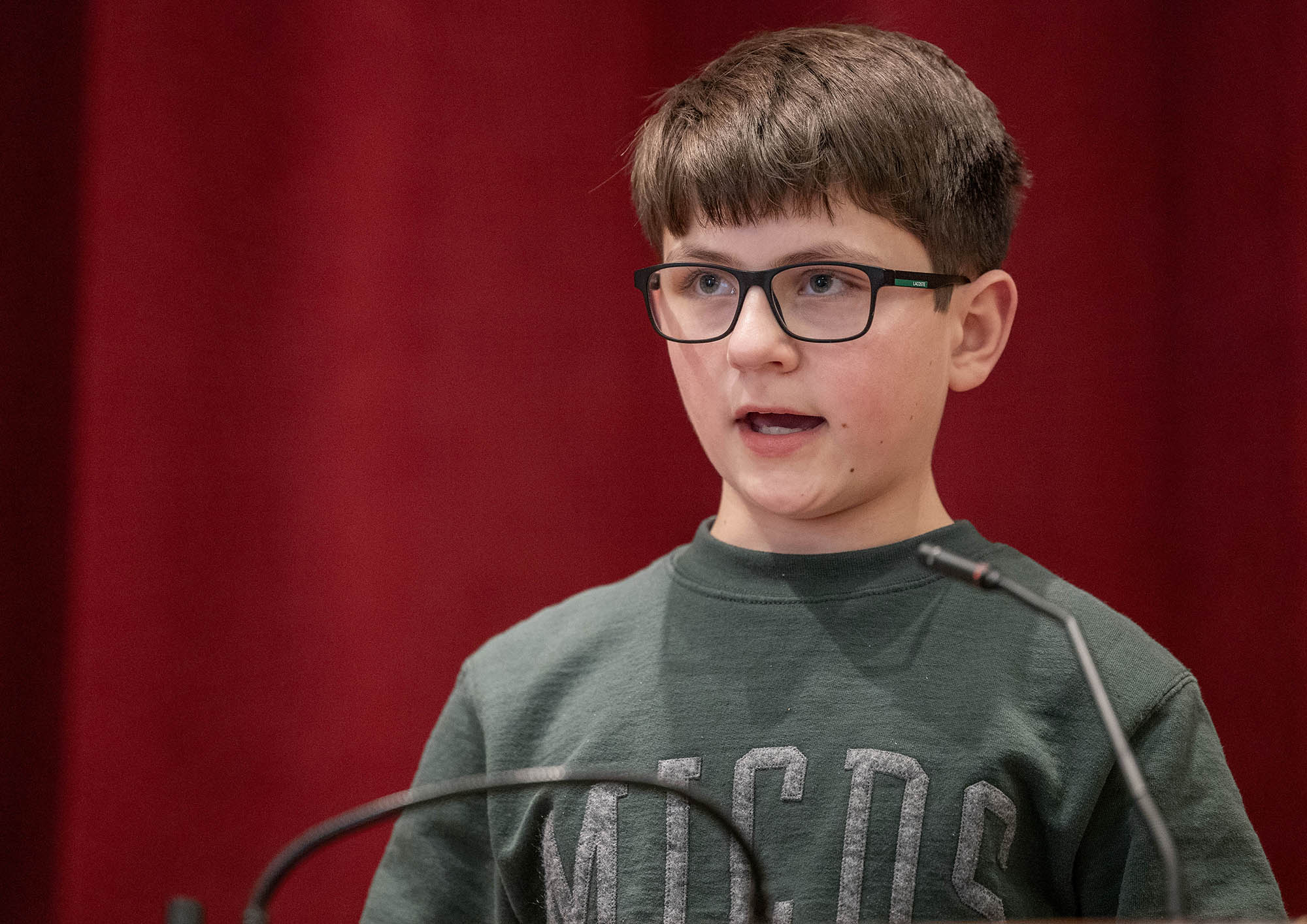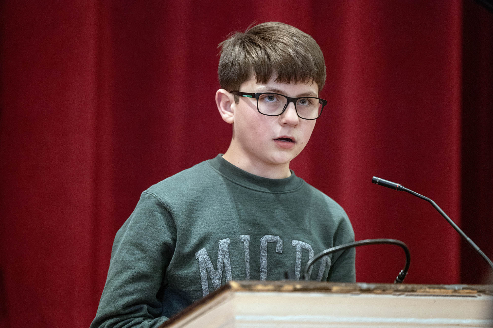 On Monday, February 2, our top spellers from the Middle School took to the podium in Mary Eliot Chapel to test out their spelling skills in front of an audience at the annual MICDS Spelling Bee. Spelling Bee is an after-school club at MICDS, and anyone in fifth through eighth grade is eligible to participate. This year’s bee included the following nine spellers: