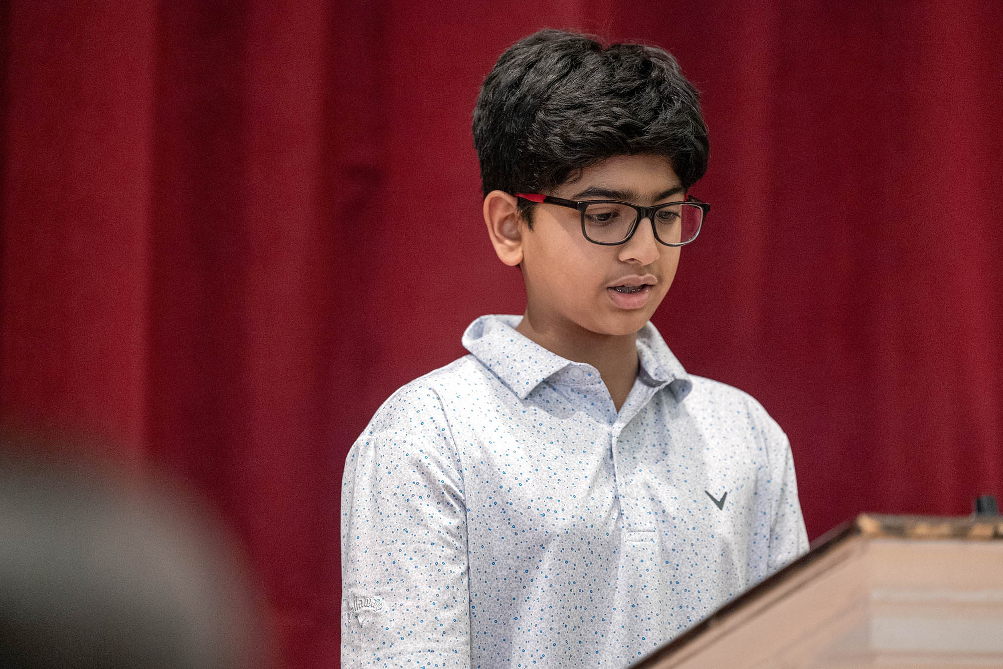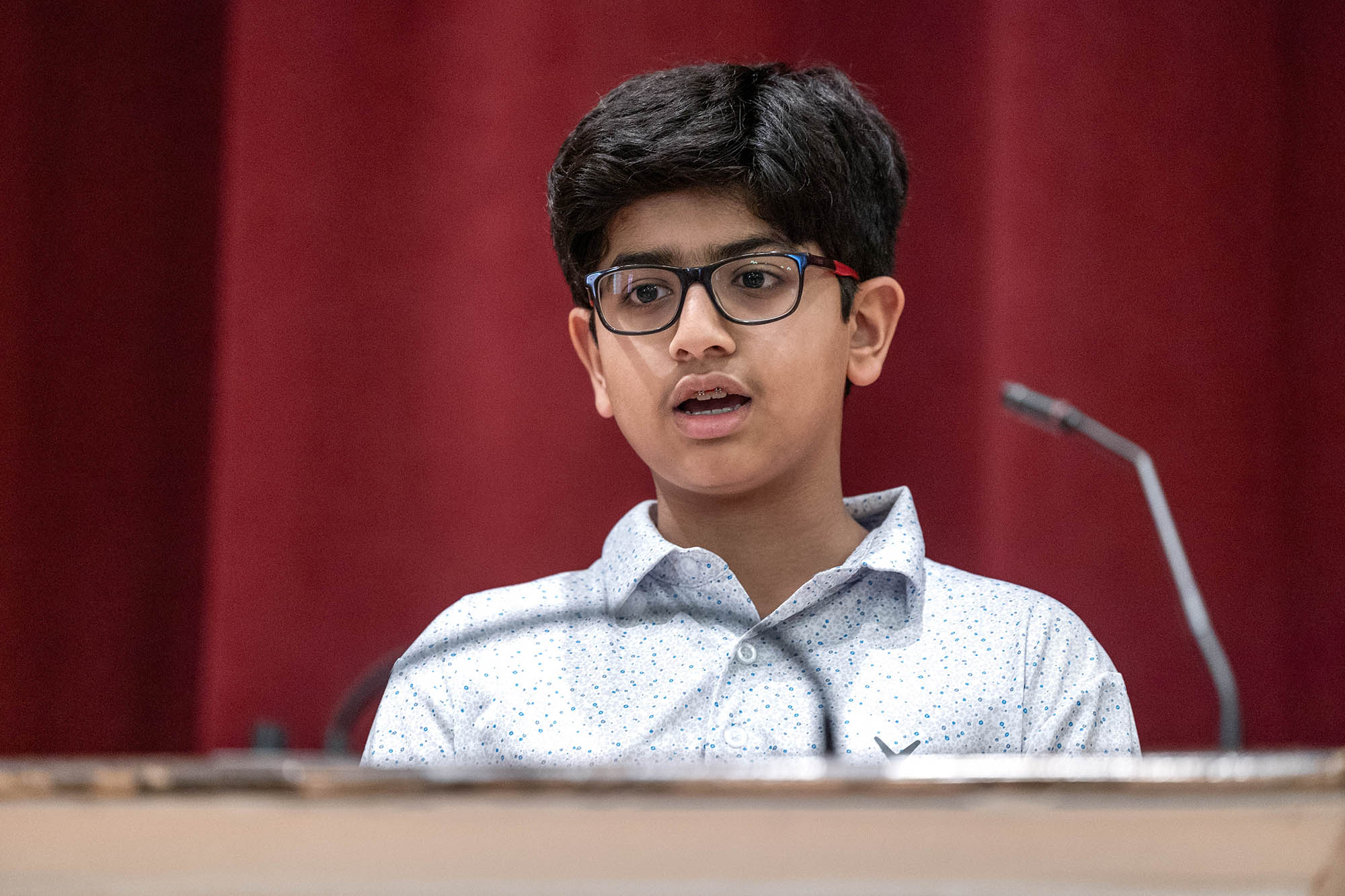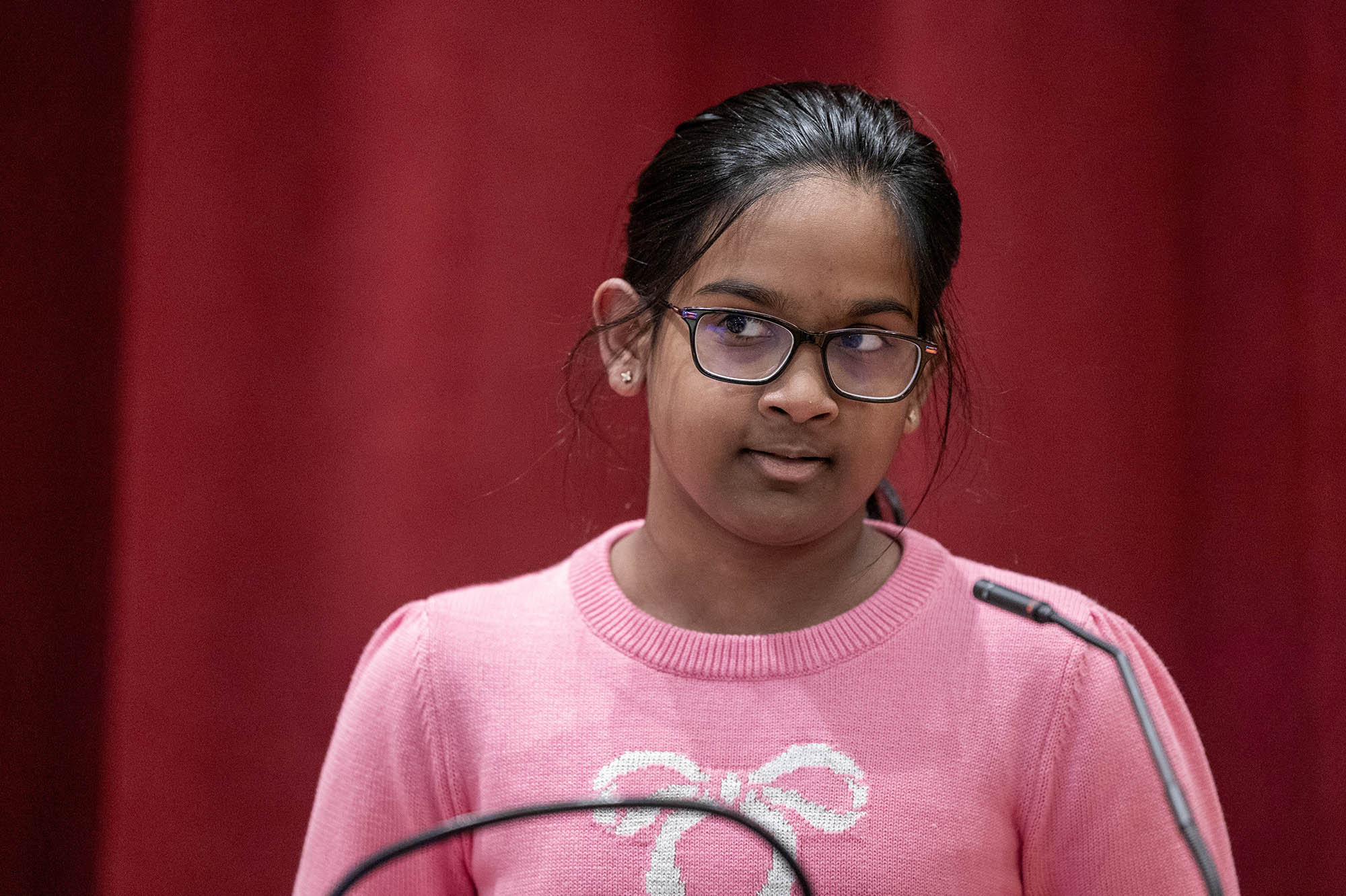 On Monday, February 2, our top spellers from the Middle School took to the podium in Mary Eliot Chapel to test out their spelling skills in front of an audience at the annual MICDS Spelling Bee. Spelling Bee is an after-school club at MICDS, and anyone in fifth through eighth grade is eligible to participate. This year’s bee included the following nine spellers: