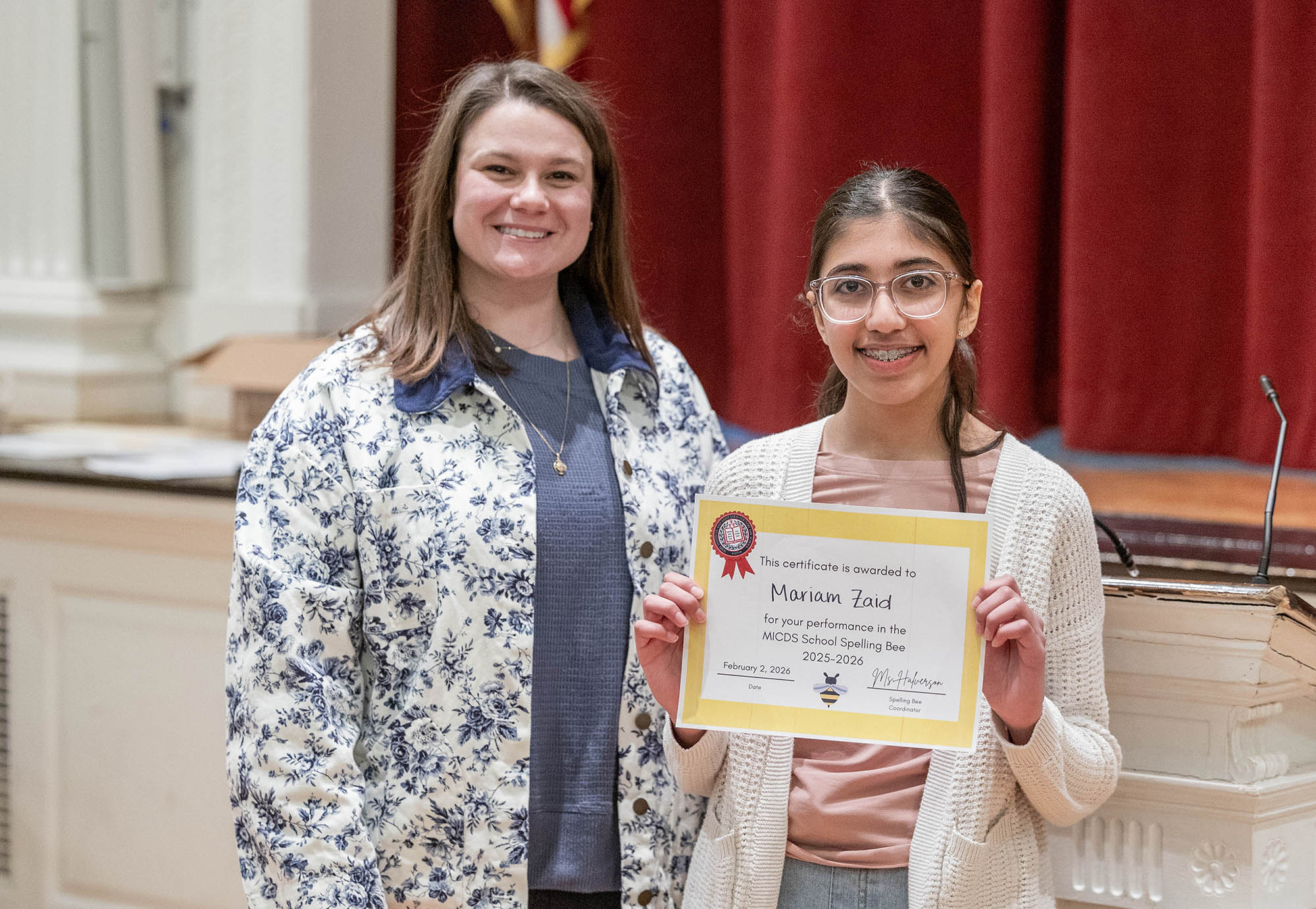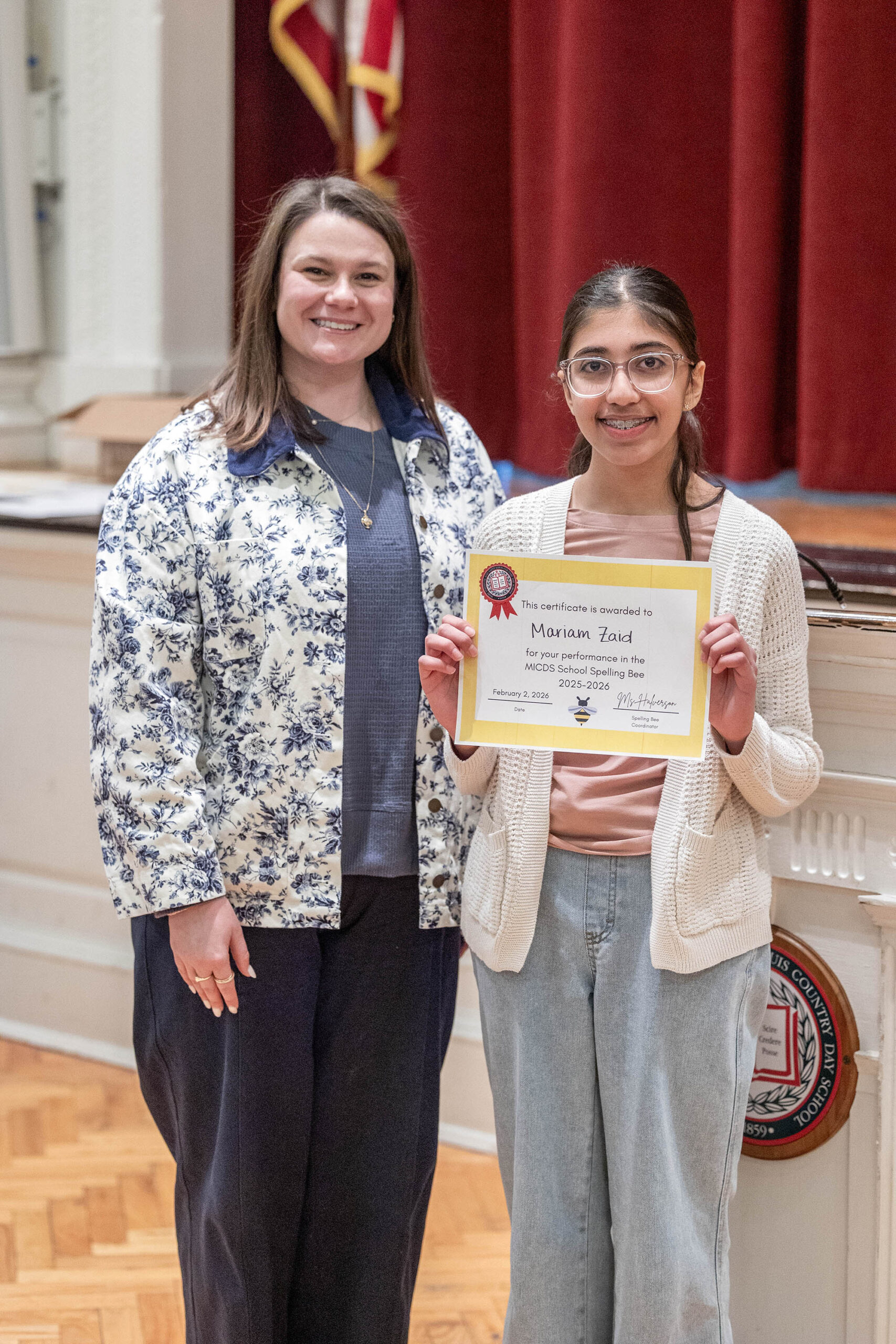 Next up for Mariam will be participating in the regional bee qualifier on February 28, 2026 at St. Louis University. If she attains eligibility, she’ll be offered a spot to participate in the regional Spelling Bee in March. Go Mariam! MICDS is cheering you on!