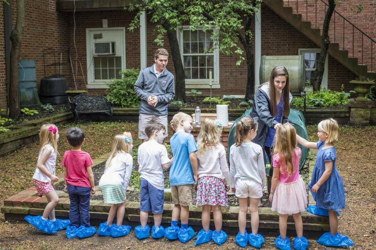 Beasley science students got a special visit from AP Chemistry students from the upper school to learn important lessons on how the world around them works. Upper School students Jordan Rothrock ’19 and Jennifer Goldberg ’19 had students model solid and liquid states of matter through movement by asking lower schoolers to walk in slow motion and close together to imitate a solid. They were then asked to walk much faster and further apart to imitate a liquid. From there, the mentors wowed their young pupils by causing a reaction between baking soda and vinegar that created carbon dioxide gas to fill a balloon.