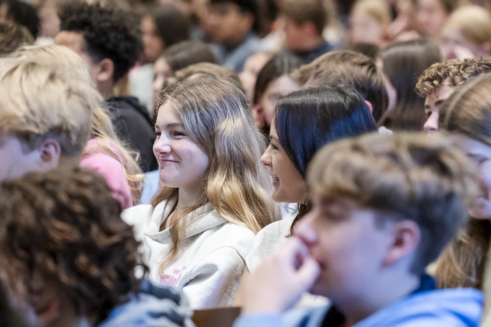 Craft started by asking how many students like to draw, write, and read. He explained that when he was young, he would have raised both hands if asked if he liked drawing and one hand if he liked writing. “Reading? I sat on both my hands,” he said. “I hated reading books. How did someone who hated reading as much as I did become an author? I have no idea!”
