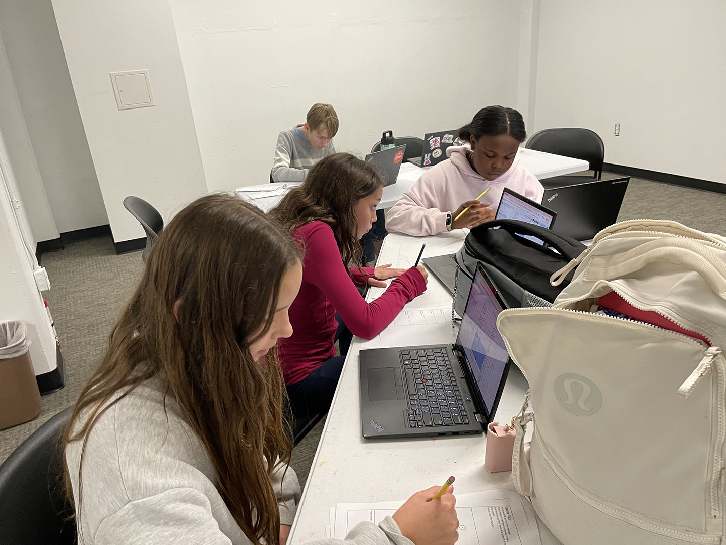 Mein was asked how the technical design program for the winter term shows improved and expanded over the years, and she answered, “In the past, there had been an Upper School Seldom Scene class where they helped do some things for the show ,but as the Winter Term musical and our technical design class has gotten bigger, I felt there was a need for something like this. The morning and afternoon class are serving different purposes for the show. The afternoon course is meant to build out and create the production crew, but they are also working to fill in the gaps of the morning class.”