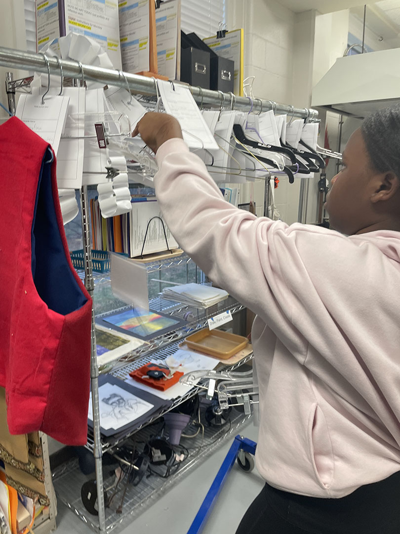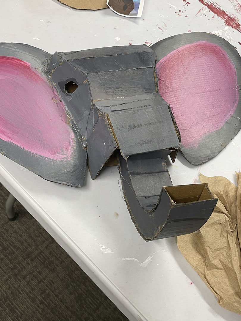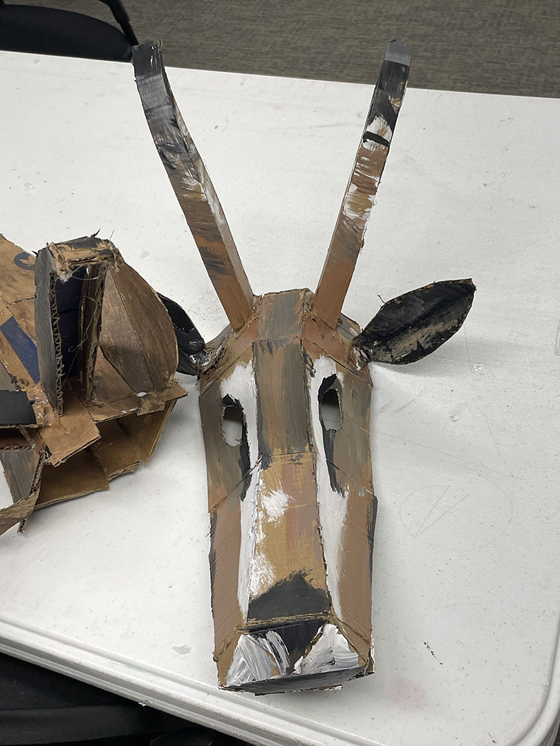 In this class, students used their creativity skills to help the show come to life. The students have been helping out the costume crew with organizing their costumes by making labels for the hangers, which is super important so the show can run smoothly and everything can stay organized. They have also been building animal ‘heads’ for the actors. They are also responsible for making the makeup designs, lights, sound, and props for the play.