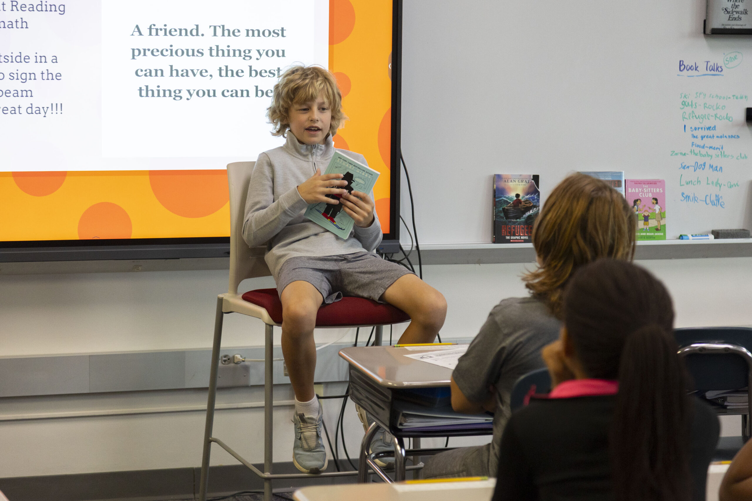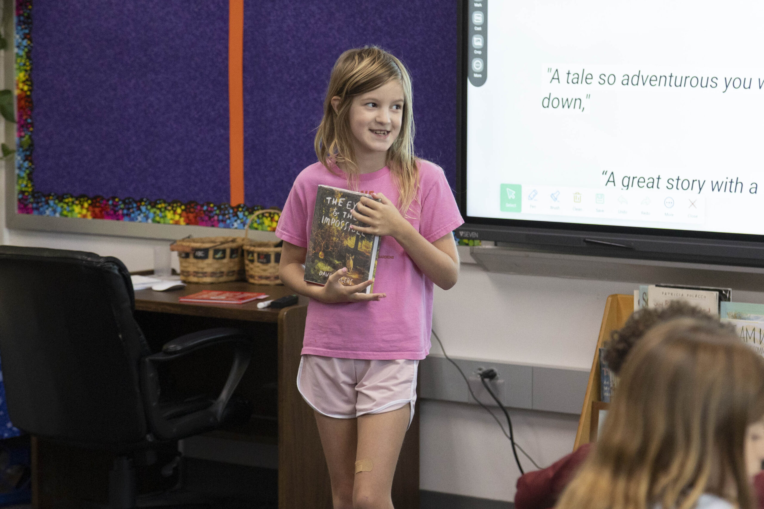 A favorite moment of the day that occurs frequently this year in some of our fourth-grade classrooms is when Allison Antolik and Donna Waters, Fourth-Grade Homeroom Teachers, invite students to do Book Talks. What are Book Talks? These are often impromptu, mini presentations where a student gets up in front of the class with a book they’ve recently read. They share about the book and tell their fellow classmates why they should read it too.