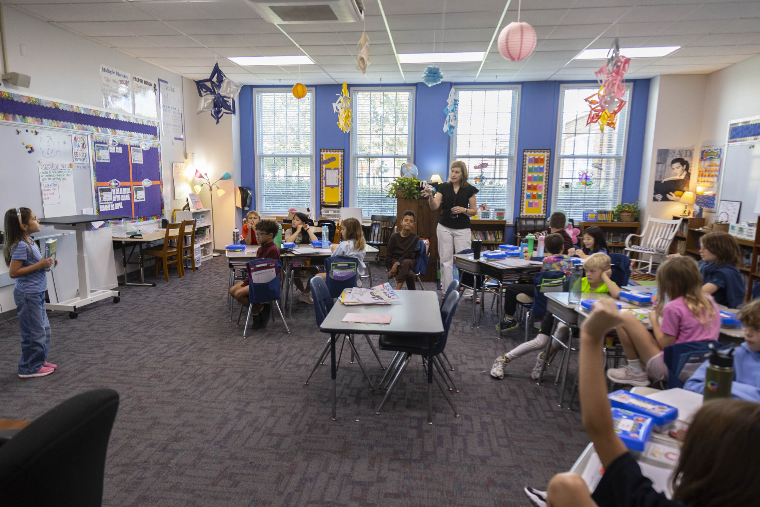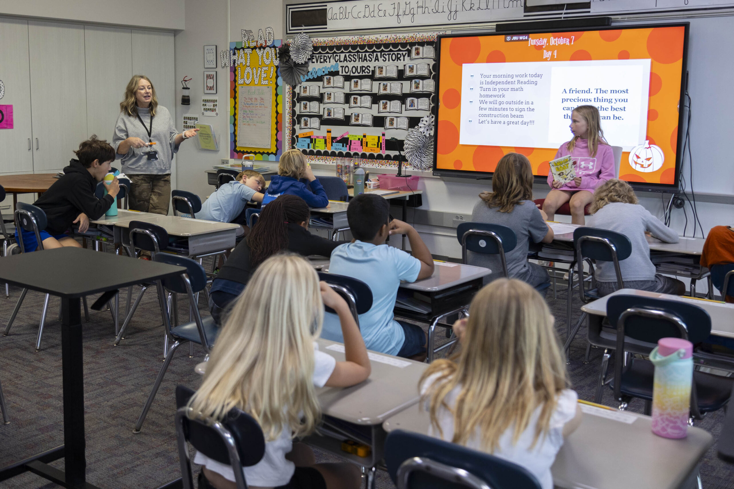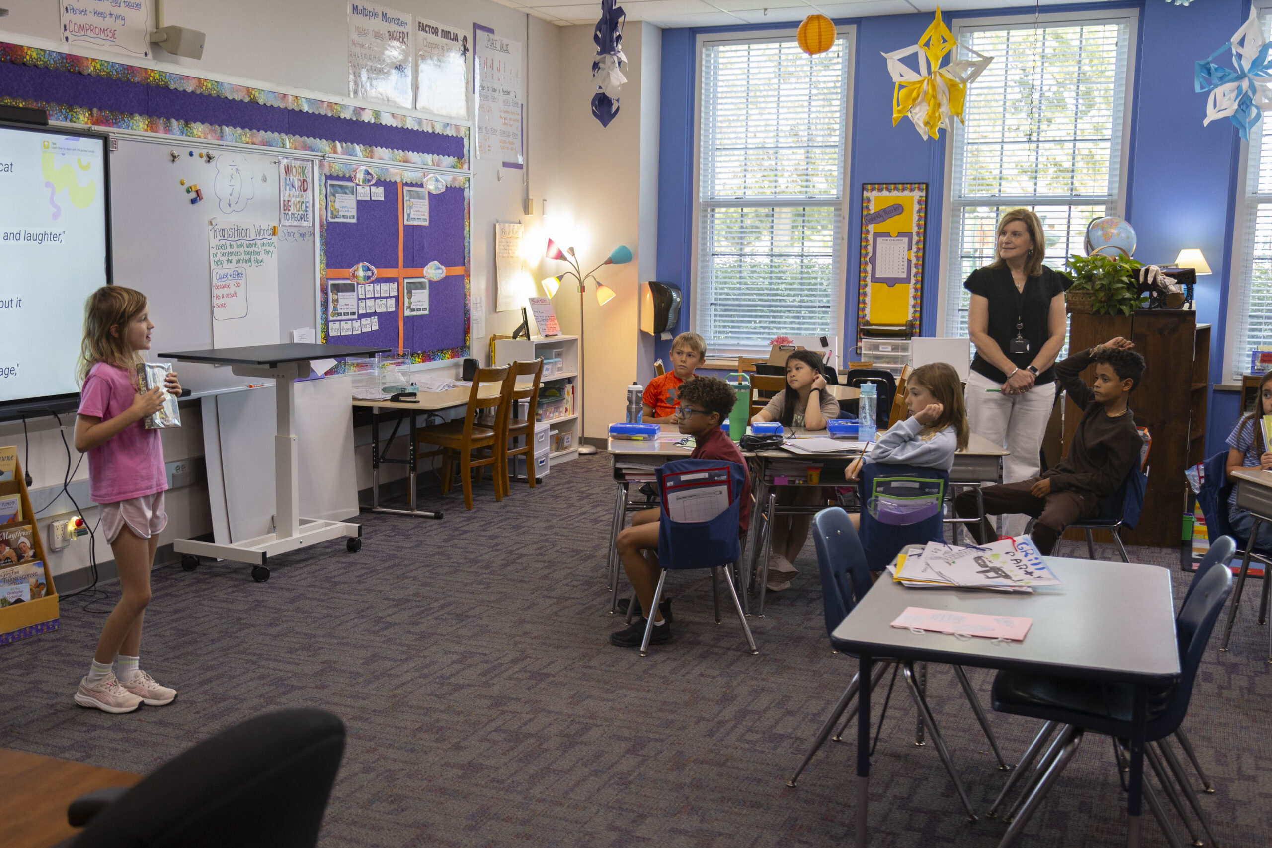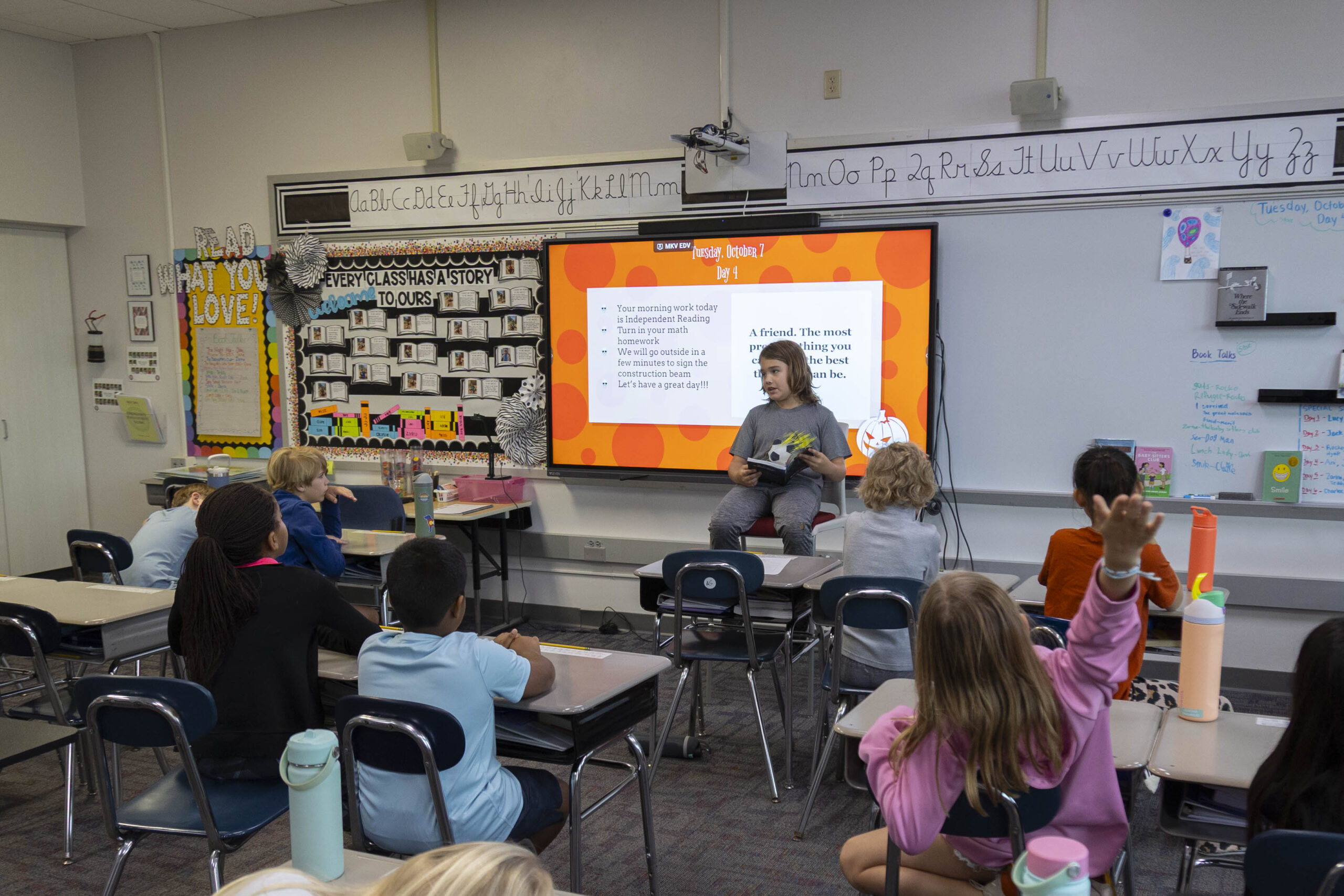 Beyond new genres, students practice presentation skills and persuasive speech while getting comfortable speaking in front of an audience. Additionally, they work on listening, critical thinking, and analytical skills as they answer questions from the audience on the fly about which book in a series they like most or how the main character compares to another character. The Book Talks also fuel a genuine interest in reading. “I had several parents remark at Fall Conferences that their child seems so much more excited about reading this year and was actually choosing to read at home,” adds Ms. Waters.