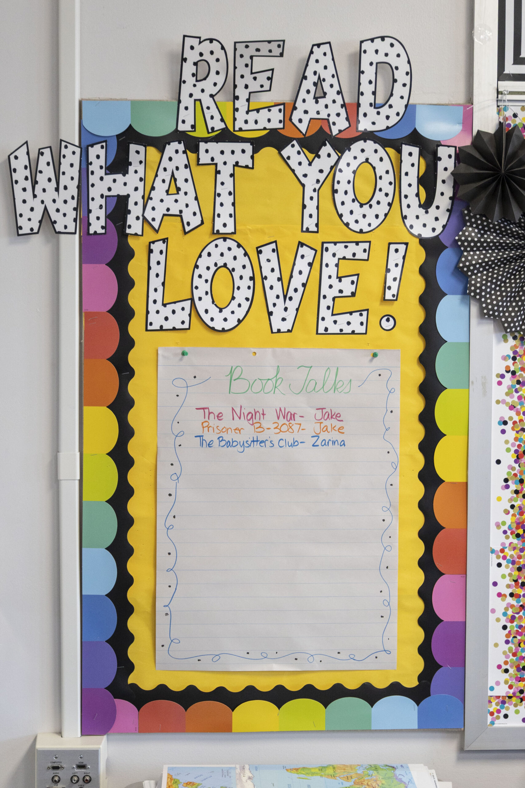 A poster in Ms. Waters’ class outlines how to do a Book Talk: