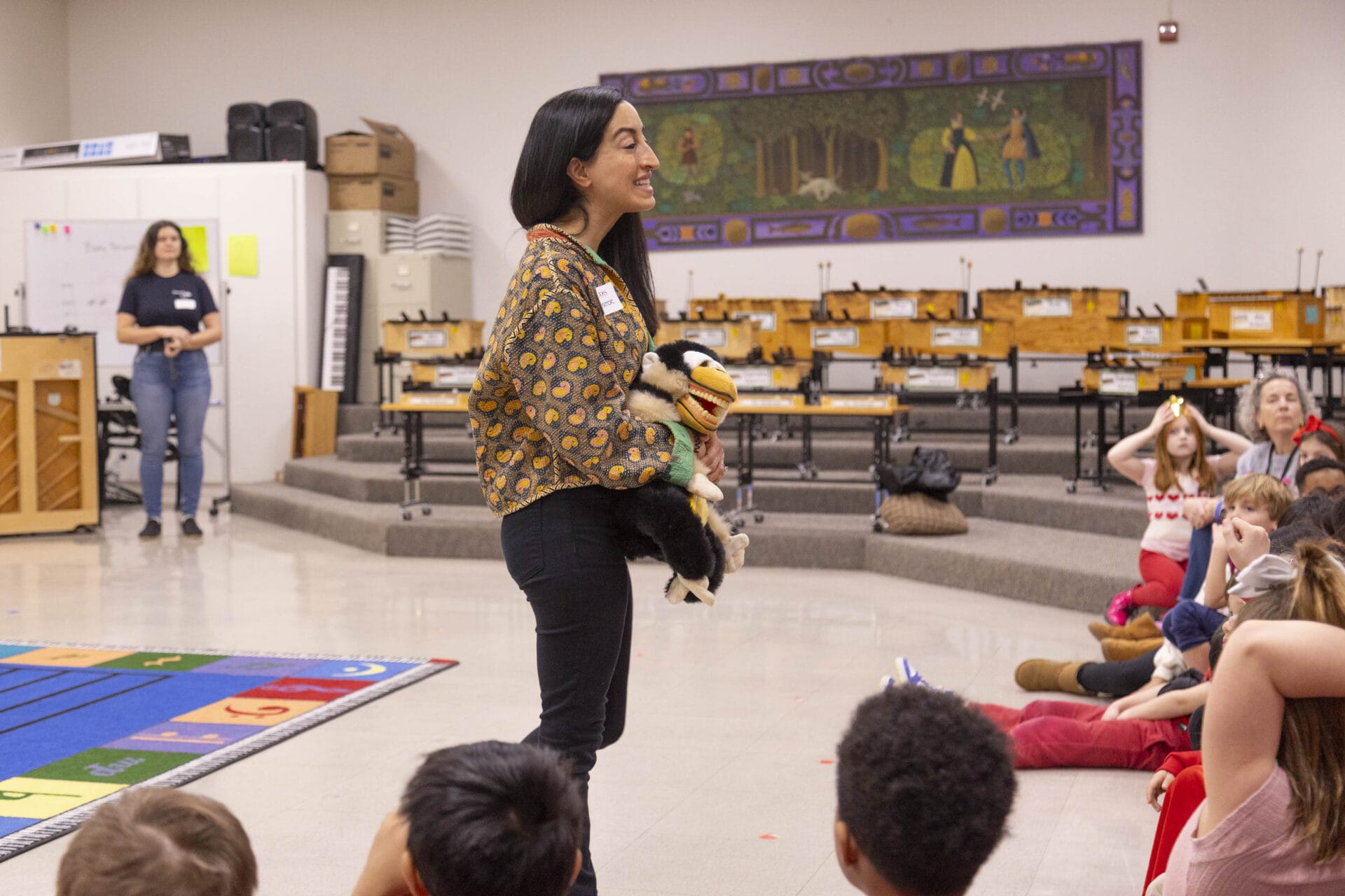 It’s not every day that you ride a roller-coaster and witness a guest chimpanzee brushing his teeth in one assembly! On Friday, February 14, Moshiri Orthodontics gave a special presentation to our first and second-grade classes at MICDS. “First and second-grade students have learned about the human body in their Core Knowledge Language Arts units, and we thought this talk would be a nice connection,” explains Laura Pupillo, Lower School Science Teacher. “We got to learn about teeth and how dental hygiene impacts our health from a true expert, thanks to Dr. Shuka, her team, and her passionate and playful presentation.”