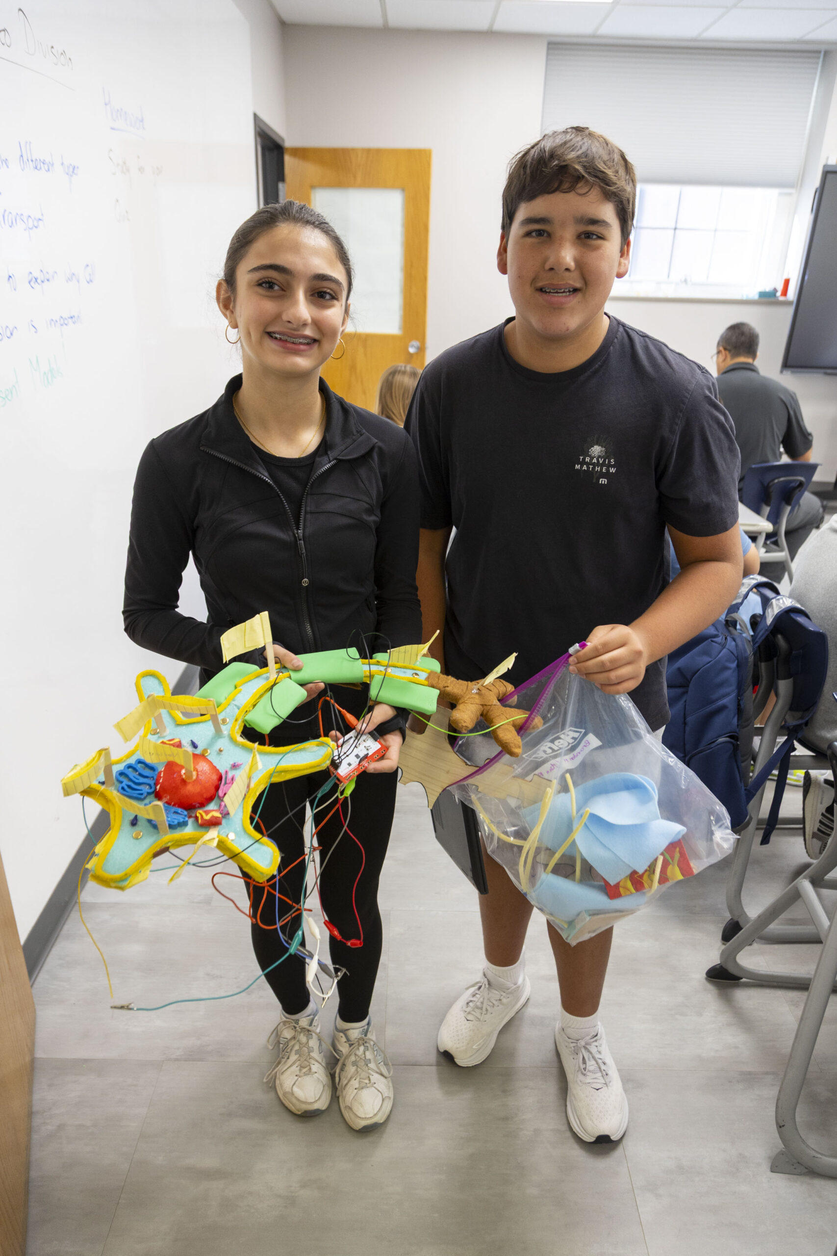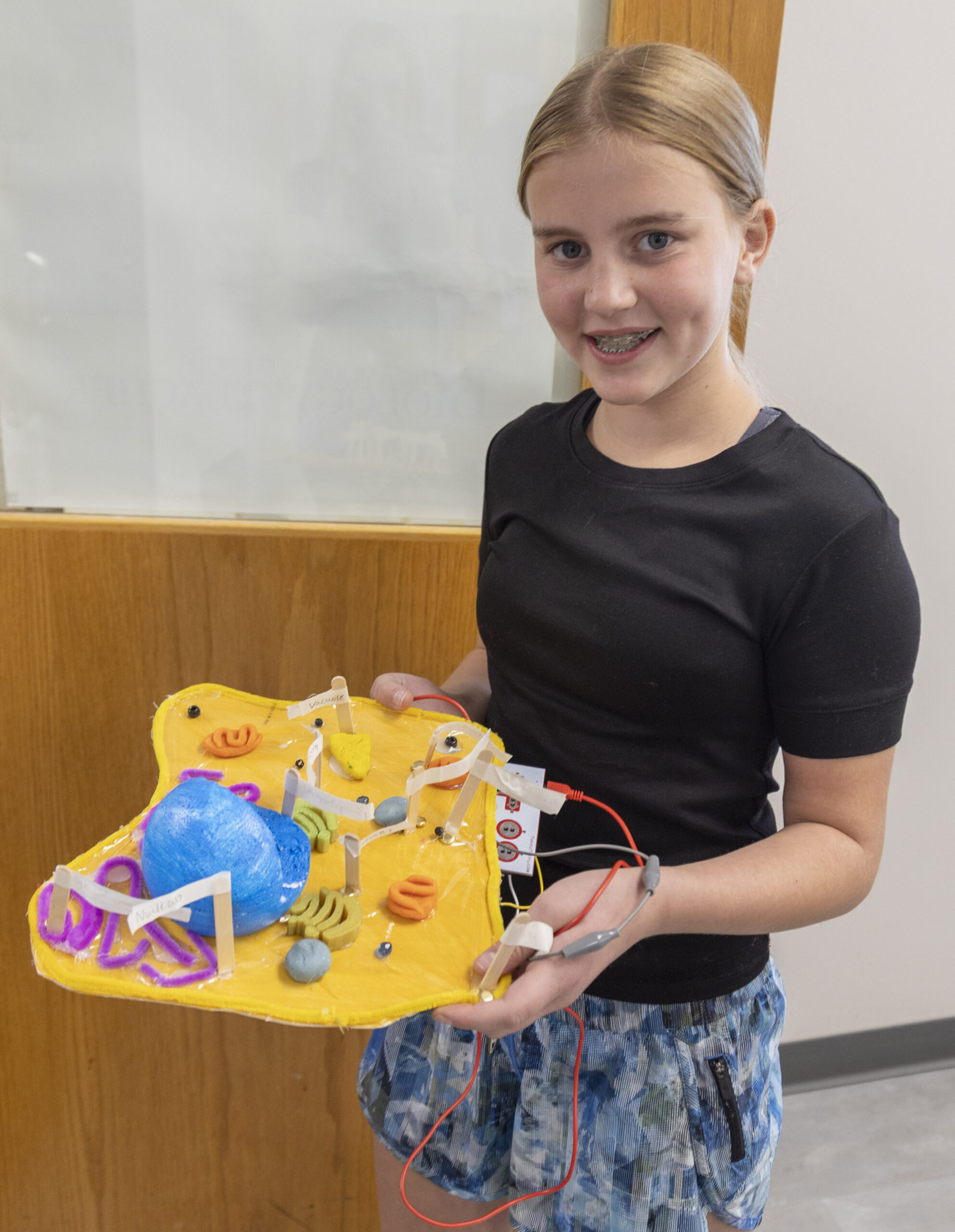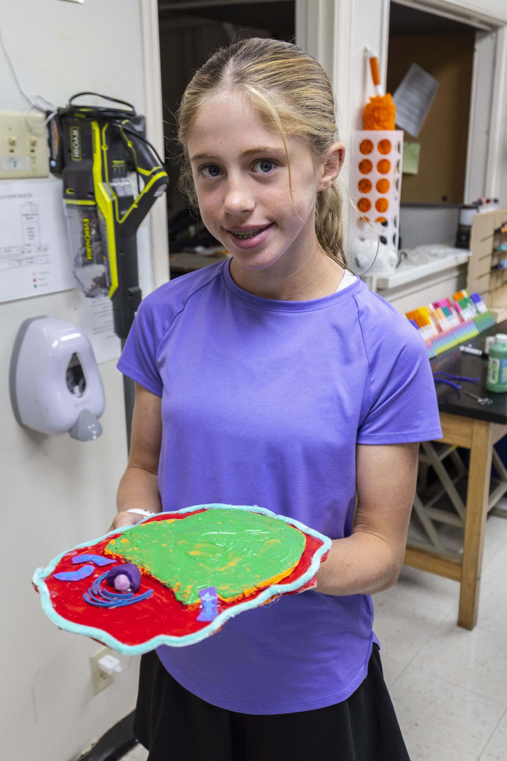 Over the past several weeks, seventh graders were challenged to design and create a unique, interactive 3D model of a cell during their unit on cells and cellular activity. First, they researched organelles, the specialized structures inside cells that perform specific jobs. Organelles serve various functions to help keep the cell alive, much like organs, such as the heart or liver, serve specific functions to keep an organism alive.