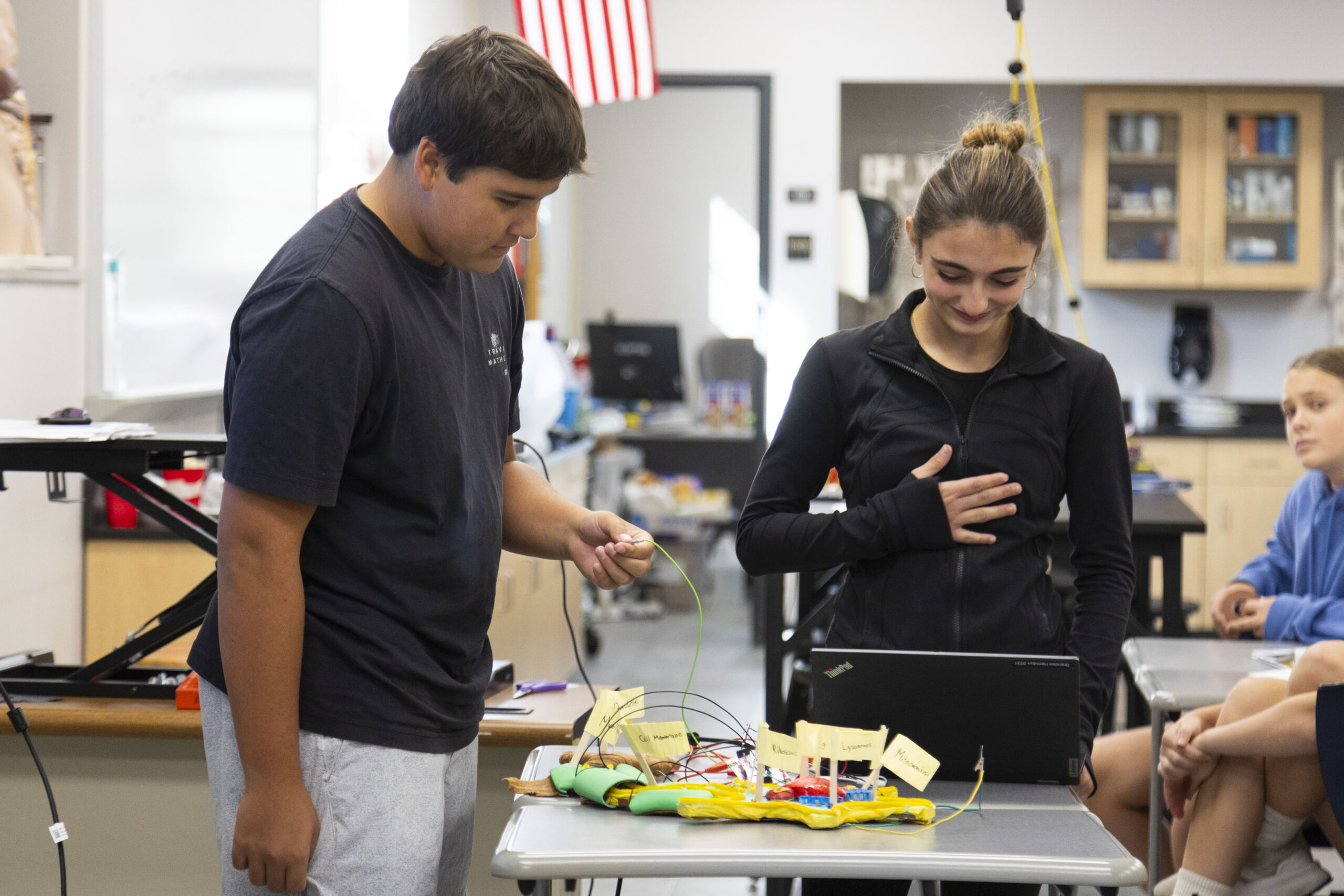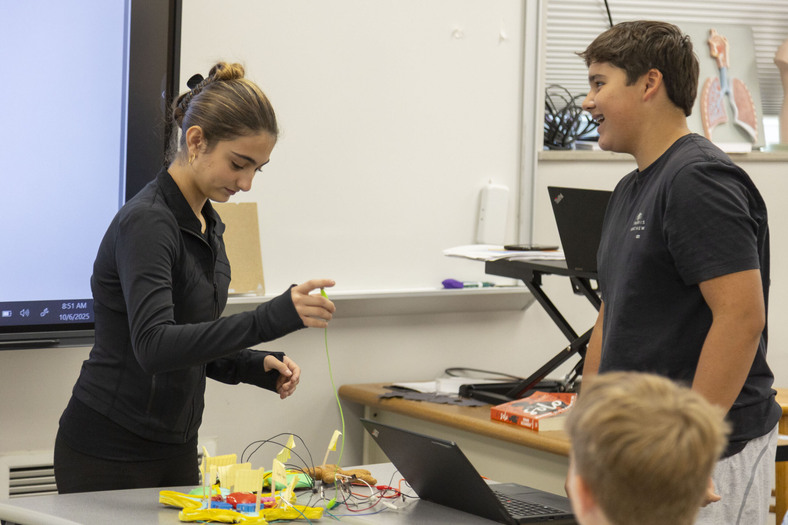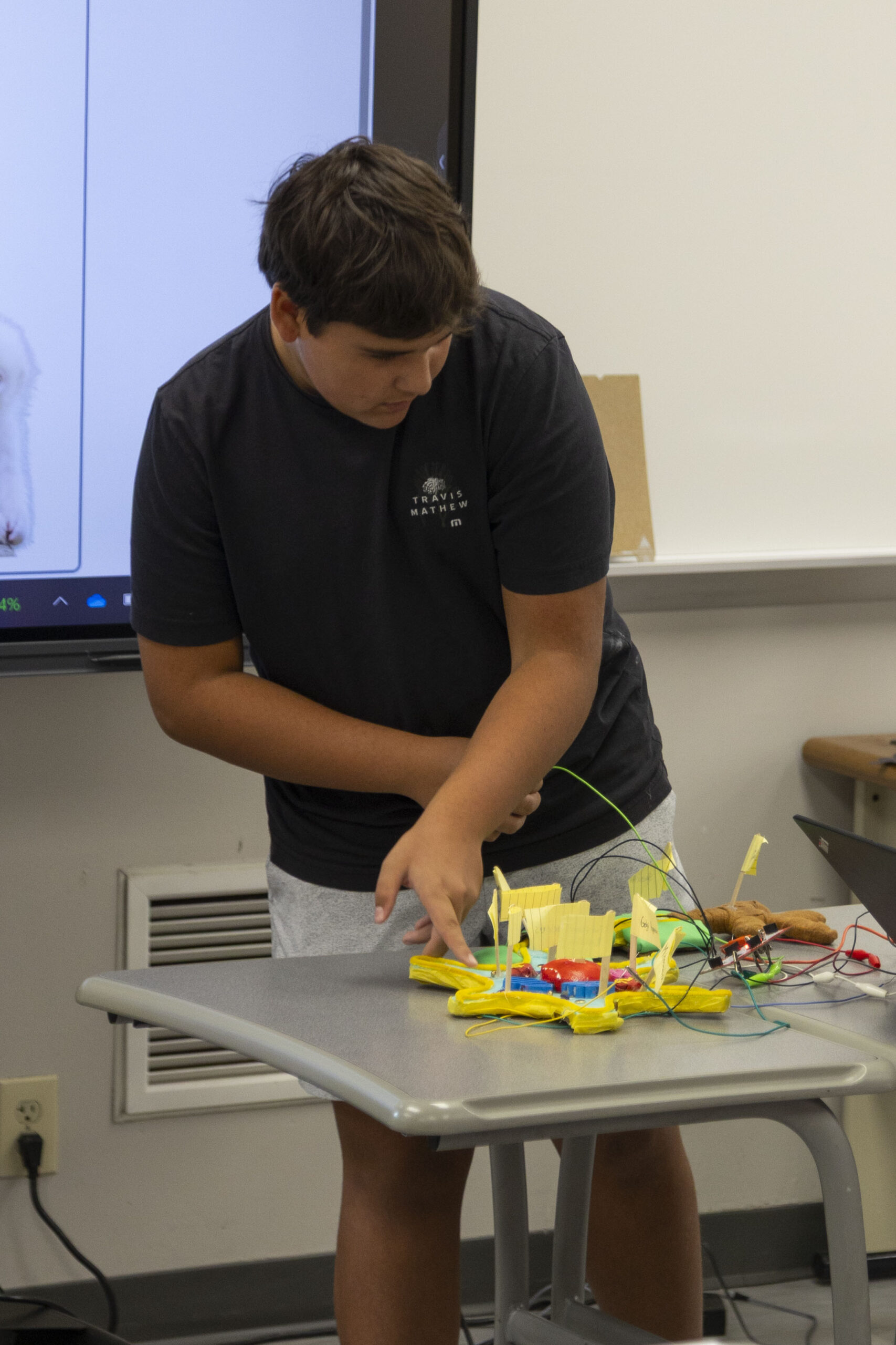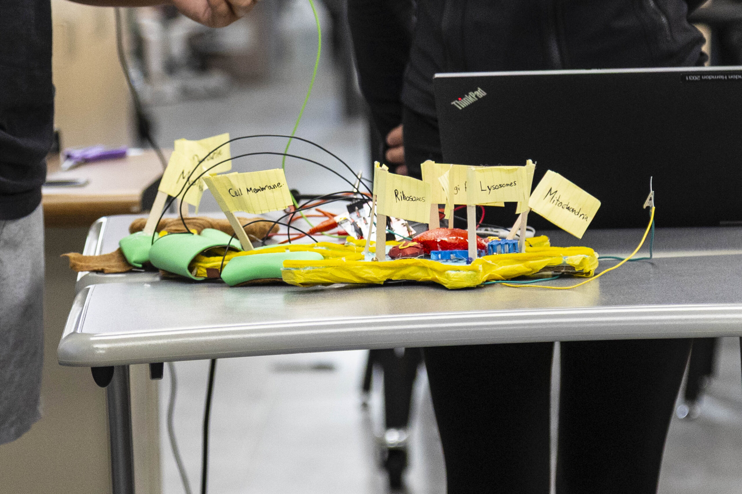 “I liked how this project was all hands-on and you could be creative in your own style and way. It was also nice to be able to choose whatever cell you wanted,” Mina Arar ’31 reflected. “You didn’t have to do one type of cell or only pick between two cells; you had an option, and you could make it however you wished. I picked a nerve cell, and my partner and I decided that he would work on the computer programming while I worked on the crafting component.”