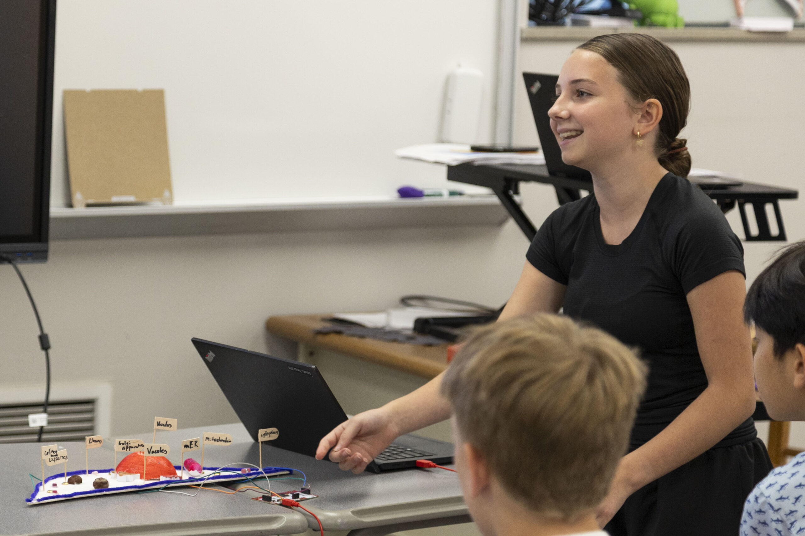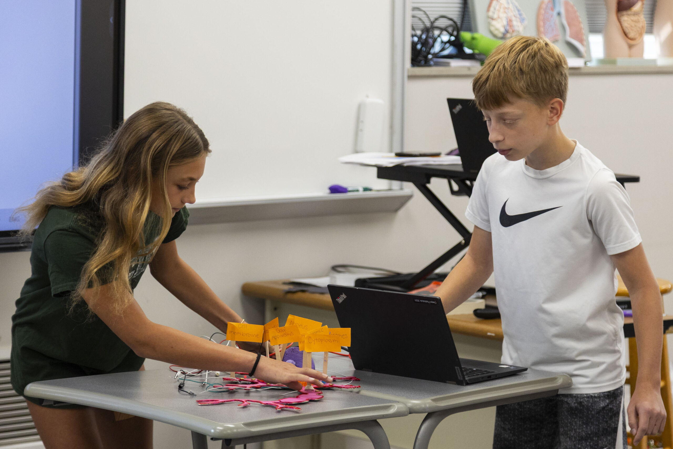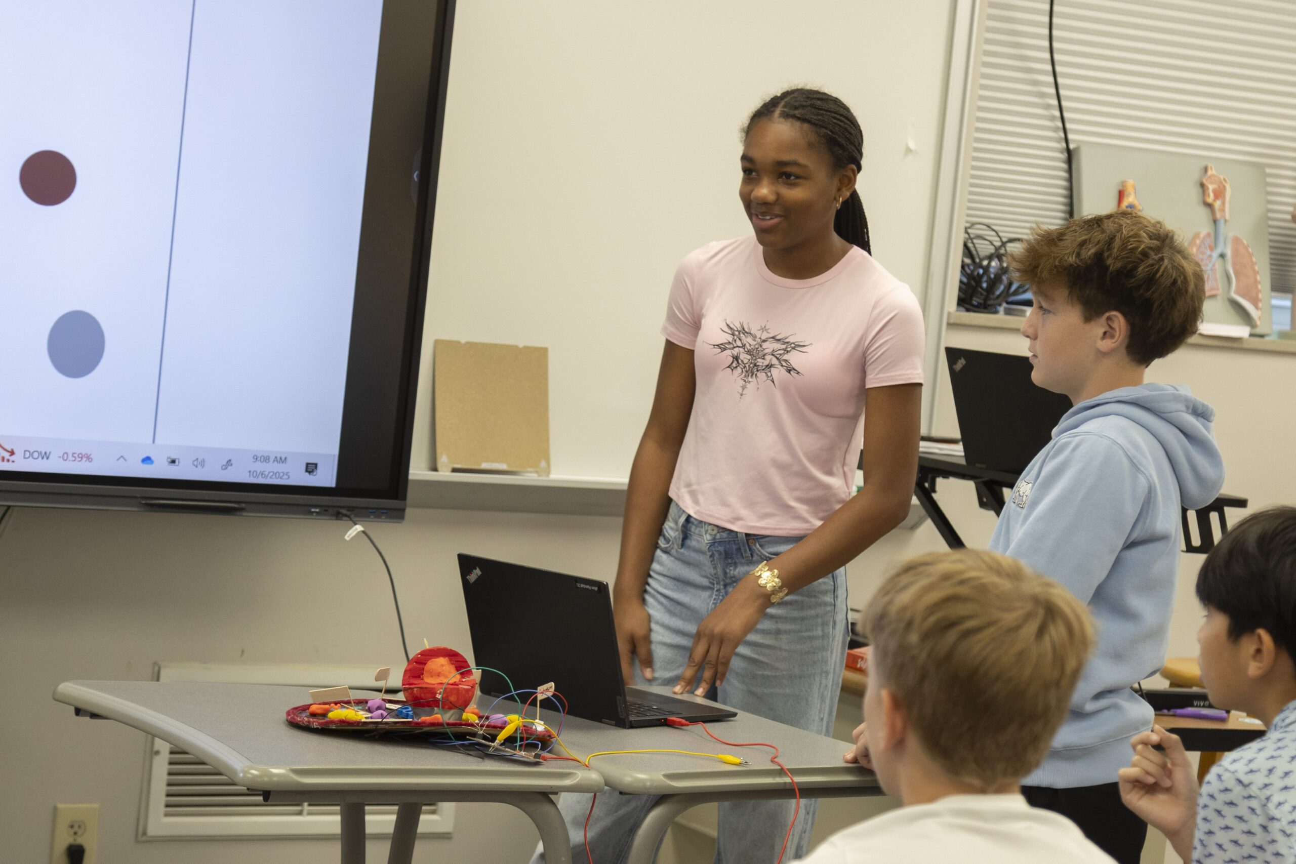 “I liked how this project was all hands-on and you could be creative in your own style and way. It was also nice to be able to choose whatever cell you wanted,” Mina Arar ’31 reflected. “You didn’t have to do one type of cell or only pick between two cells; you had an option, and you could make it however you wished. I picked a nerve cell, and my partner and I decided that he would work on the computer programming while I worked on the crafting component.”