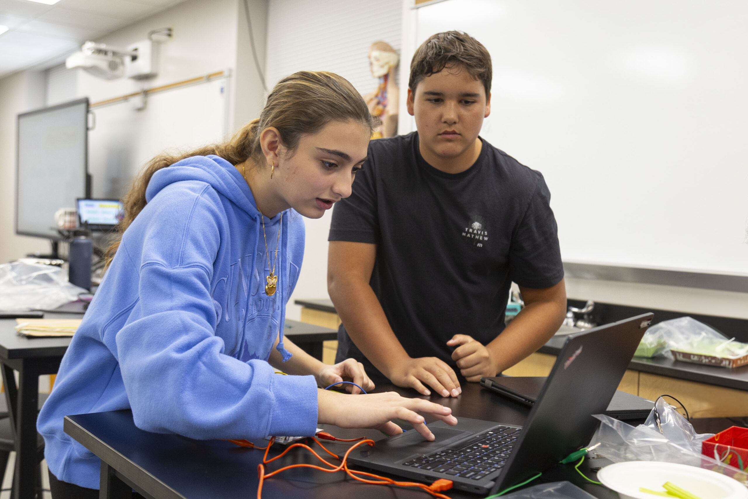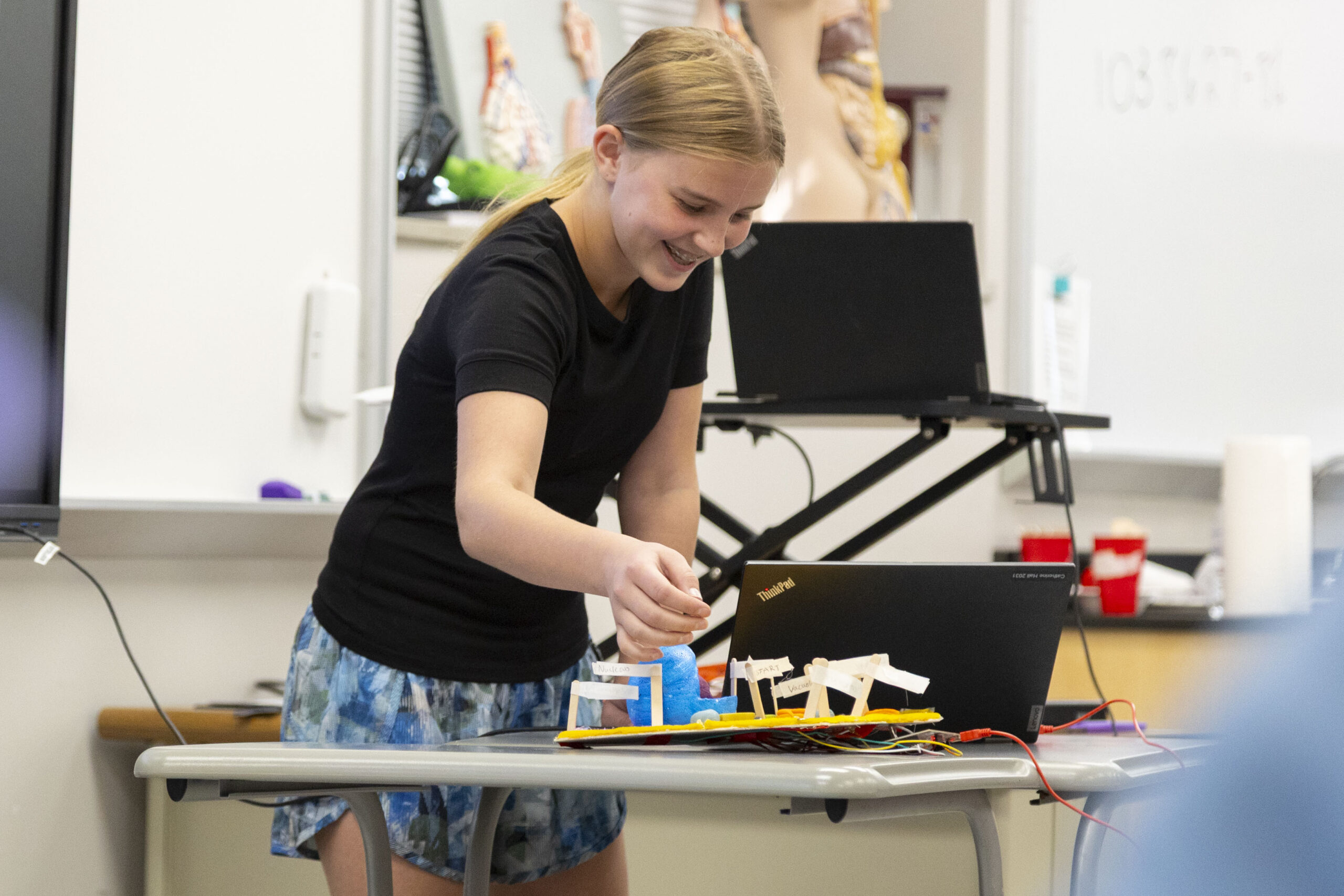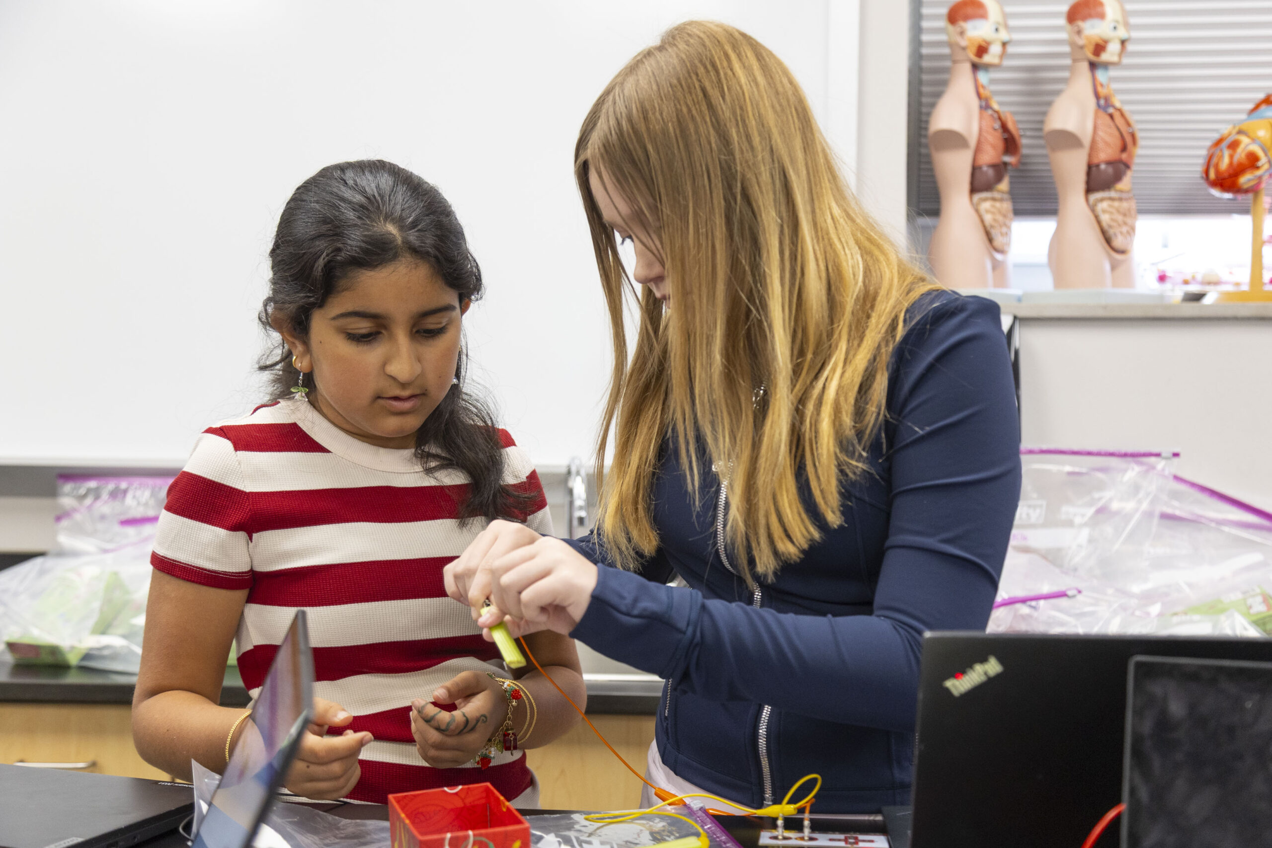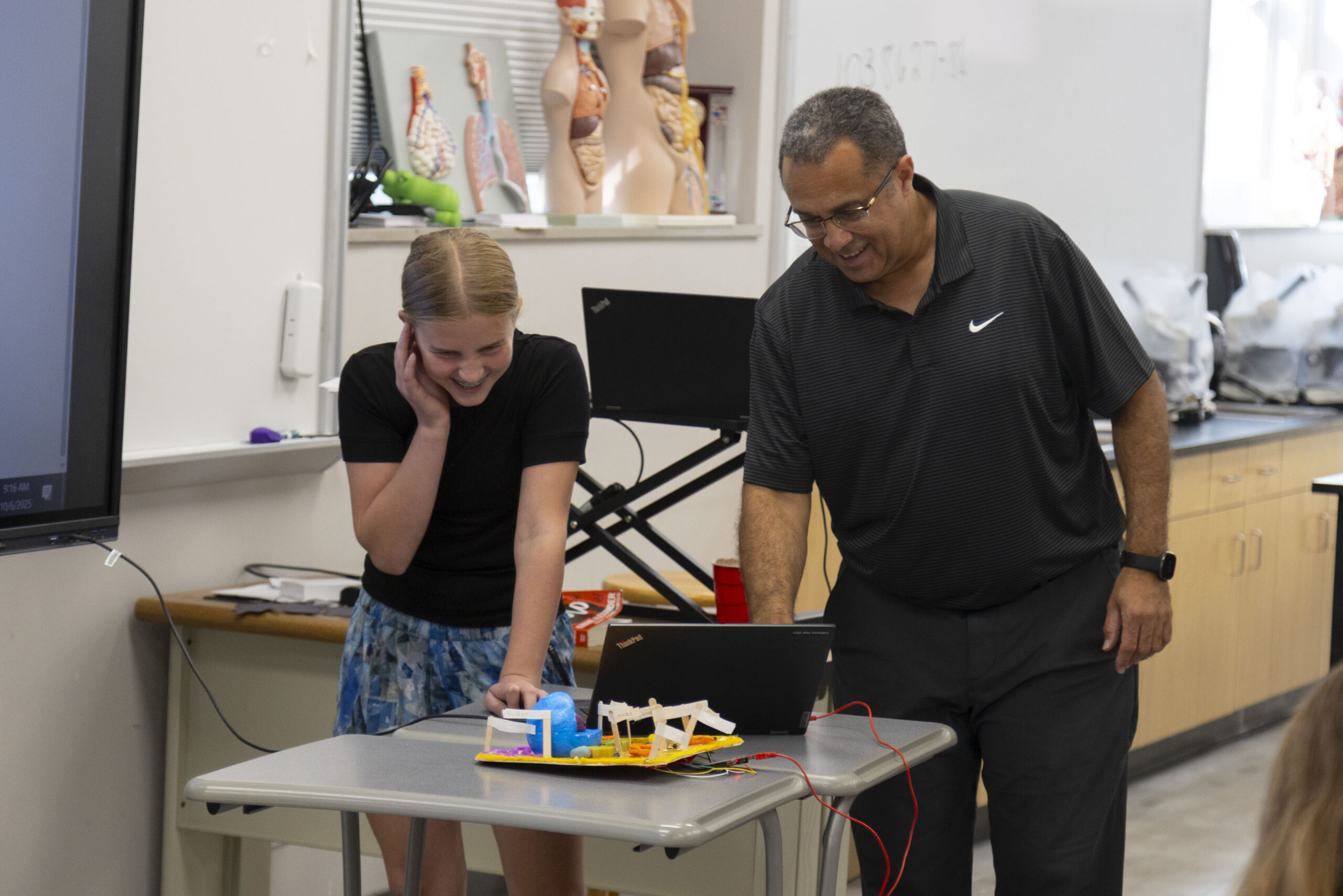 “I liked how this project was all hands-on and you could be creative in your own style and way. It was also nice to be able to choose whatever cell you wanted,” Mina Arar ’31 reflected. “You didn’t have to do one type of cell or only pick between two cells; you had an option, and you could make it however you wished. I picked a nerve cell, and my partner and I decided that he would work on the computer programming while I worked on the crafting component.”