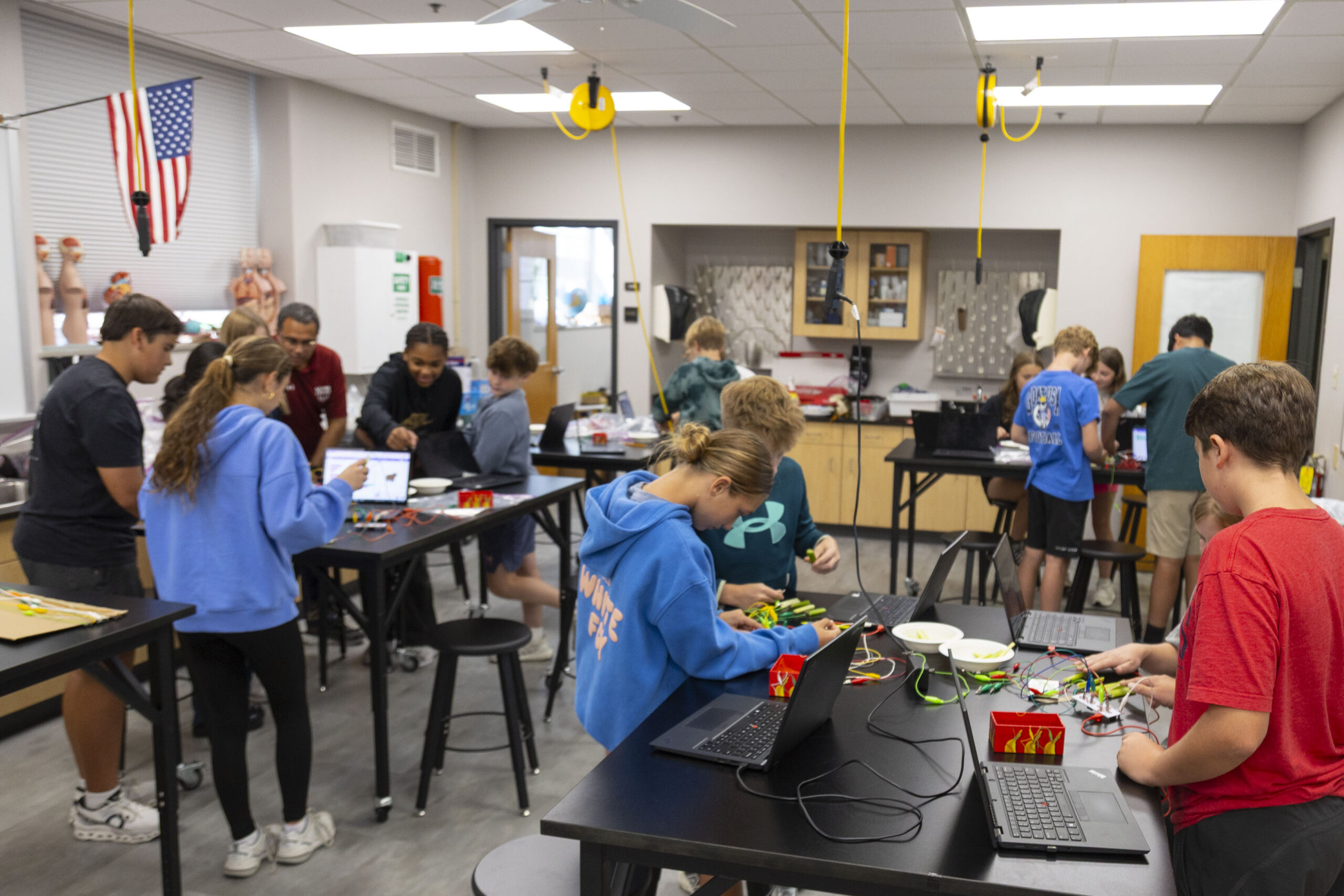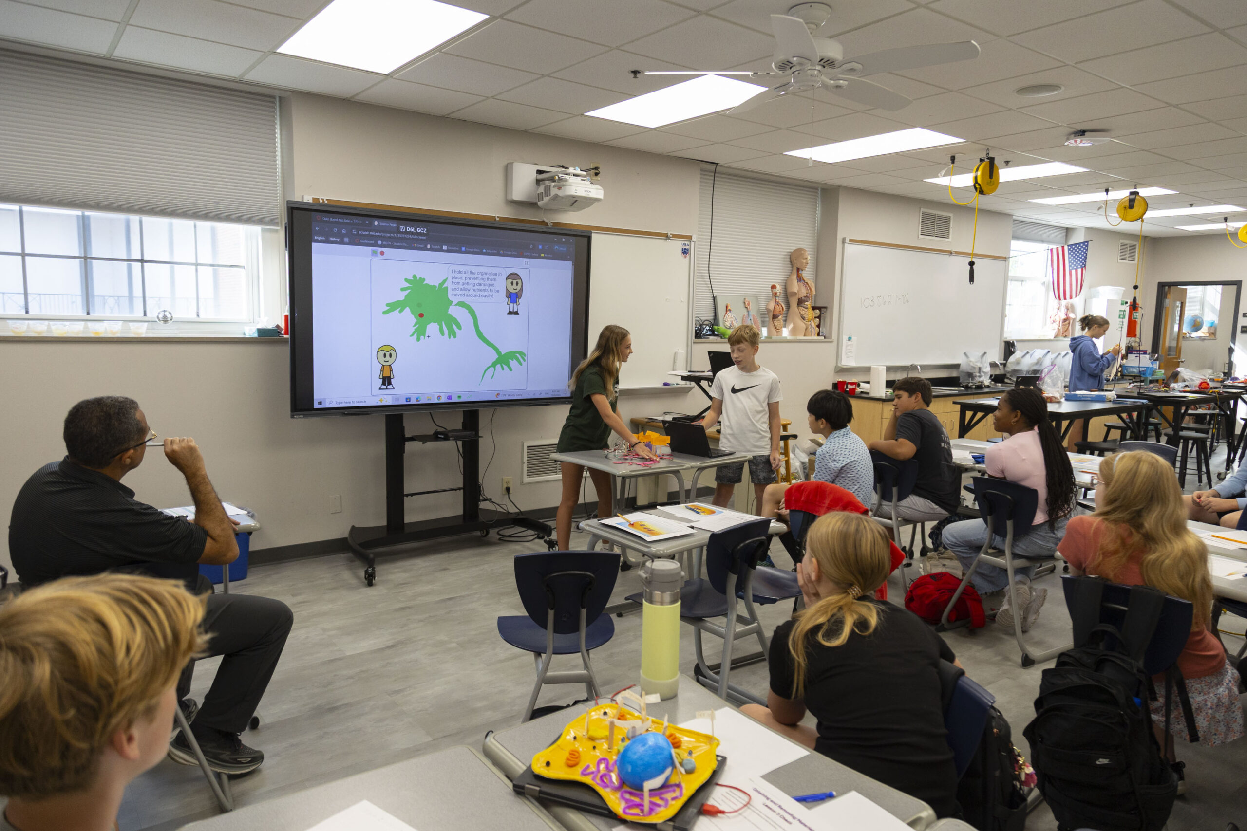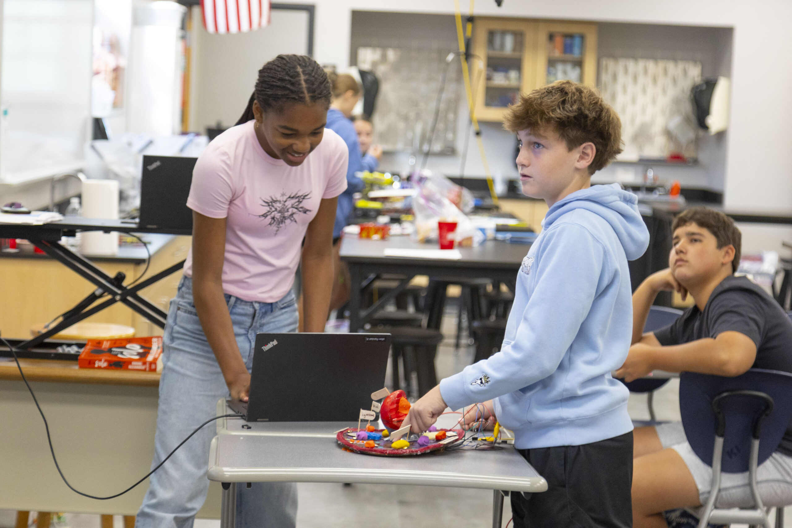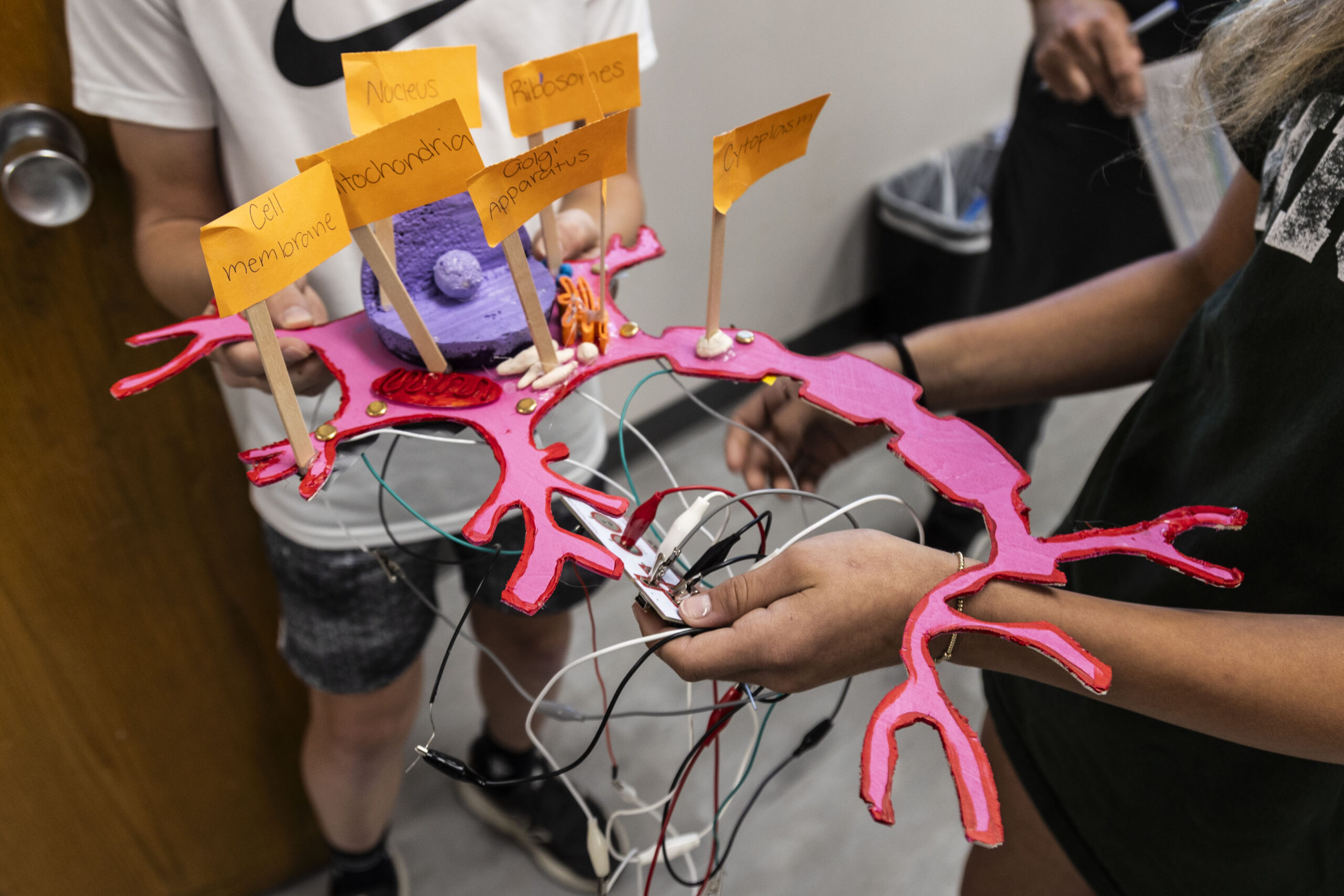 Why learn about cells from a textbook when you can build and interact with them instead? In the seventh-grade science classes of Middle School Science Teachers Nolan Clarke and Melody Gunn, students used research, coding, and building skills to bring their knowledge of cells and their organelles to life.