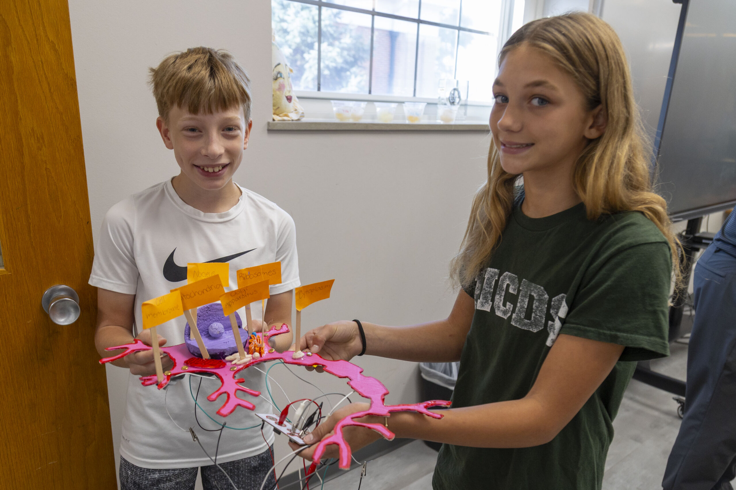 “I really like how we can use our research and input it to make cool designs,” shared Owen Padratzik ’31. I made a nerve cell.”