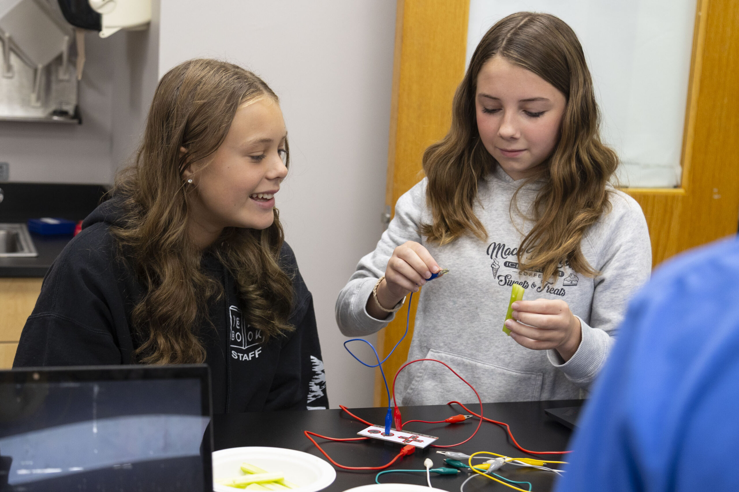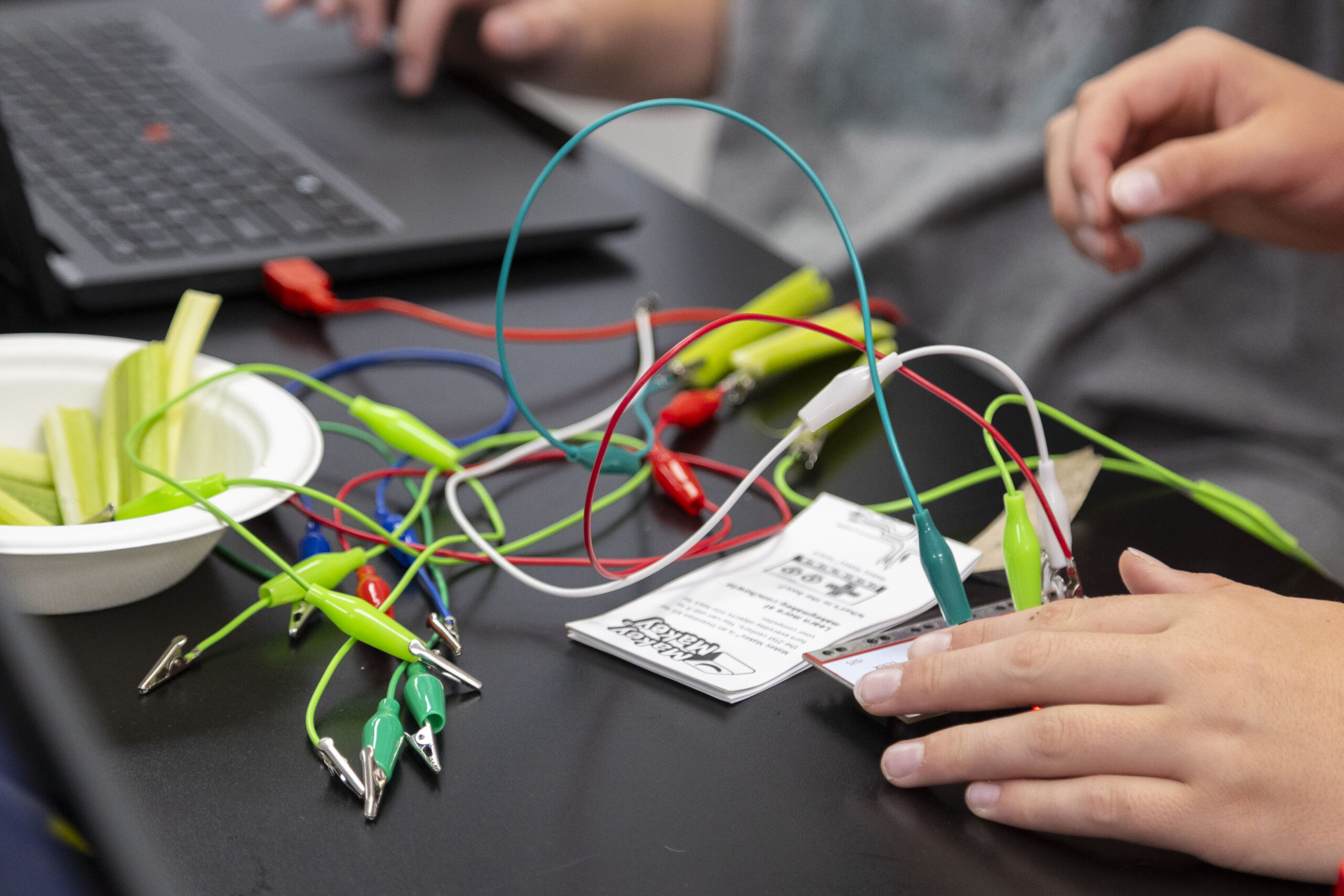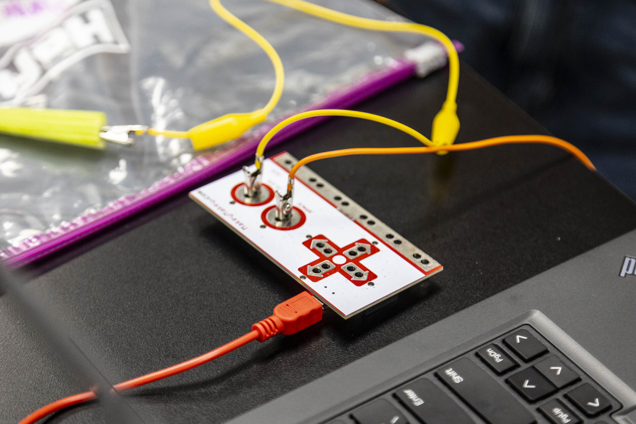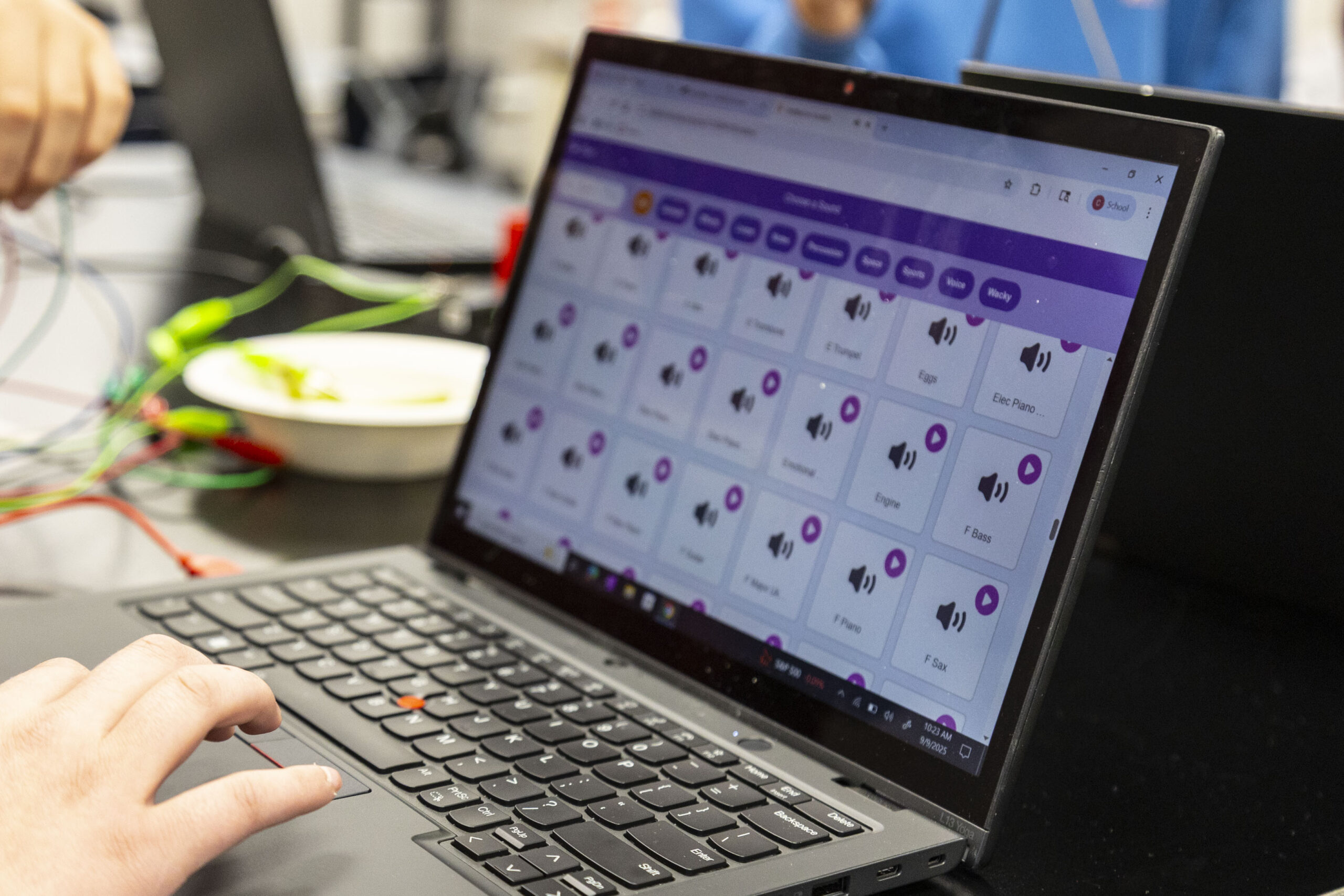 To make their interactive models, students used two technological tools: Makey Makey and Scratch. Makey Makey is a small circuit board that allows you to connect everyday objects to a computer, turning those objects into a way to control the computer. Scratch is a block-based programming website where students can create their own digital stories, games, or programs. For this lesson, together, the Makey Makey triggered events that the students created in the Scratch program.