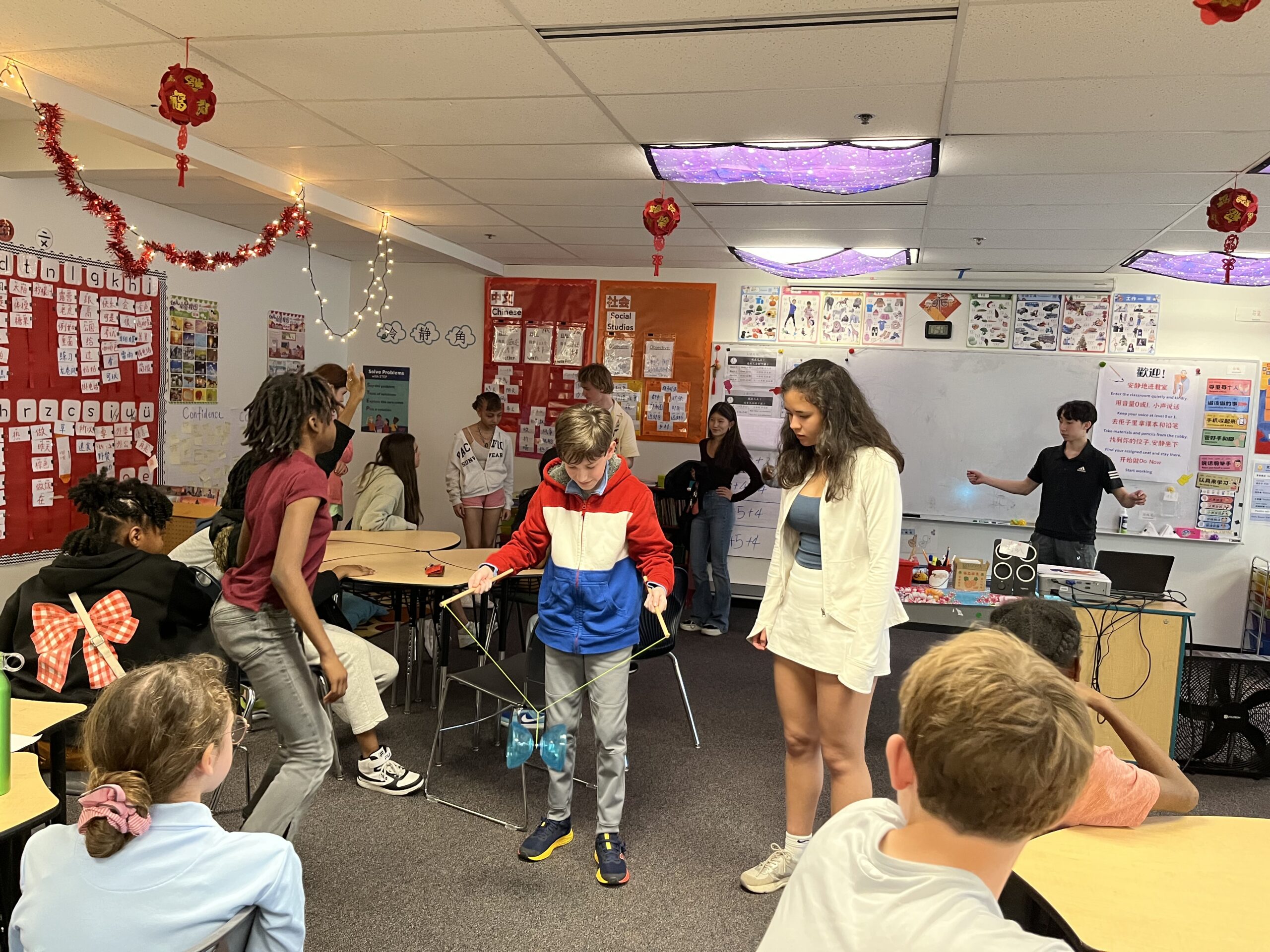 The day began with a visit to the St. Louis Language Immersion School (SLLIS), where our students had the opportunity to engage with their peers in a vibrant bilingual learning environment. They visited various classrooms, including Pre-K, Kindergarten, Grade 1, Grade 3, Grade 4, Grade 5, and a middle school class. This interaction fostered an appreciation for language diversity as our upper school students led and middle school students participated in interactive games and activities, such as flashcard games, bingo, and say-the-word-on-the-beat. MICDS students also showcased their yoyo skills and taught SLLIS students basic yoyo techniques.