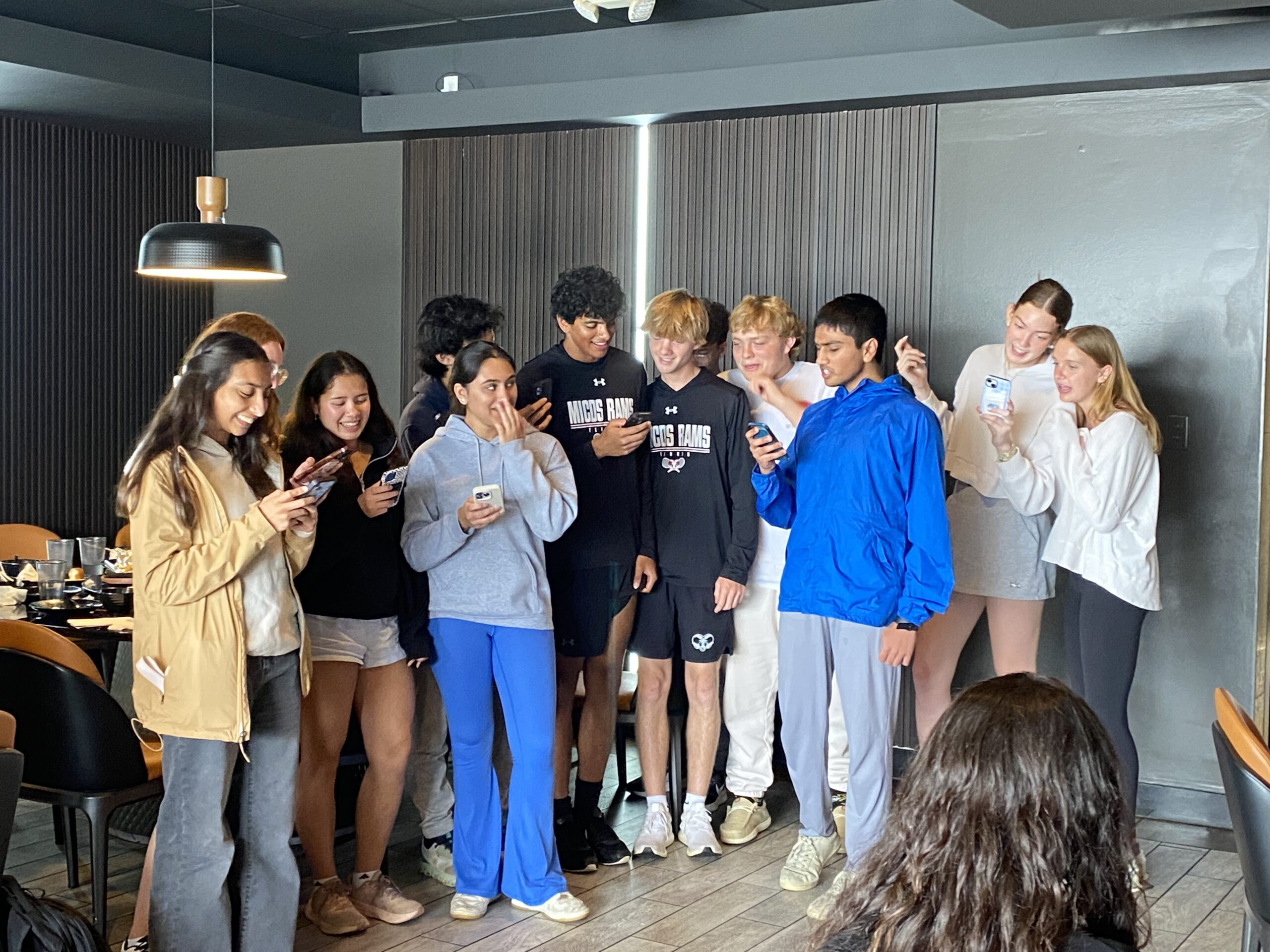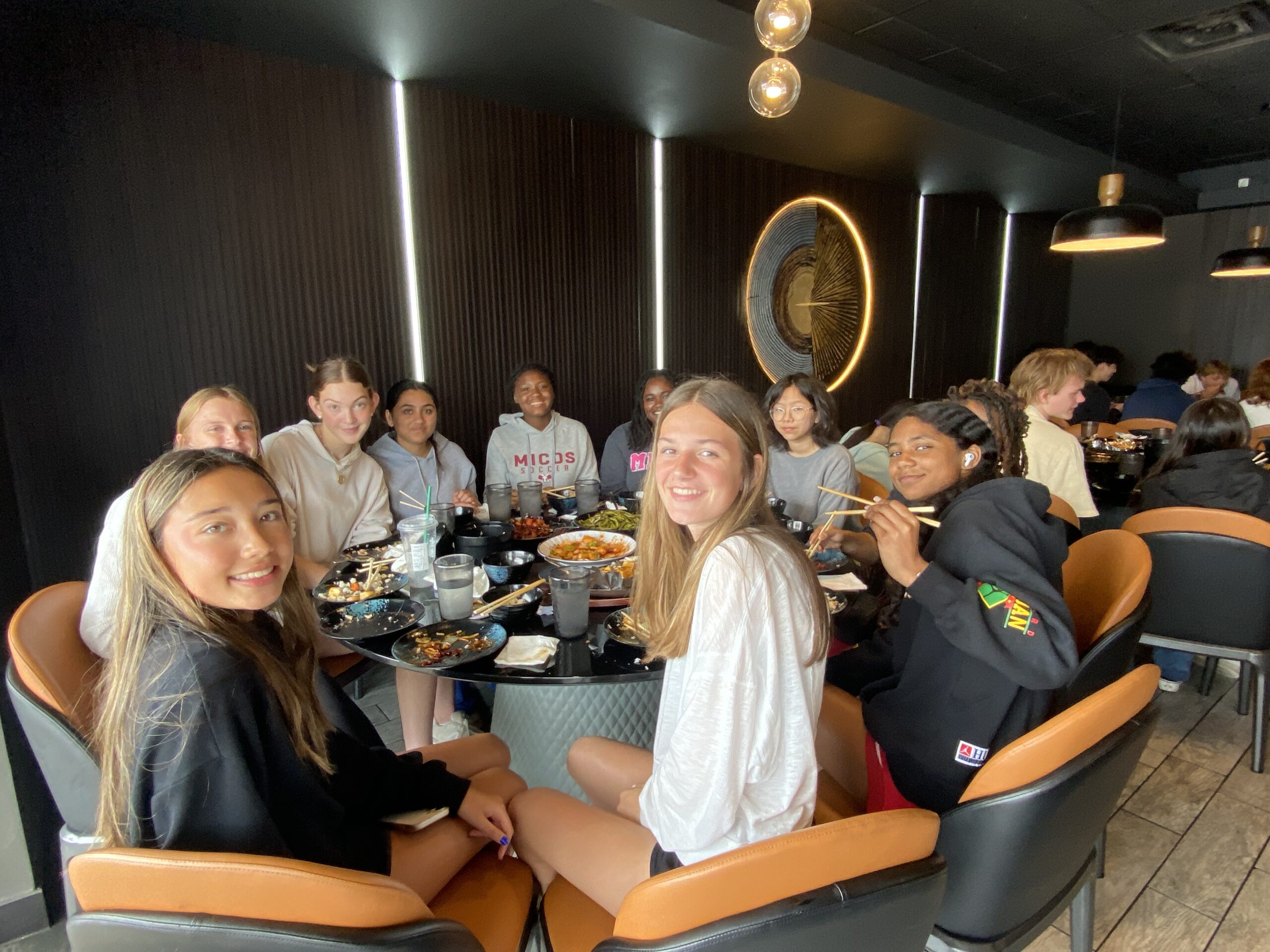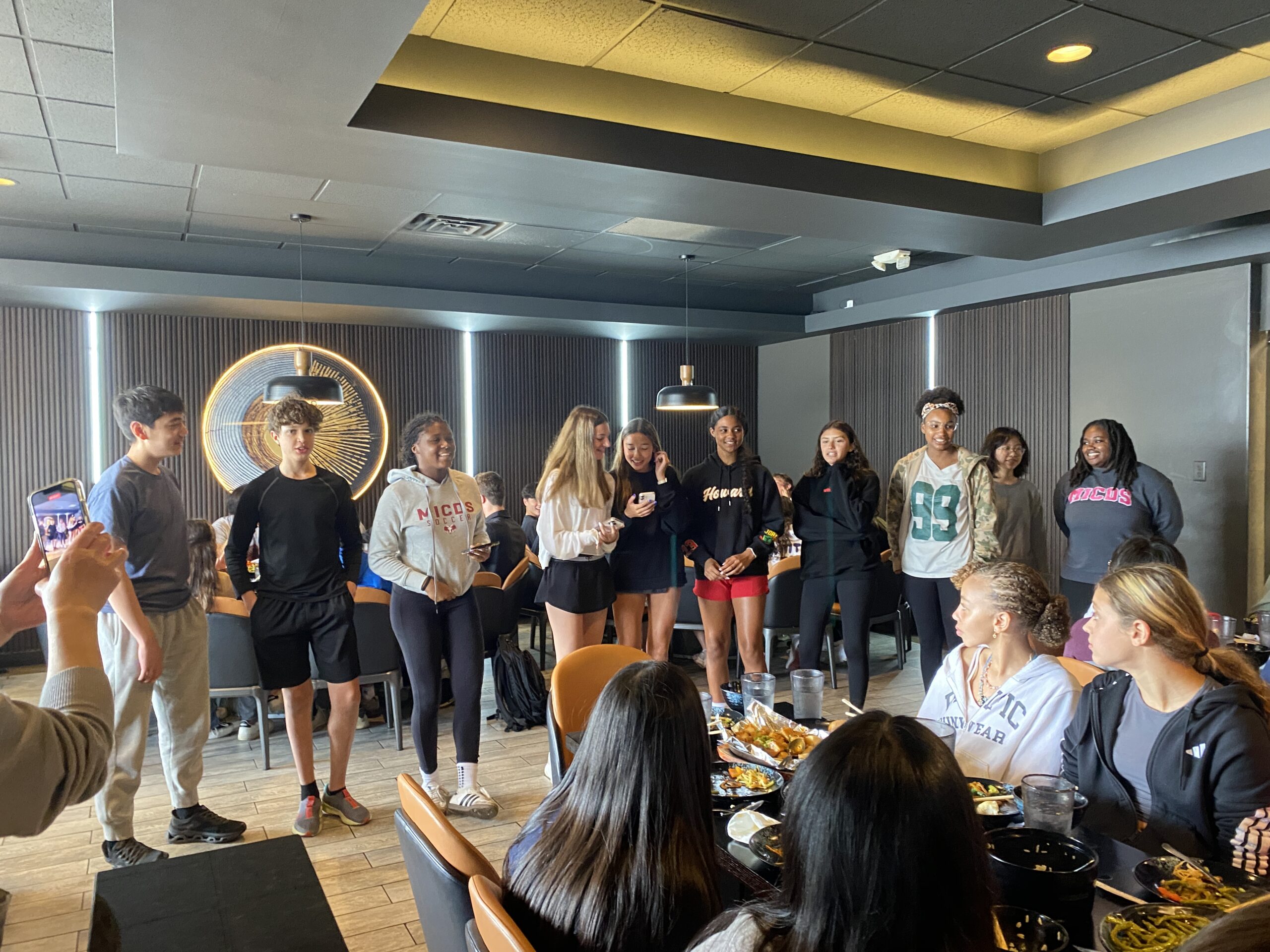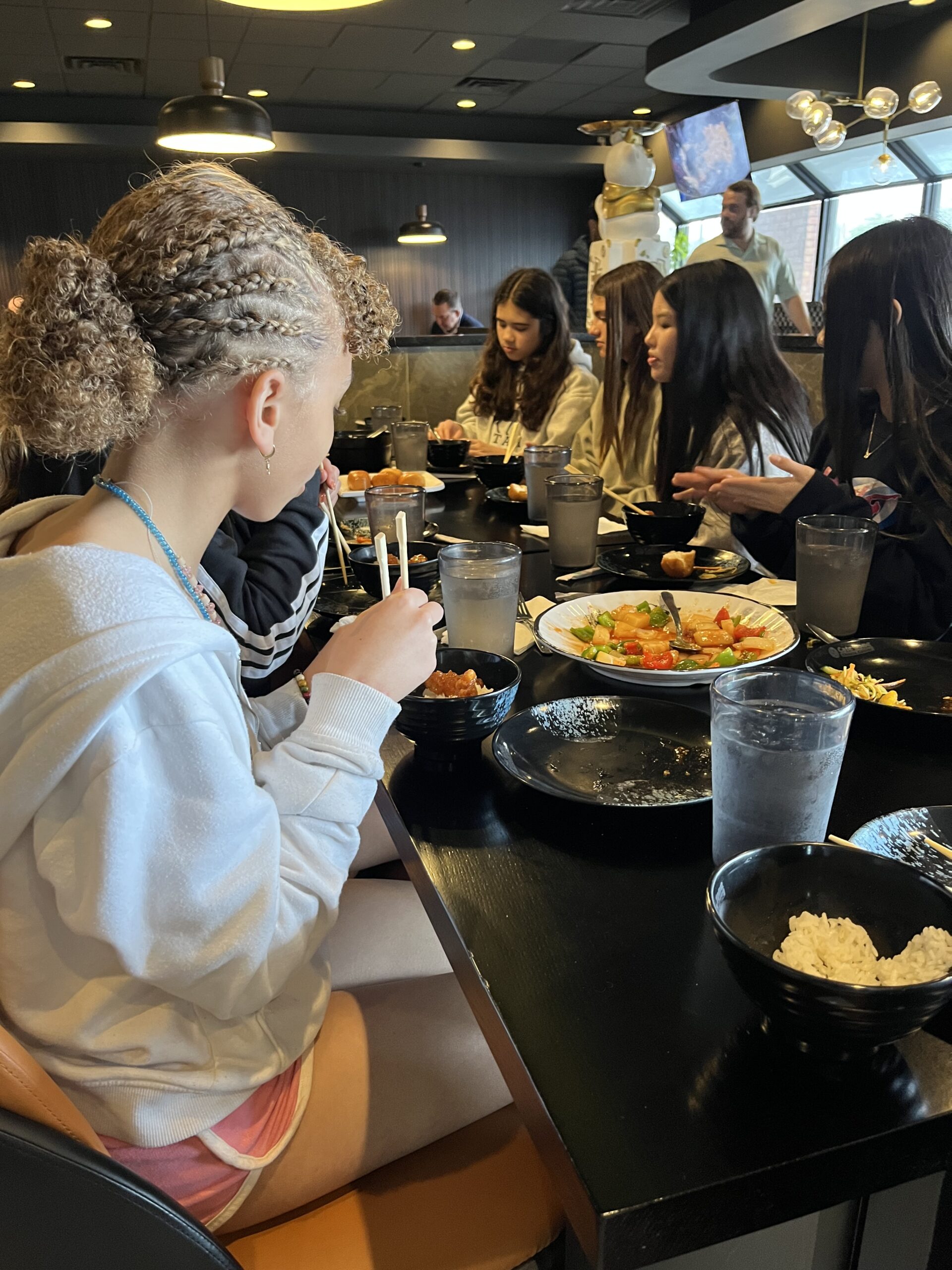 The day continued with a delightful family-style lunch at Cate Zone in Chesterfield. There, students enjoyed a delicious nine-course feast showcasing authentic Asian cuisine, encouraging conversation and camaraderie among classmates. The shared dining experience not only satisfied appetites but also reinforced the importance of community and togetherness. Another highlight was the singing competitions among the upper school students. Each class presented a song in front of the crowd with chaperons acting as judges. Grade 10 took the first place, followed by grade 12. Each winning student was rewarded with a prize from the Winter Term Taiwan Trip.