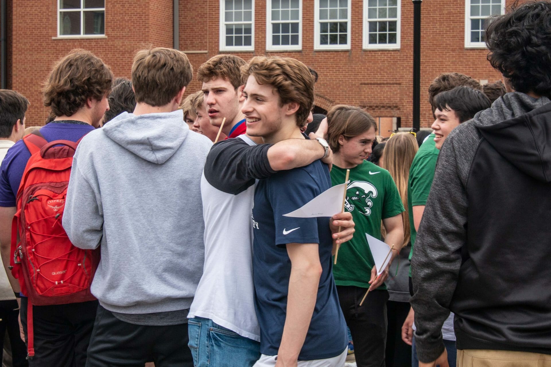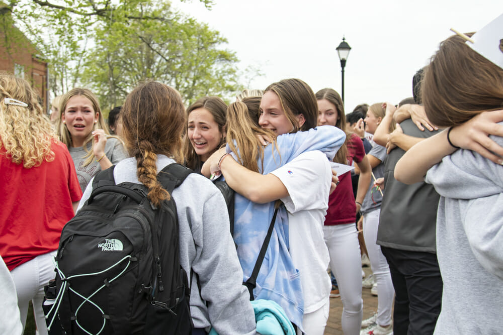 On the last regular school day for MICDS seniors, students enjoyed celebrating and sharing their college selections as well as food, fun, a visit from Duo Dogs, and the traditional passing of the class flag to the junior Student Council (STUCO) leaders.