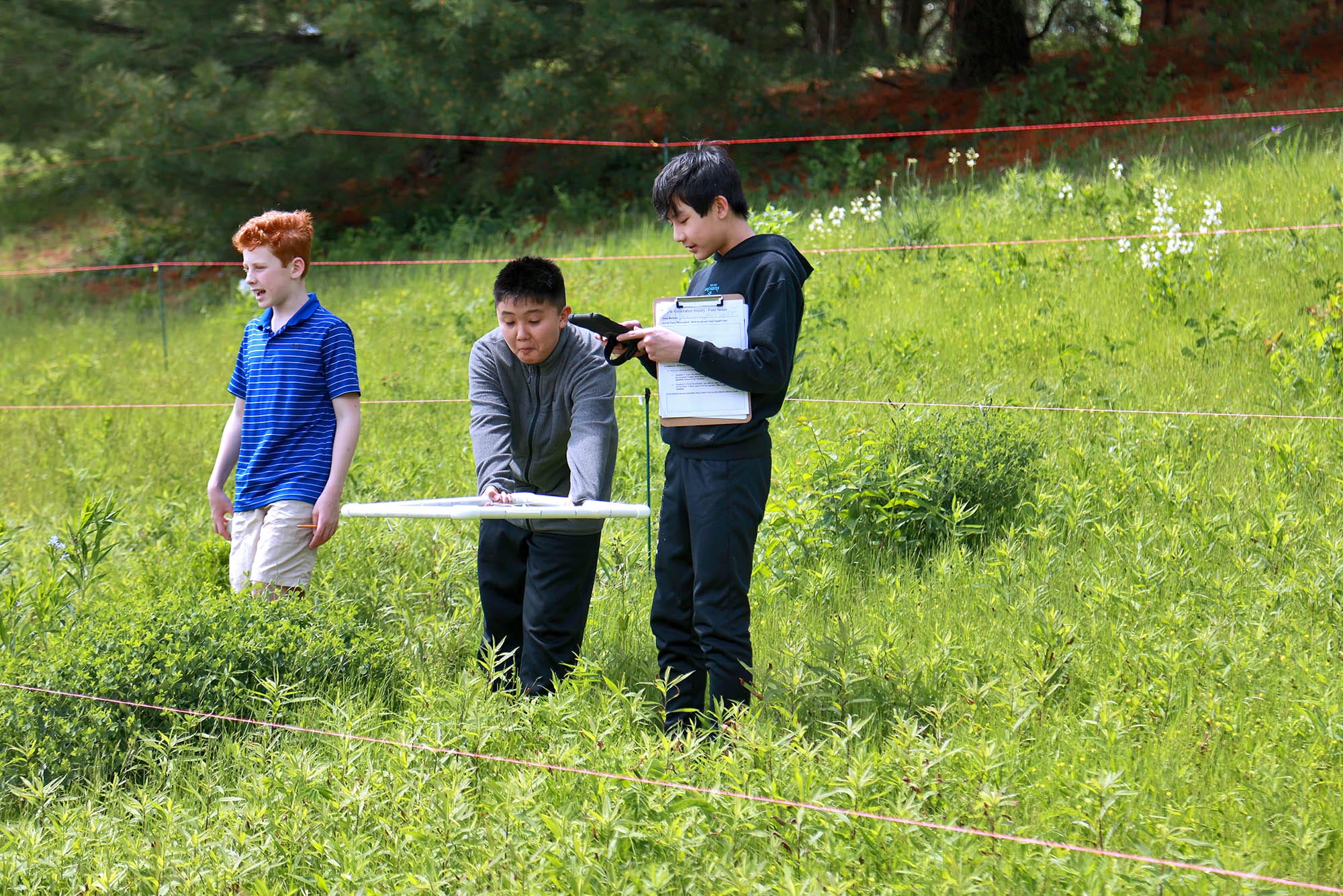 Upper and Middle School scientists recently collaborated to share knowledge and learn more about the MICDS prairie area on the north end of campus.