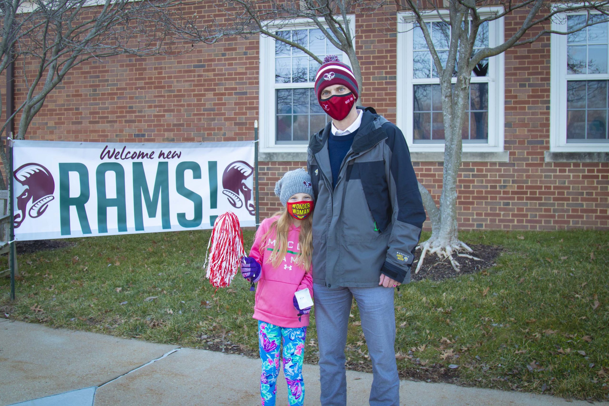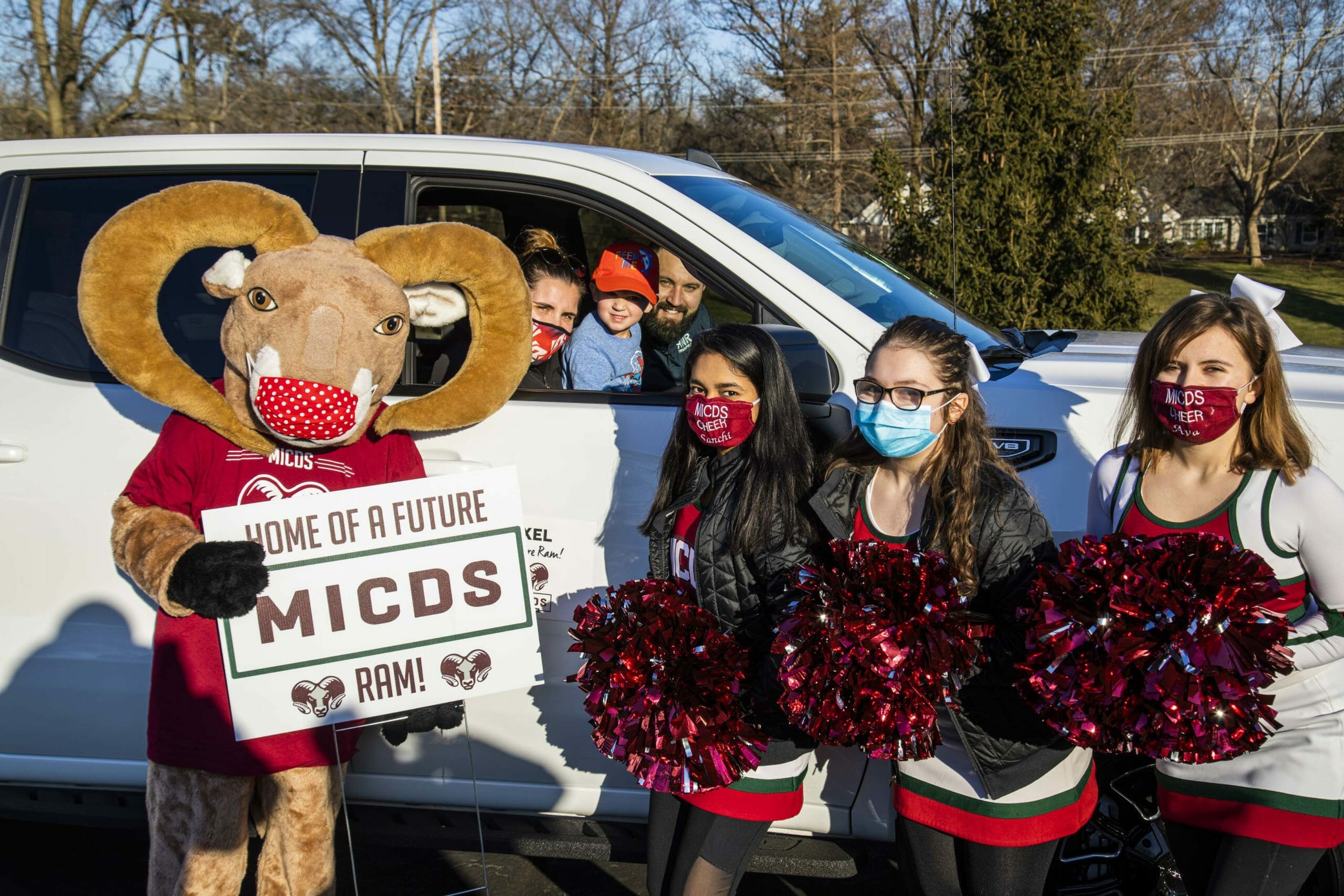 With pom-poms, cowbells, and “Home of a Future Ram” yard signs, our faculty, staff, cheer team, and parent/student Rambassadors lined the route for these soon-to-be junior kindergarten students. Each family drove along with their admitted JKer waving among the balloons to the welcoming MICDS community. They received welcome gifts, met mascot Charger the Ram, and even received a special coloring book to take home.