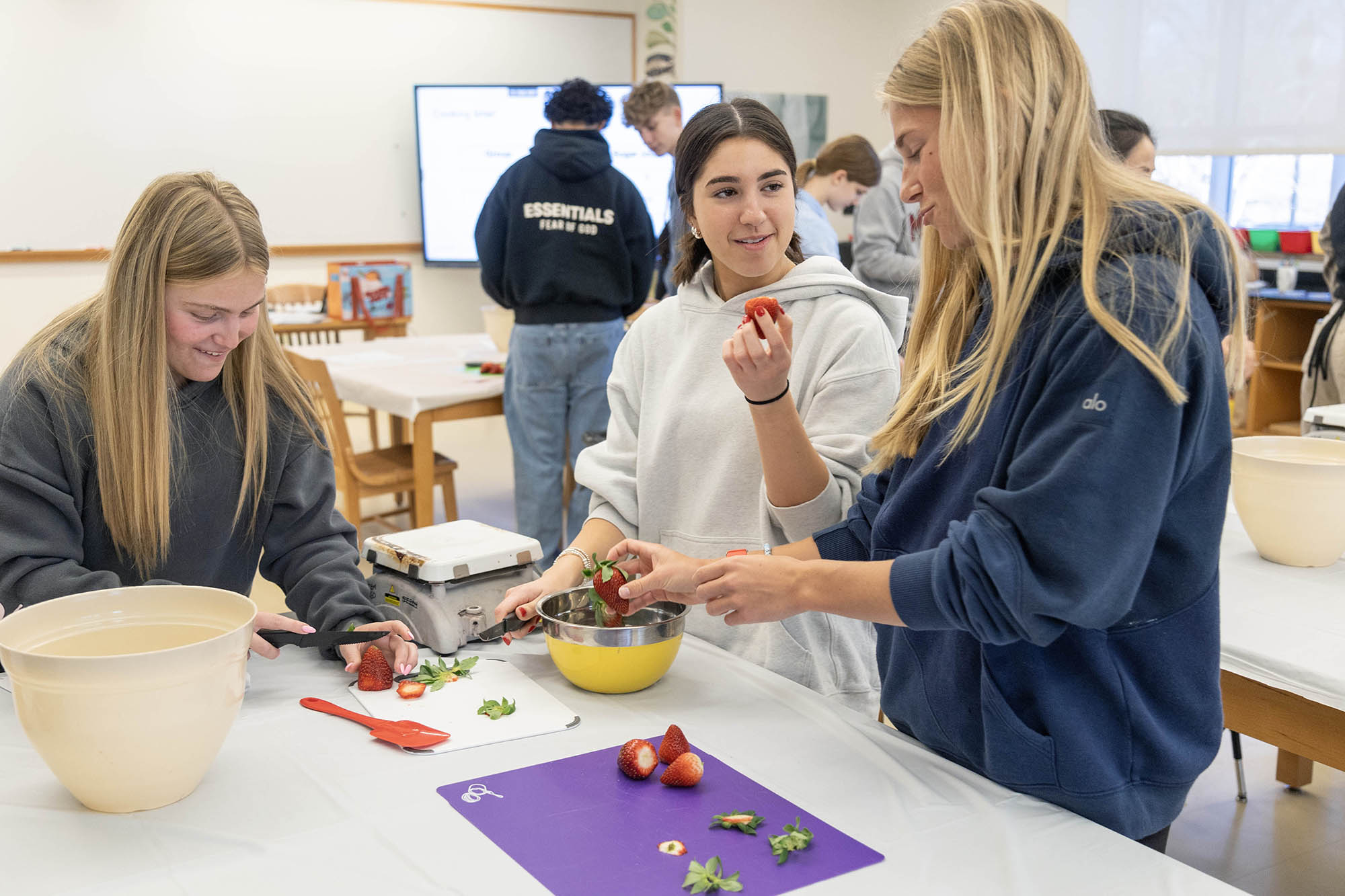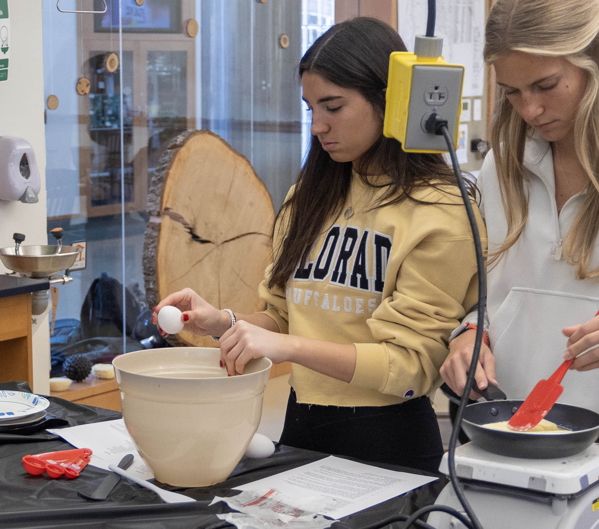 Students are quick to point out the appeal of the class. Daniel Haas ’27 says he enrolled after hearing positive reviews: “It sounded like a lot of fun.” His highlight has been “getting to make a whole bunch of things from scratch and seeing how simple they are and how simple the chemistry behind it can be.” For others, the joy is even more immediate. “Making cookies has been the most fun part,” shares Mason Chambers ’26.