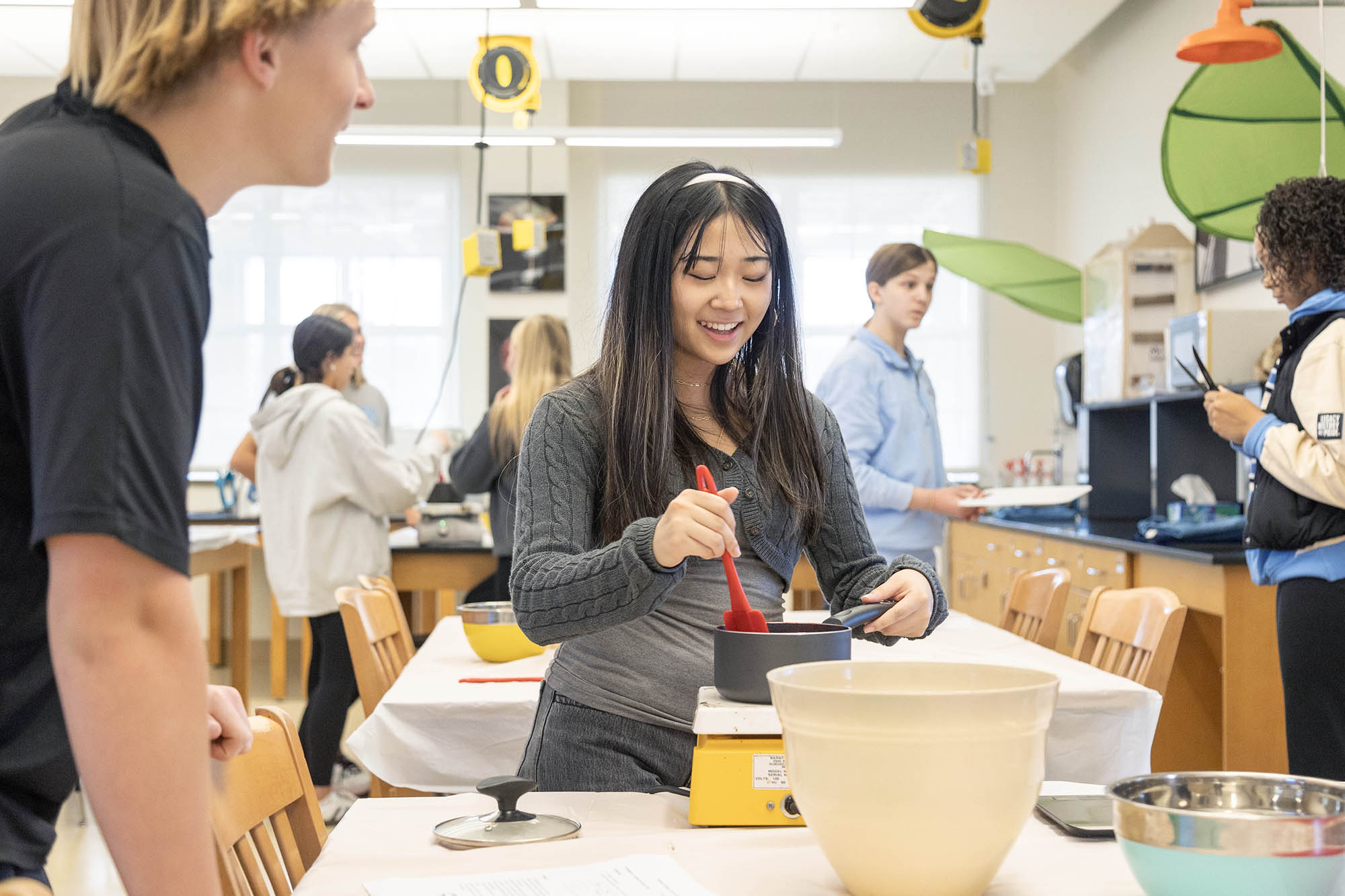 For Dr. Meg, one of the most rewarding aspects of the course is watching students make connections. “We buy food and we don’t really think about how it’s being made,” she explains. “But when we are making it, the students can see what’s really happening chemically. Seeing that ah-ha moment is something I love.” The course also exposes students to food science as a field, opening doors beyond traditional STEM pathways.