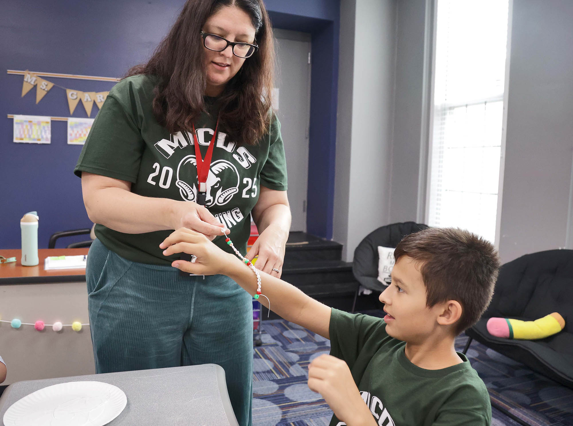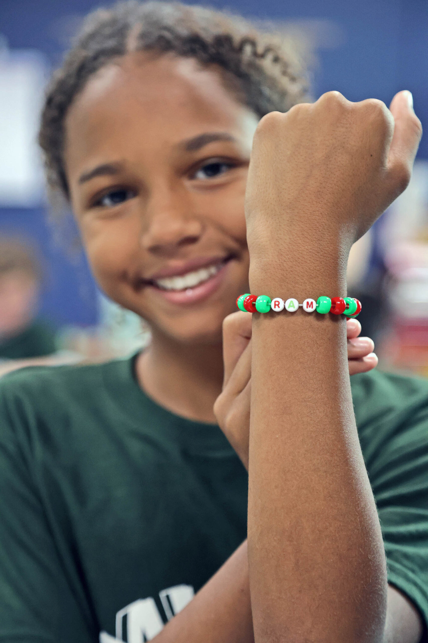 Fifth graders enjoyed designing and creating Homecoming-themed beaded bracelets to wear throughout Spirit Week and the upcoming Homecoming celebrations. Garcia developed the activity as an engaging way for students to express their creativity through a hands-on experience and to promote their school spirit and Ram pride. She said, “It was fun watching students design and assemble their beaded bracelets to wear this week to showcase their love for MICDS! Each bracelet was unique, just like each student, but they all clearly showcased the fifth graders’ Ram Pride, something we all have in common.”