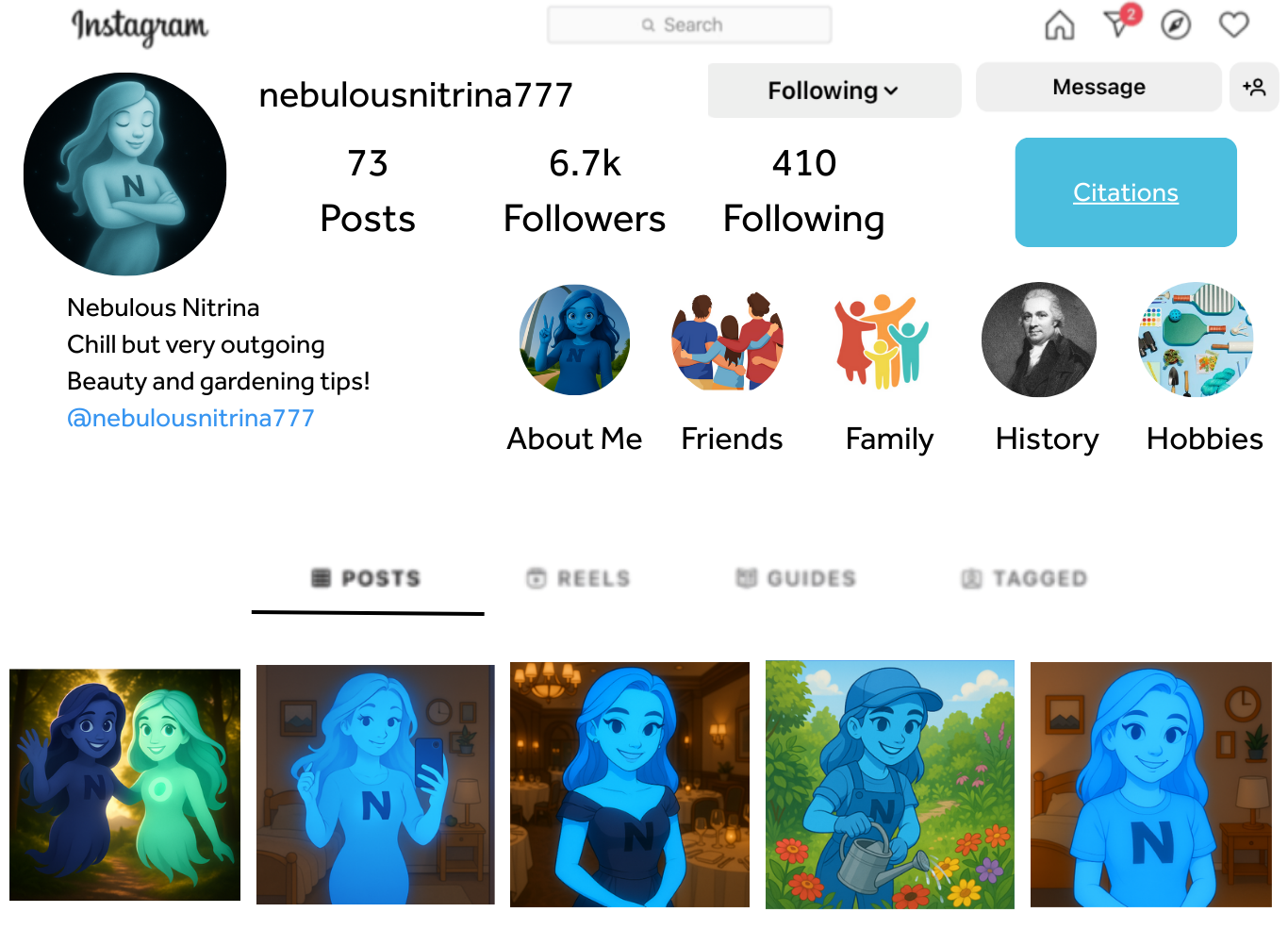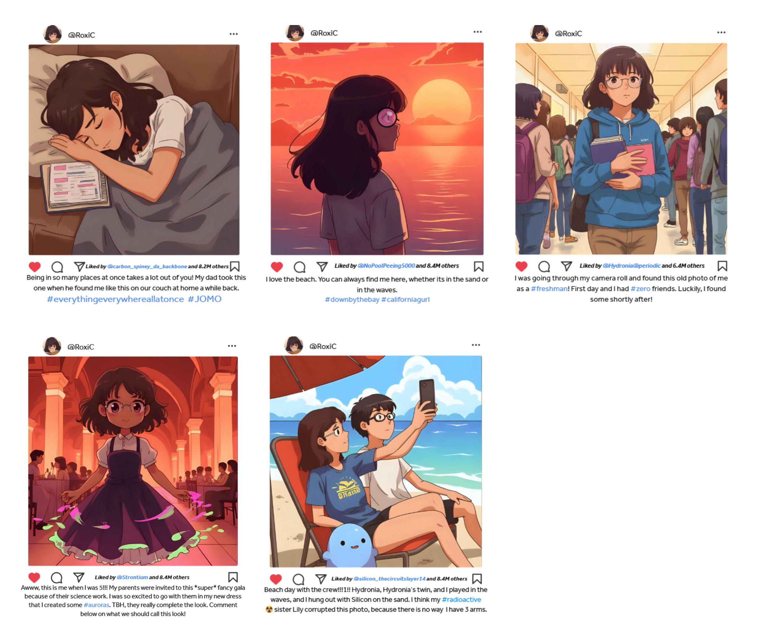 For the project, students are tasked with creating a personality from an element, building an entire hypothetical social media website around their character, writing their own copy, and using the School’s approved AI platform, Flint, to generate images for their character’s visual personality. Once their social media landing page was complete, the students could explore other students’ work and comment on one another’s images and posts.