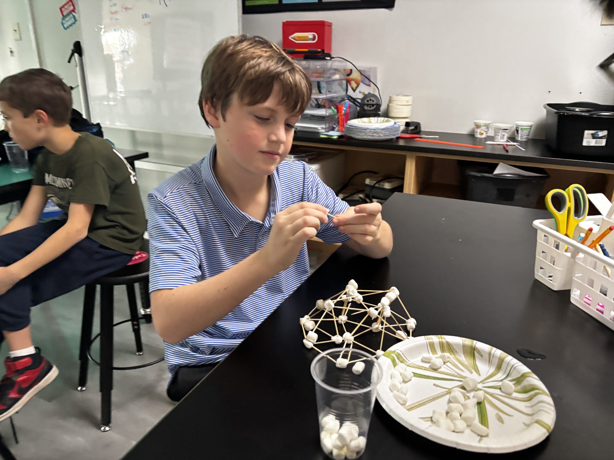 Another highly enjoyed activity was a tower challenge out of toothpicks and marshmallows. The goal was for a small team to build the tallest tower using these materials and still be able to support the weight of a full water bottle.